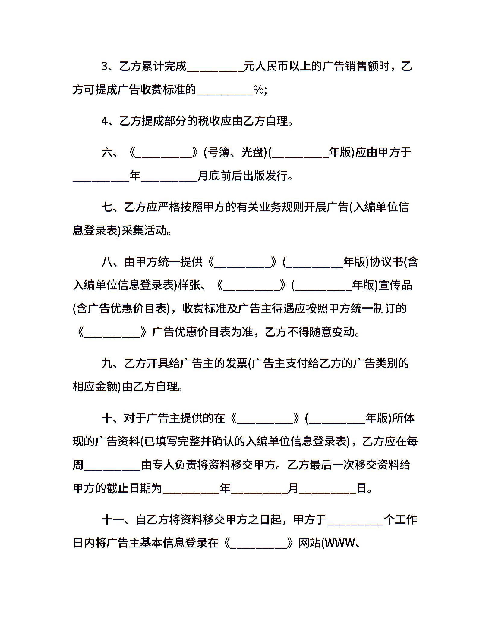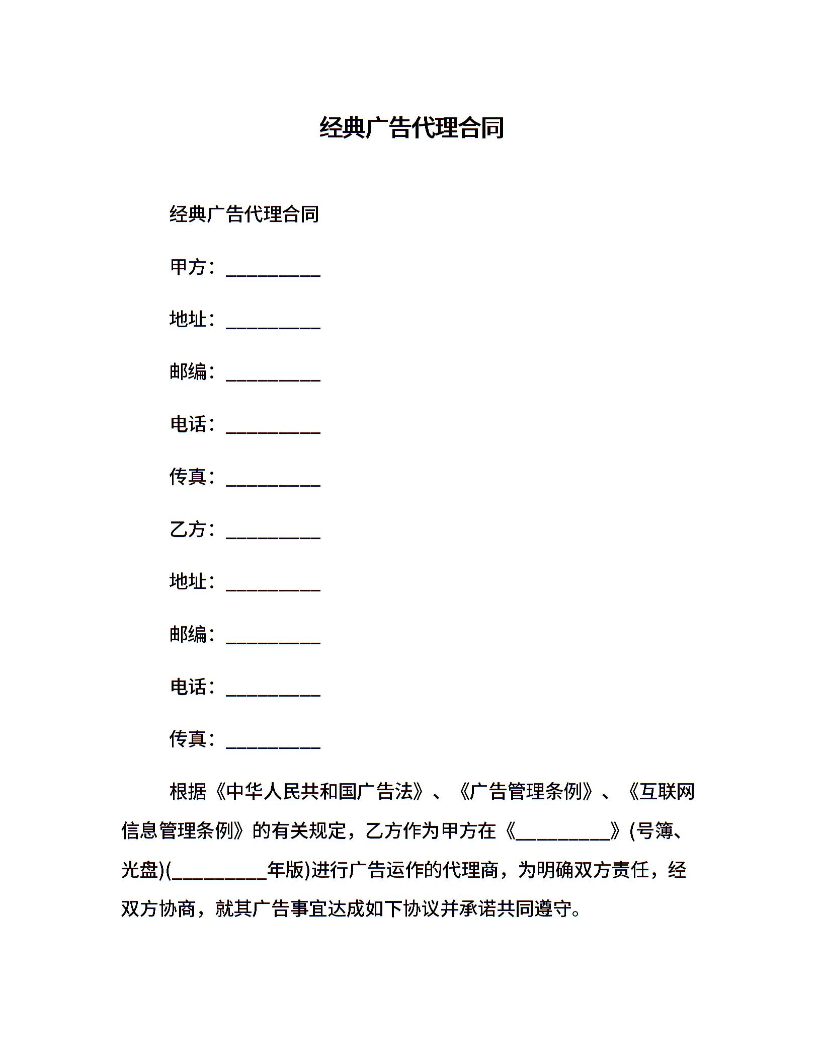 经典广告代理合同