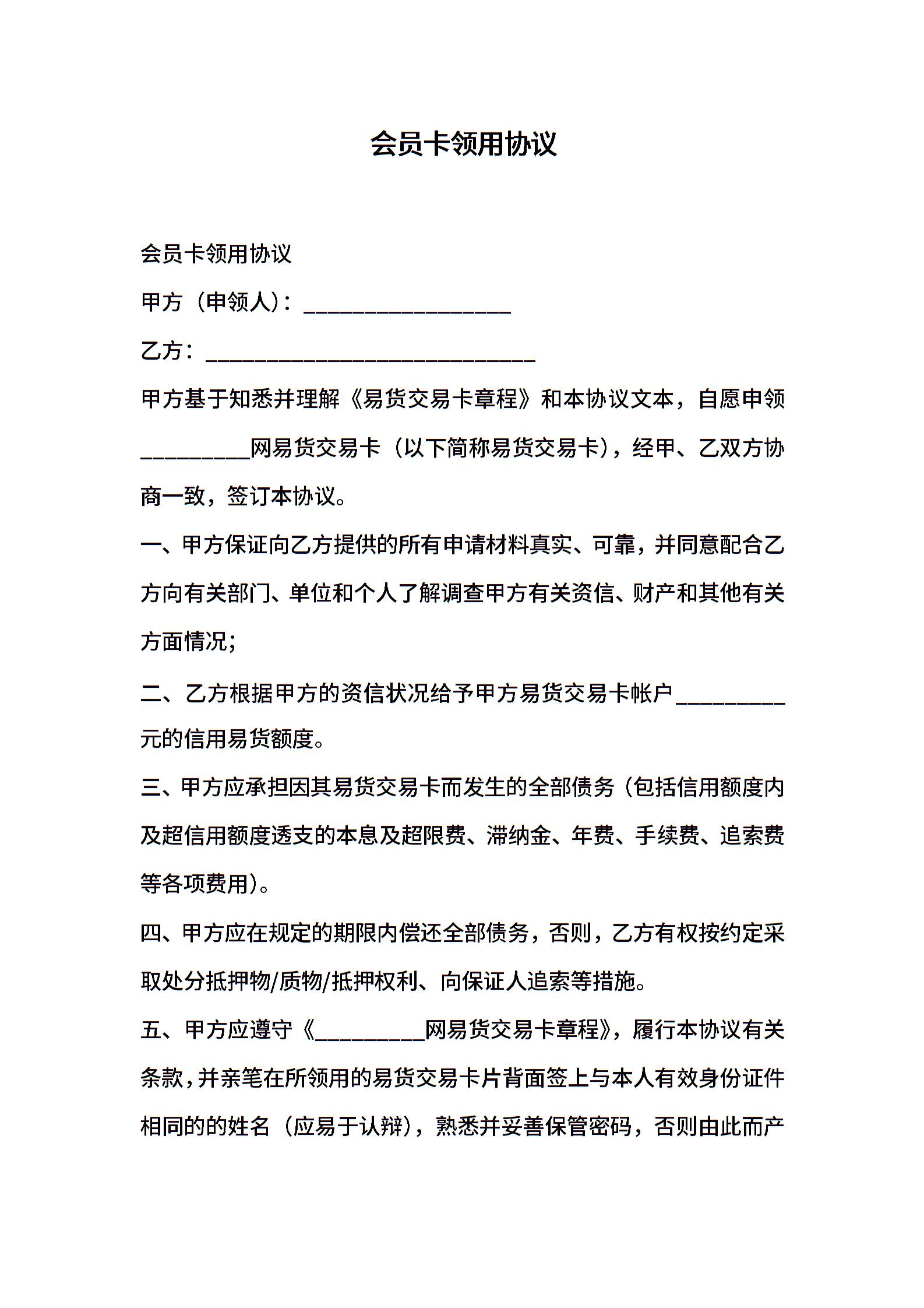会员卡领用协议