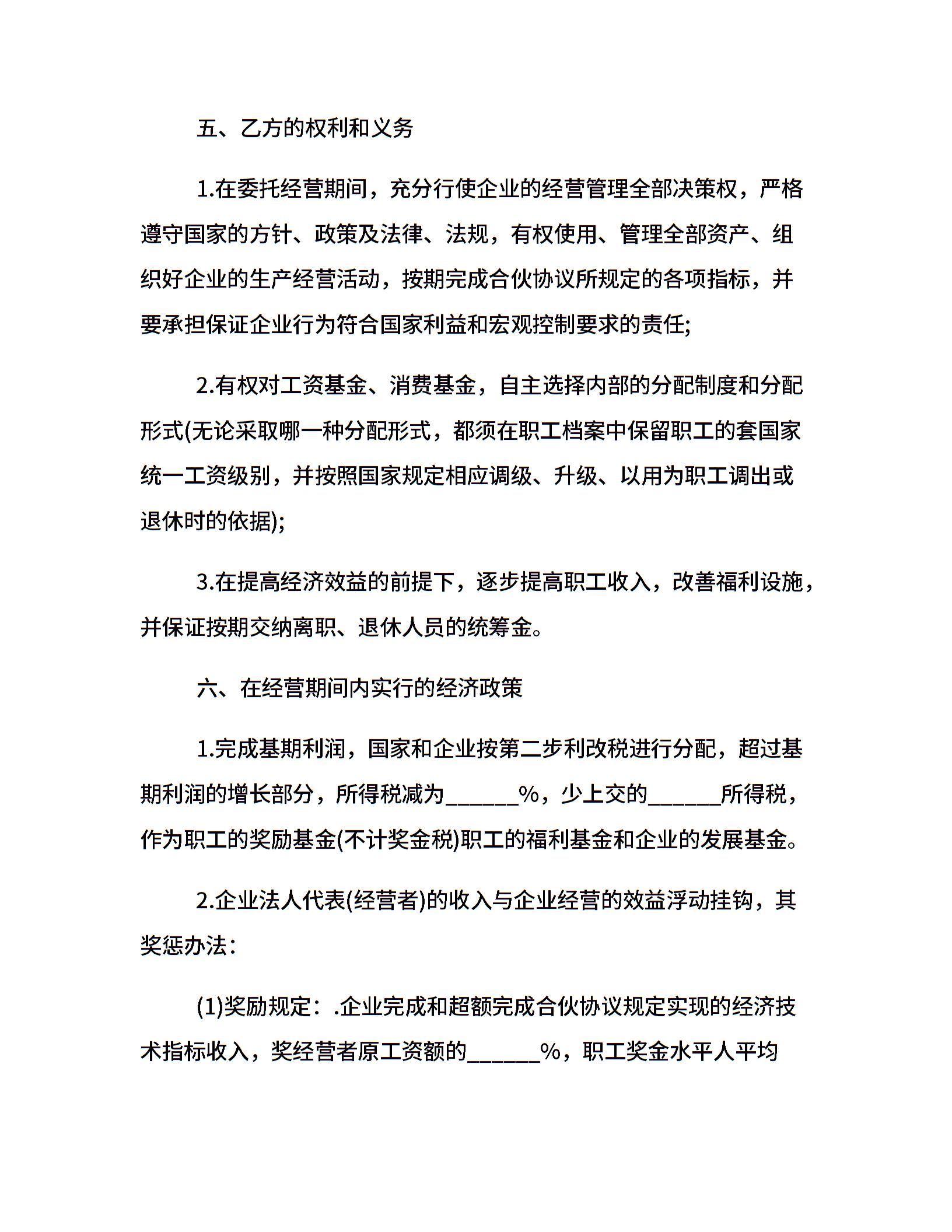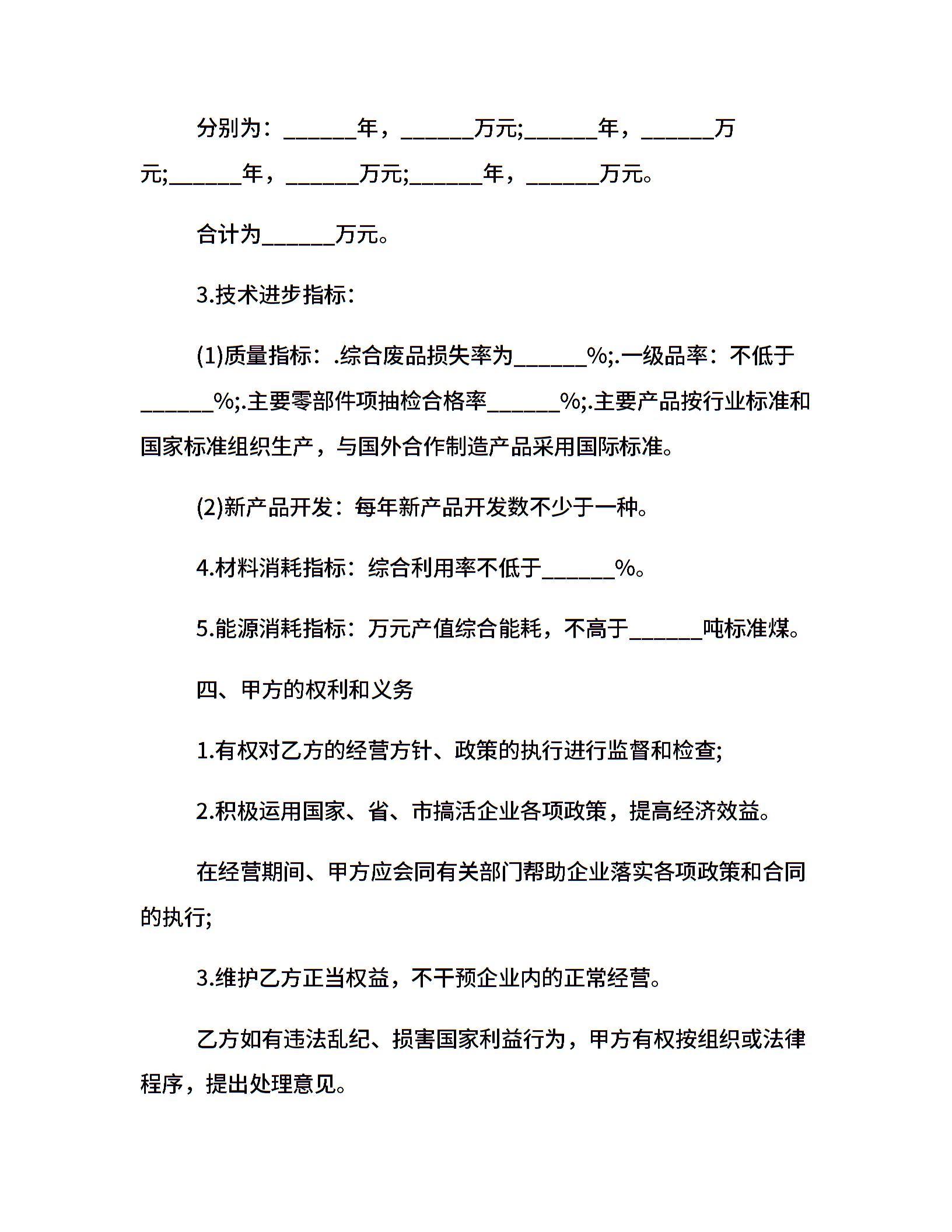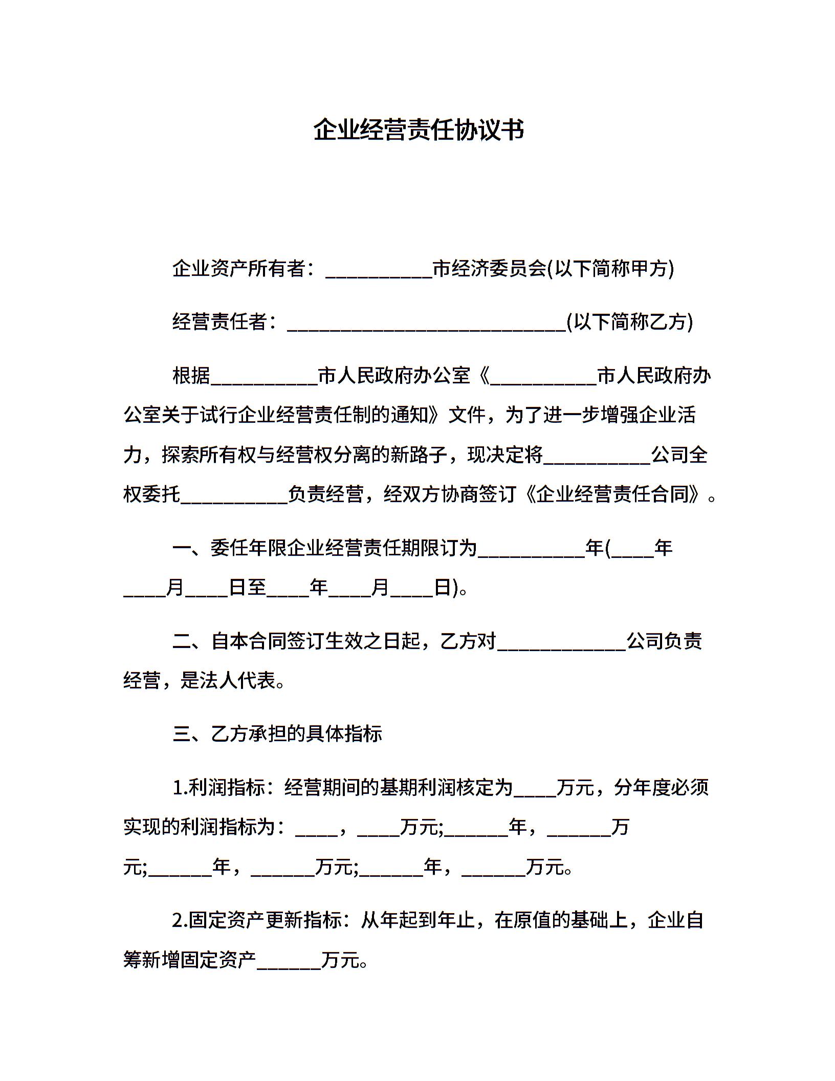 企业经营责任协议书