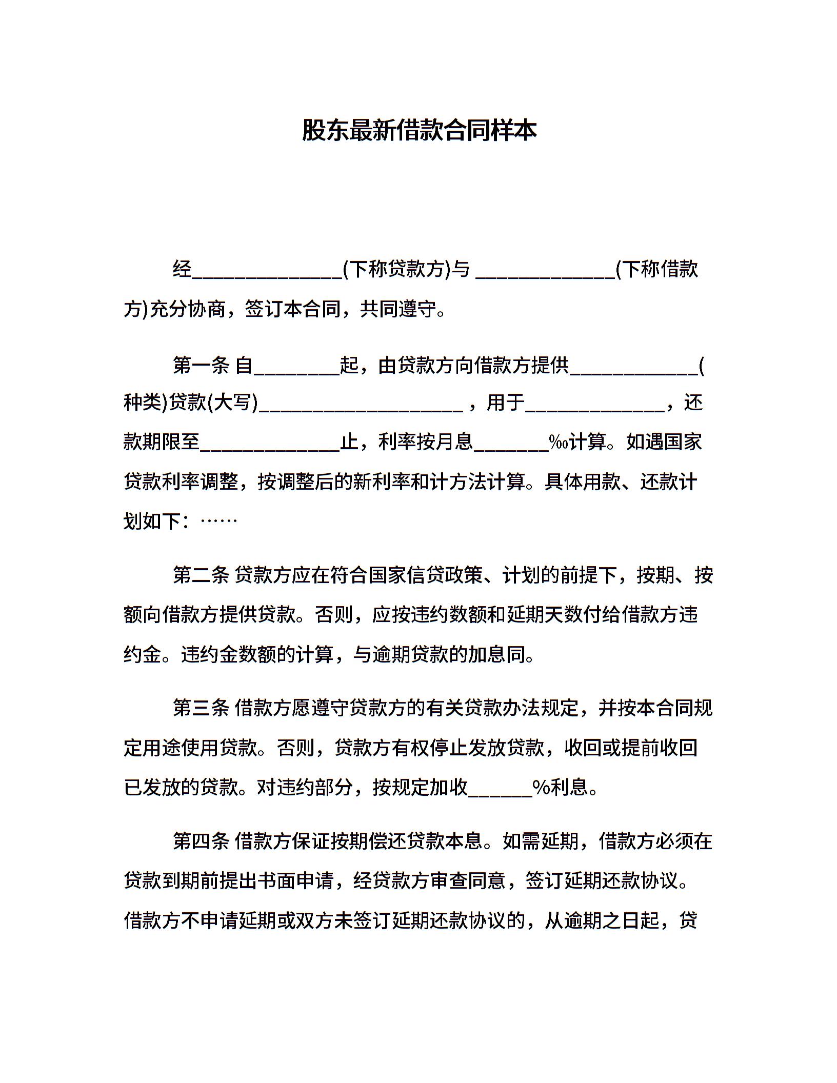 股东最新借款合同样本