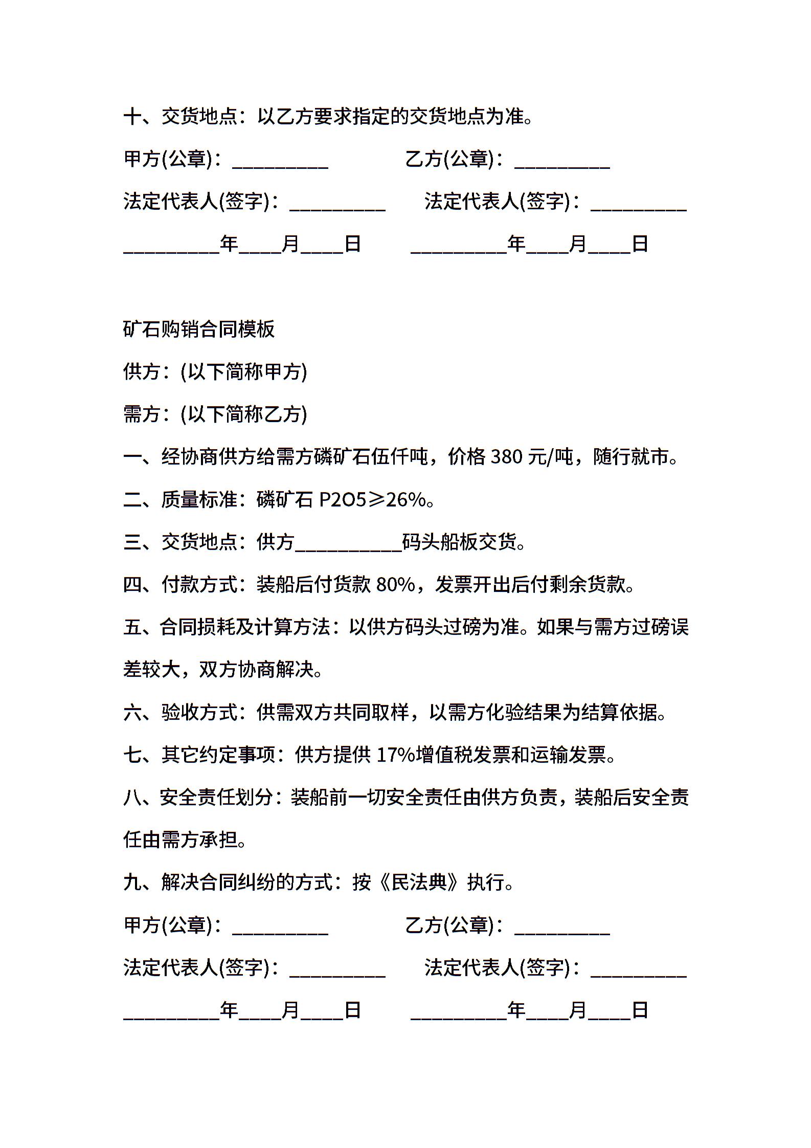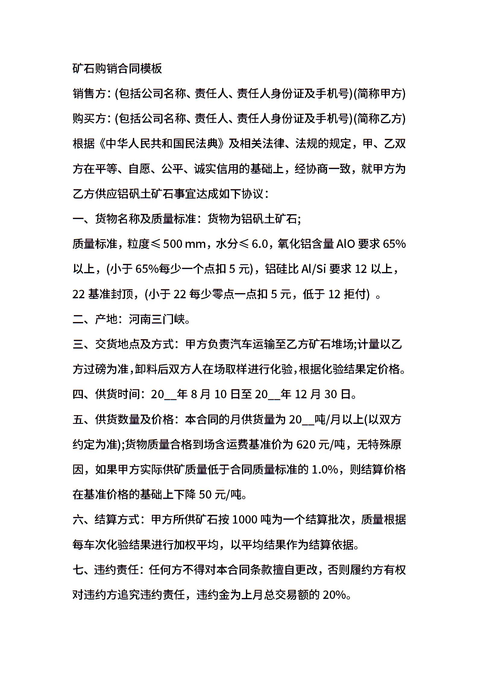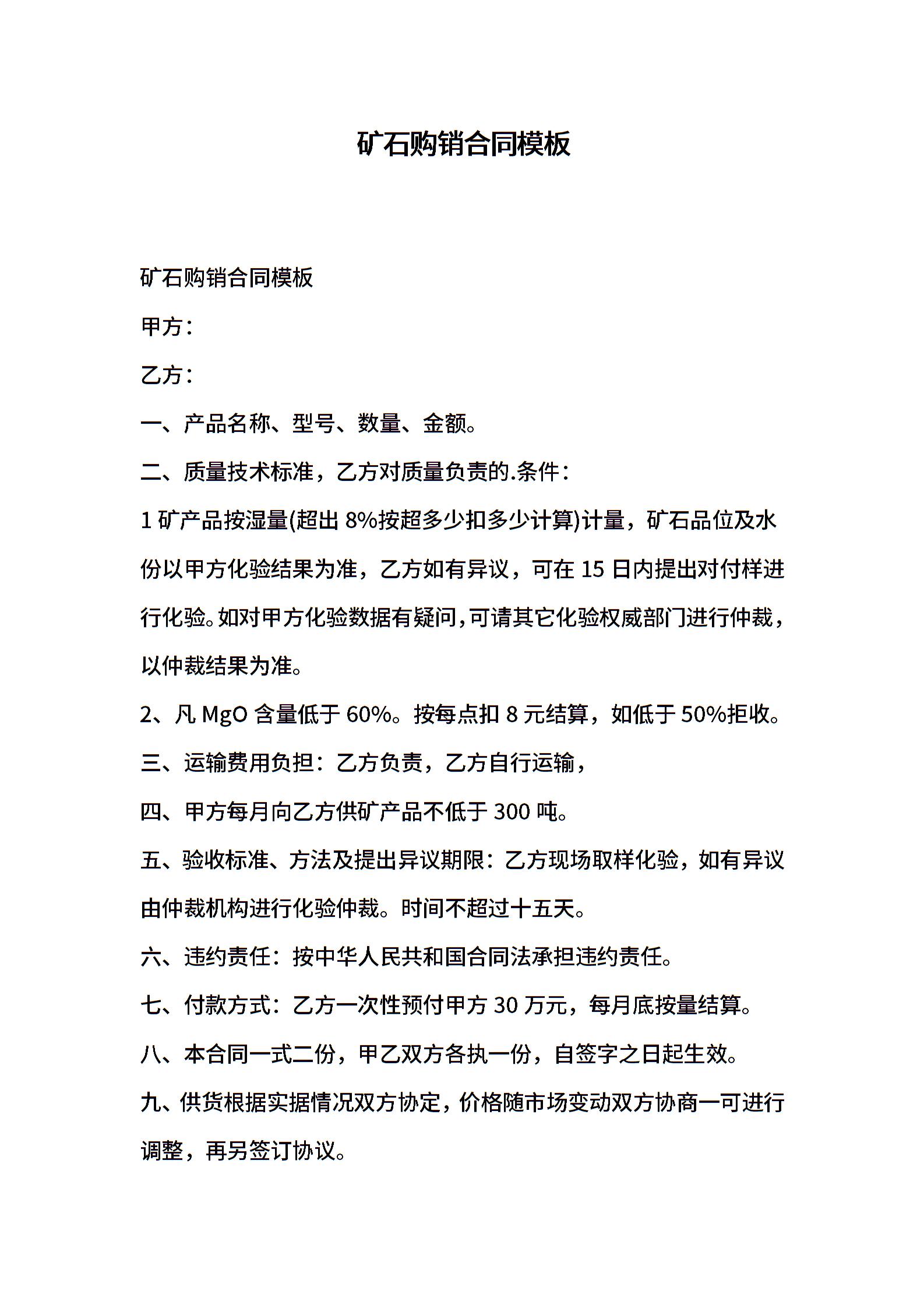 矿石购销合同模板