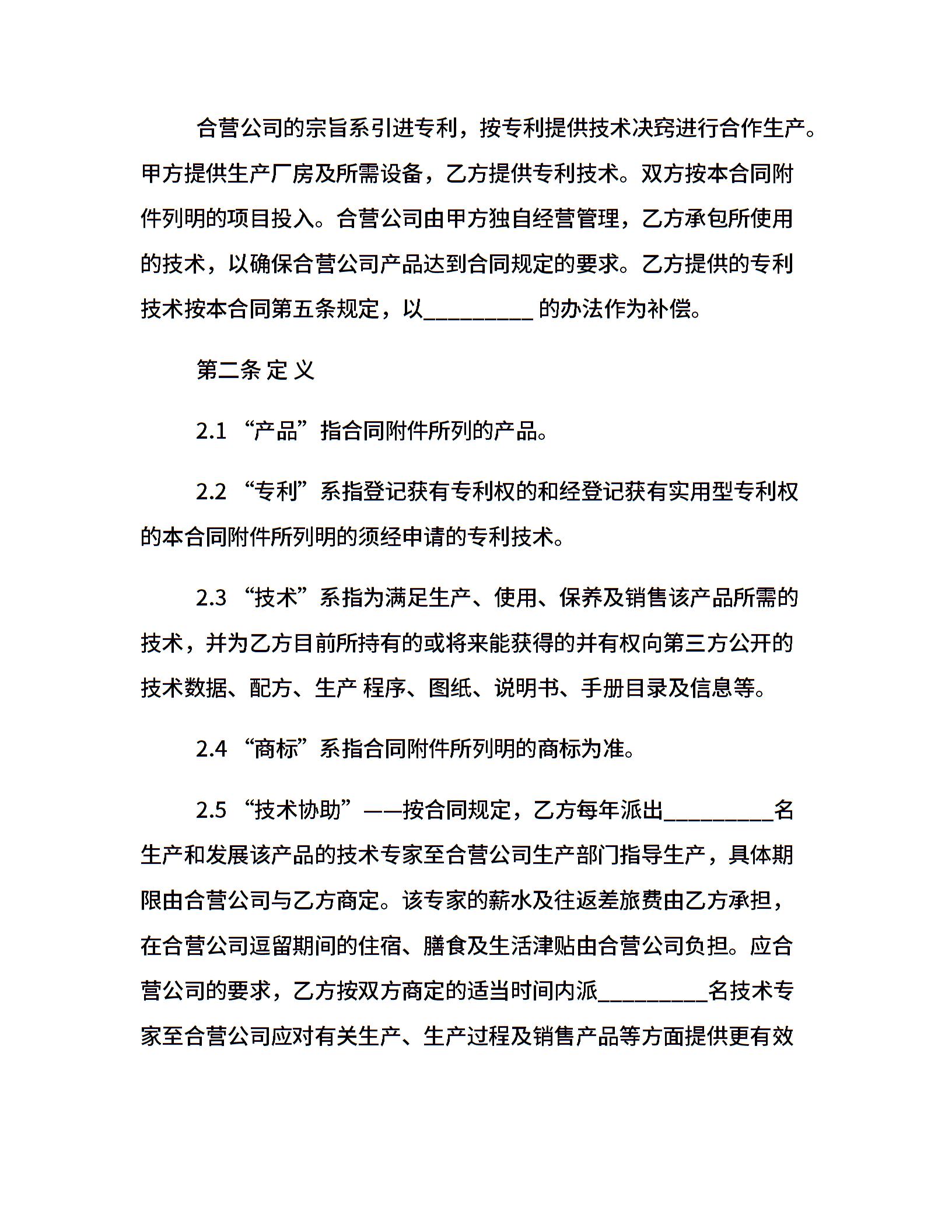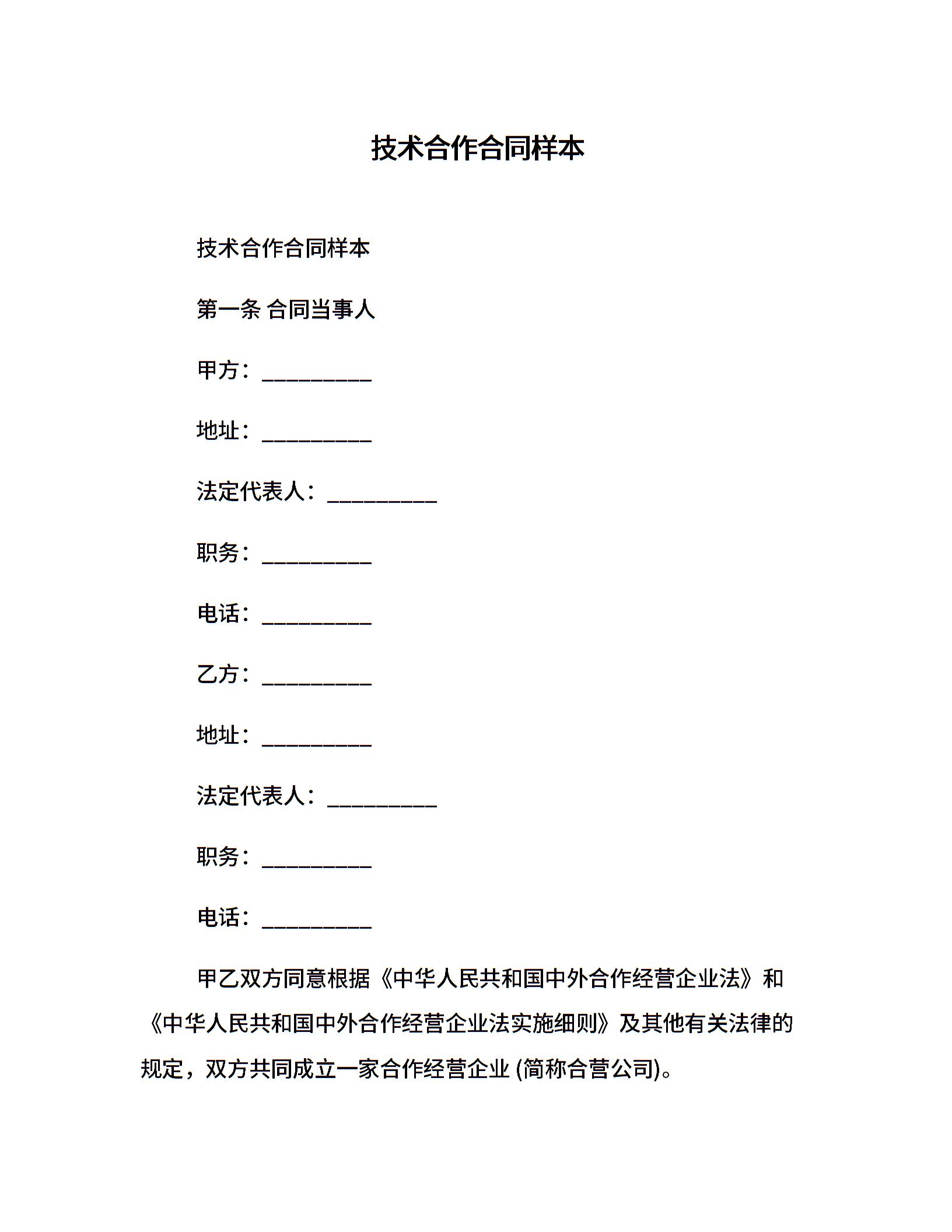 技术合作合同样本