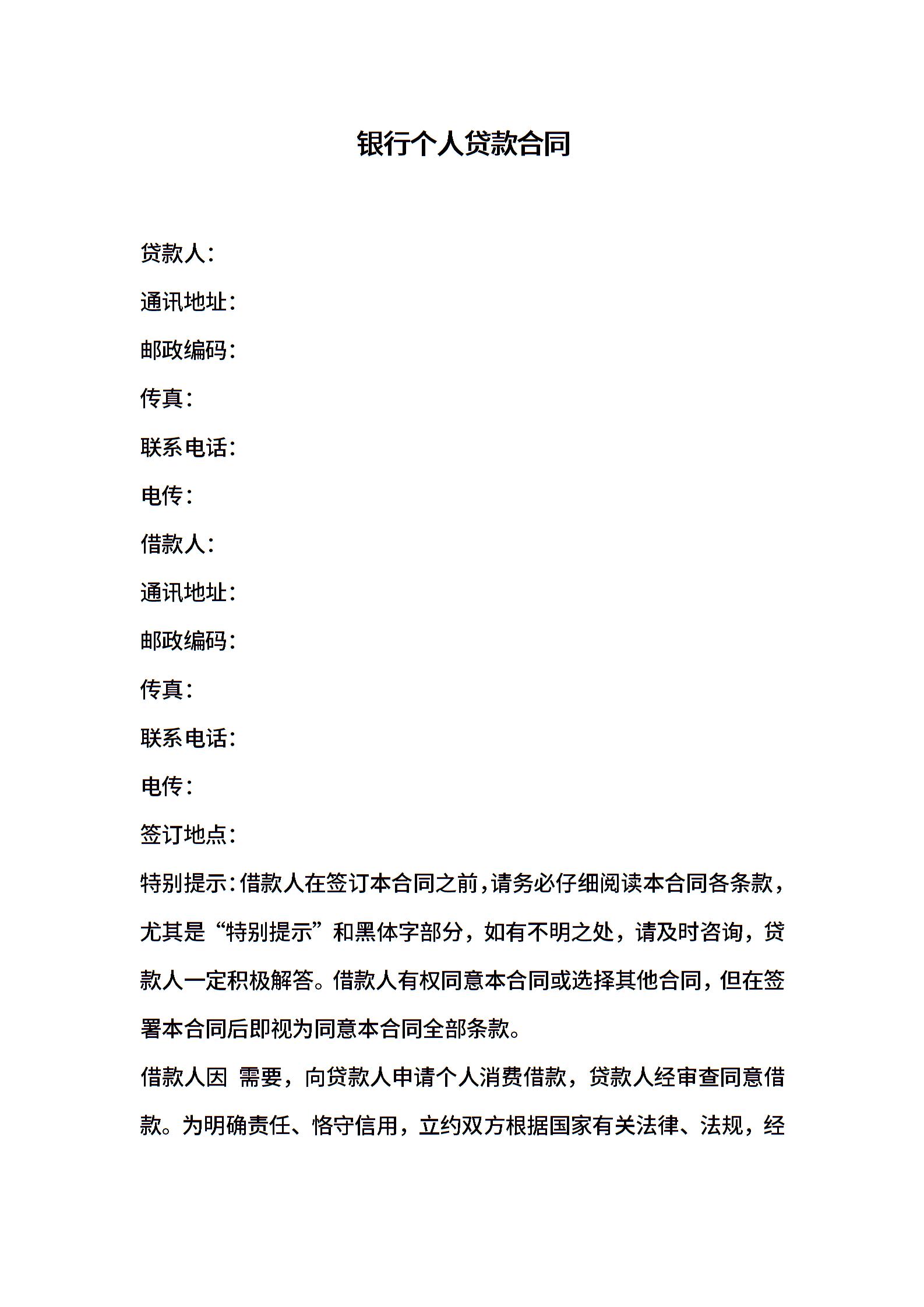 银行个人贷款合同