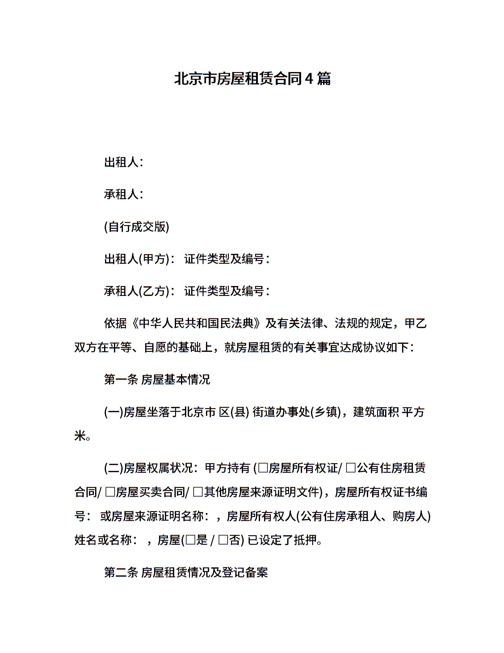 北京市房屋租赁合同4篇