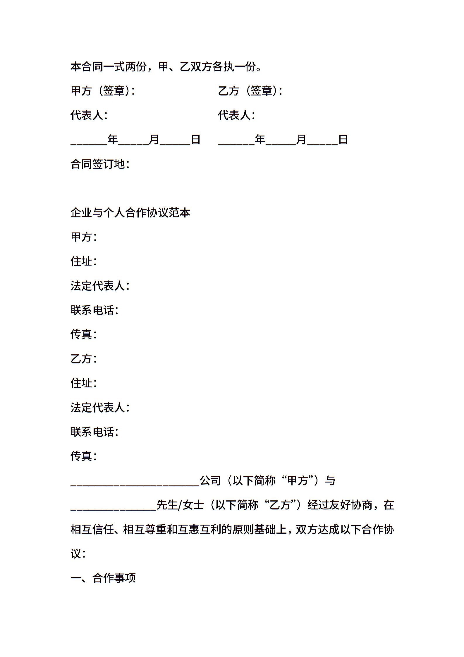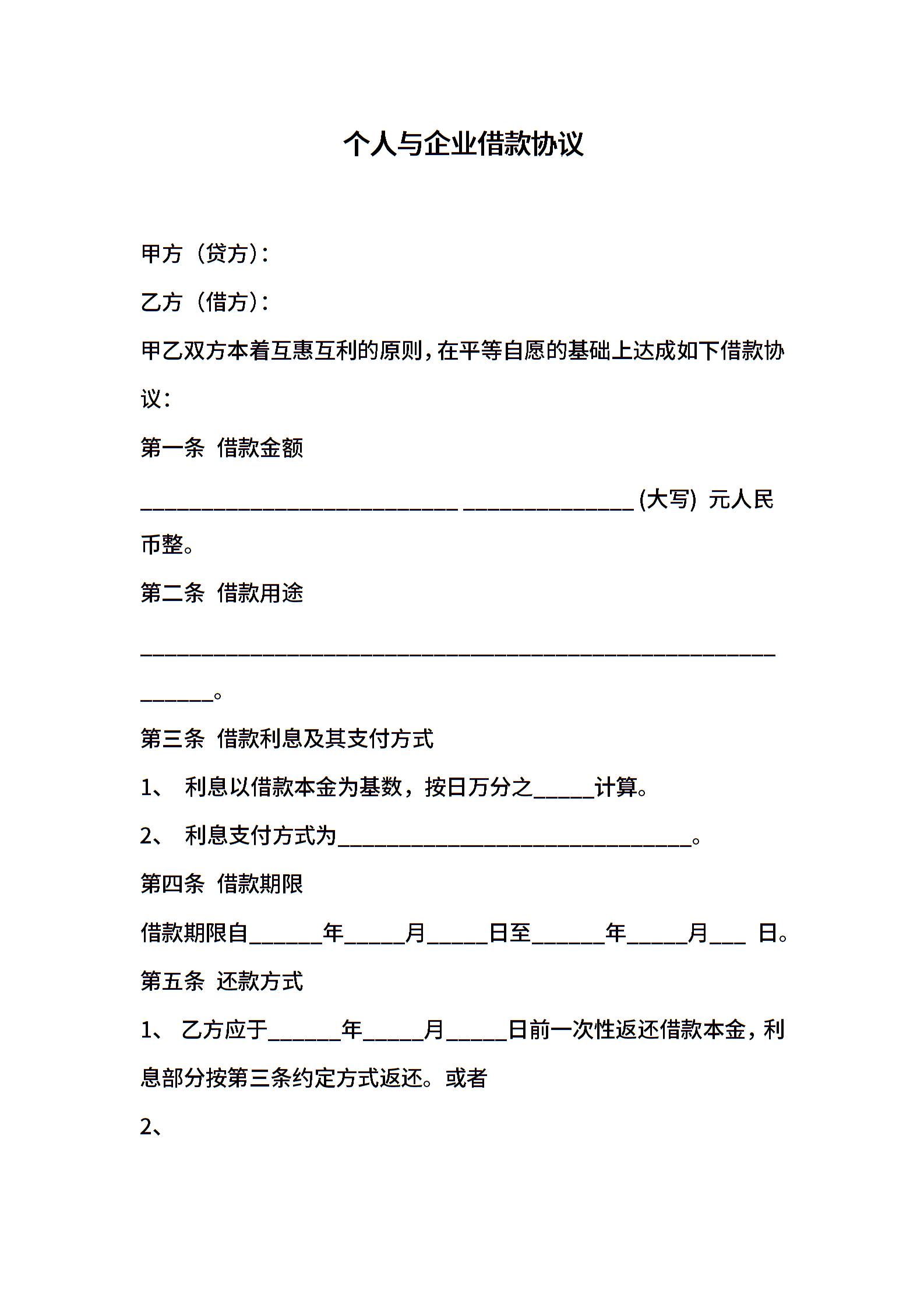 个人与企业借款协议