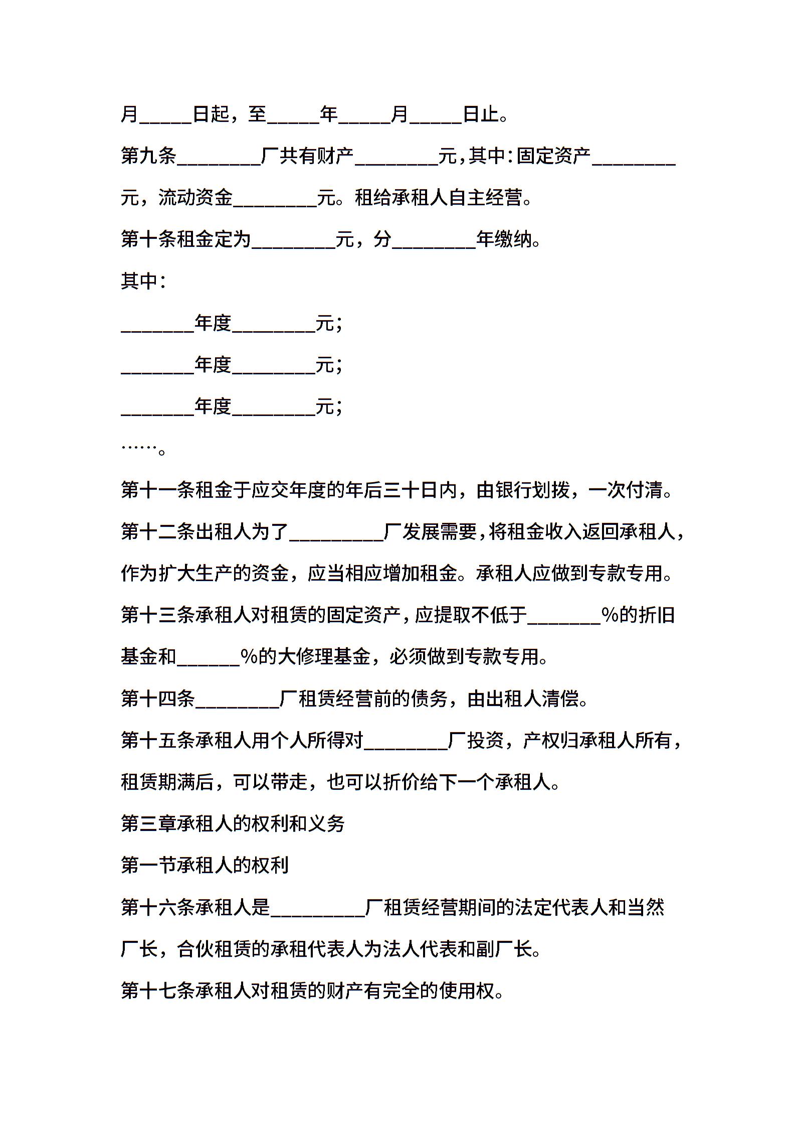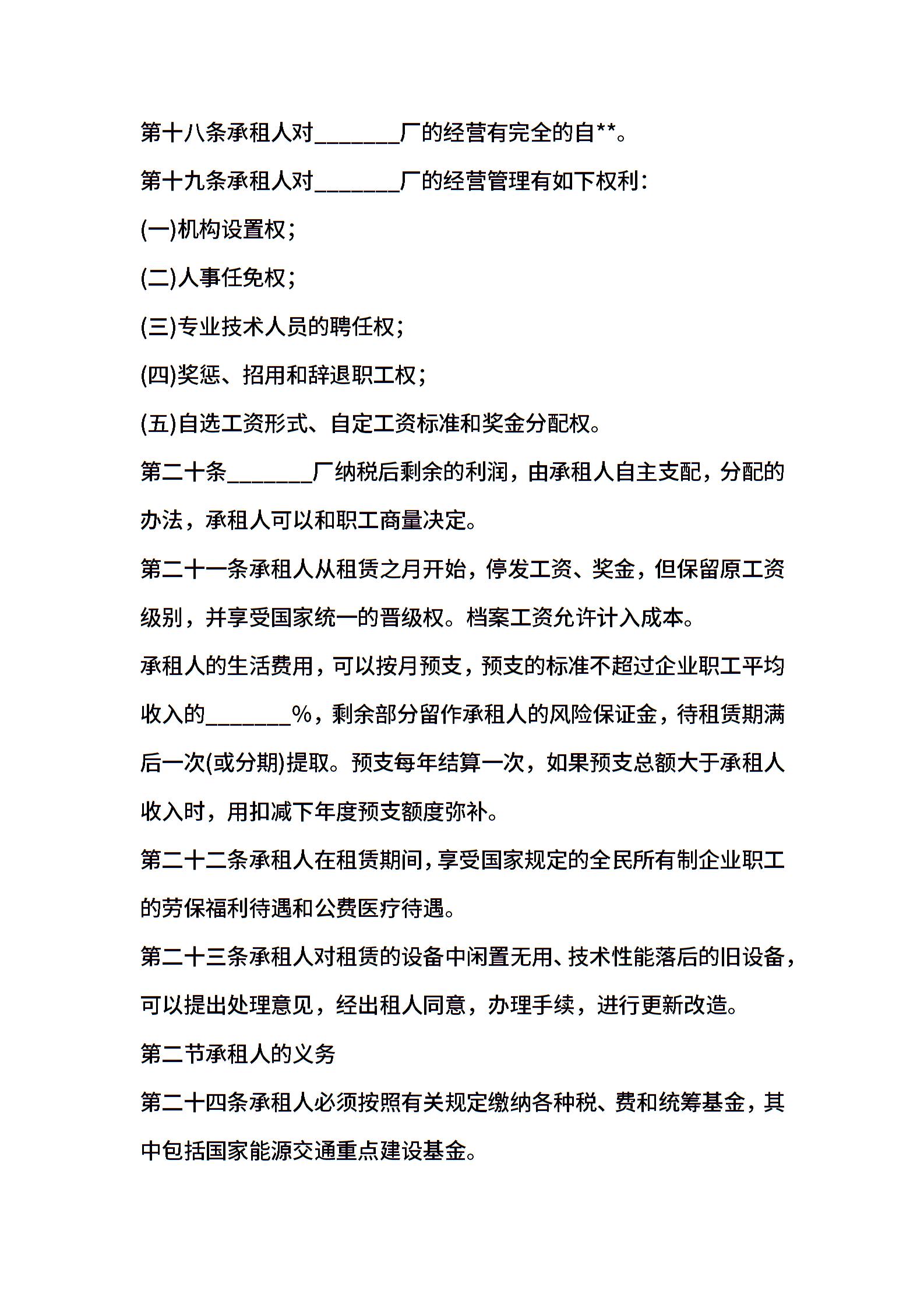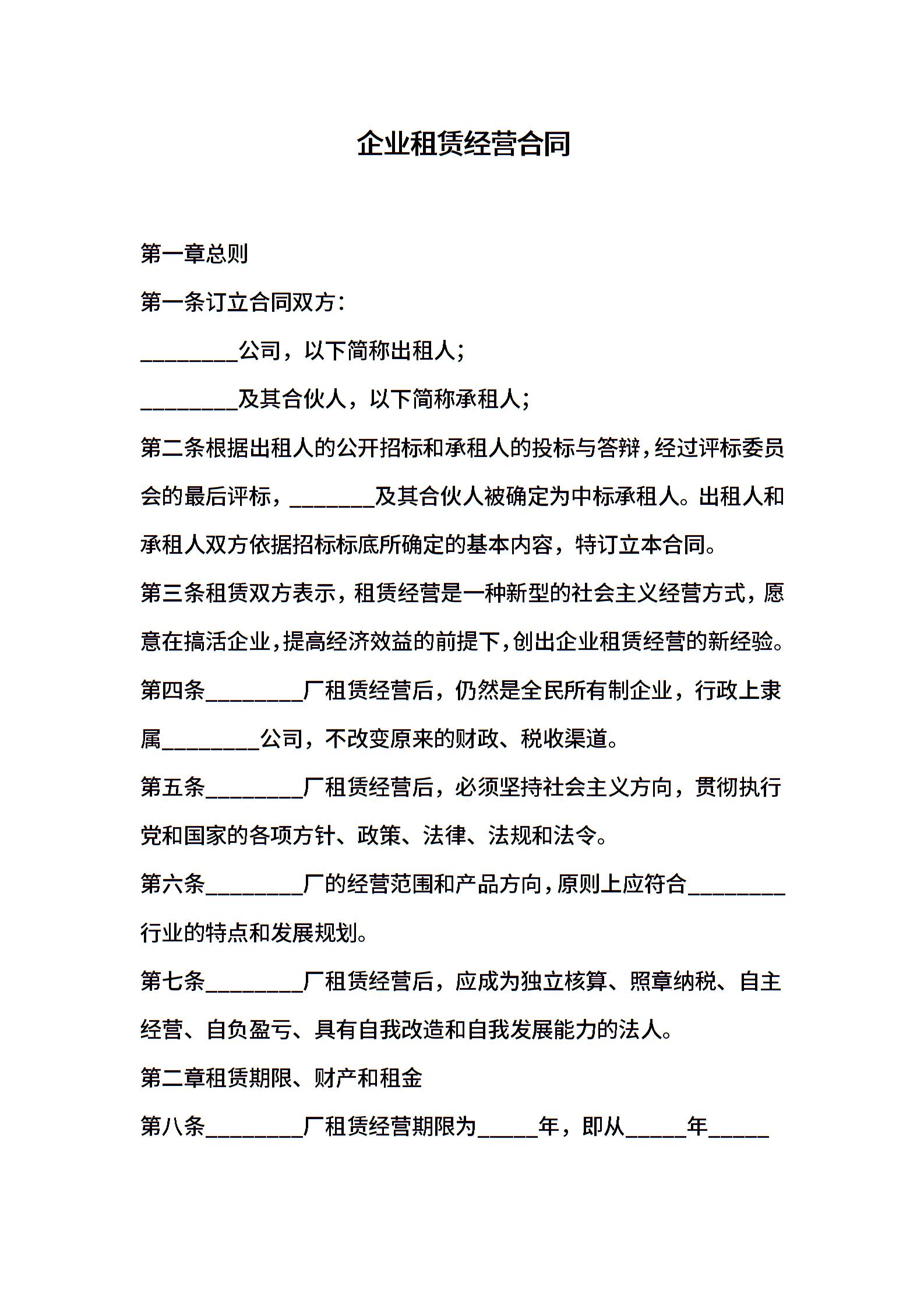 企业租赁经营合同