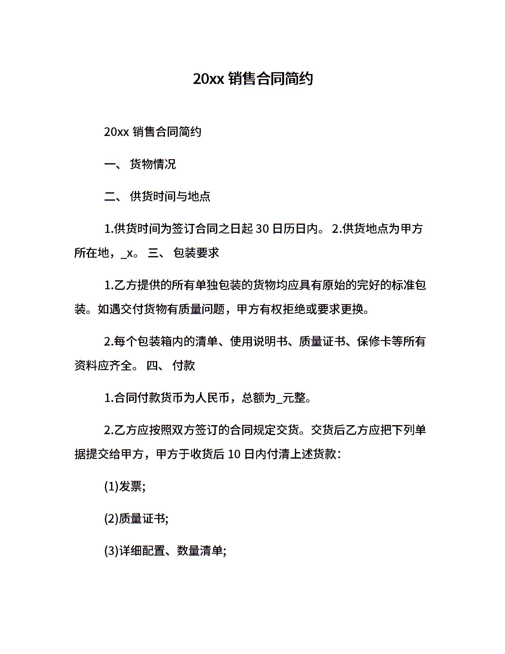 20xx销售合同简约