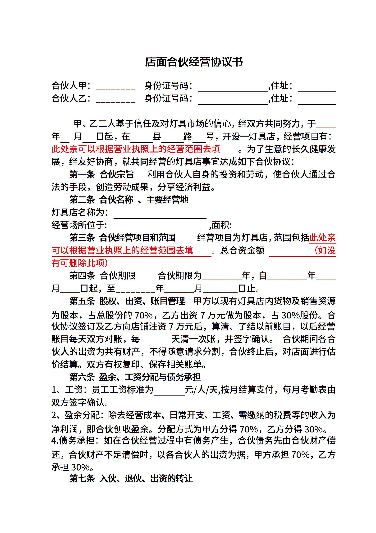 店面合伙经营协议书2