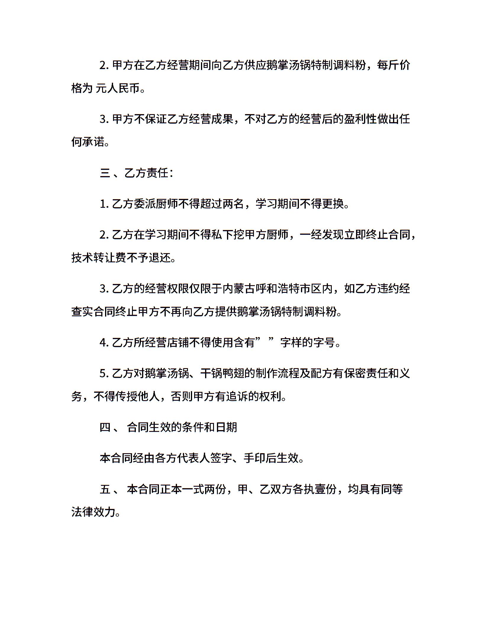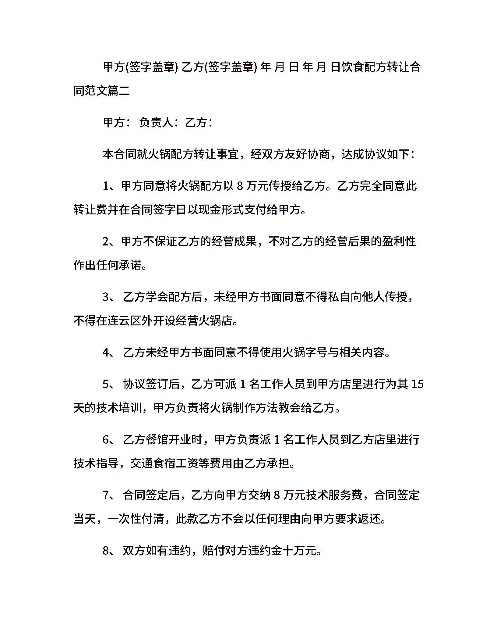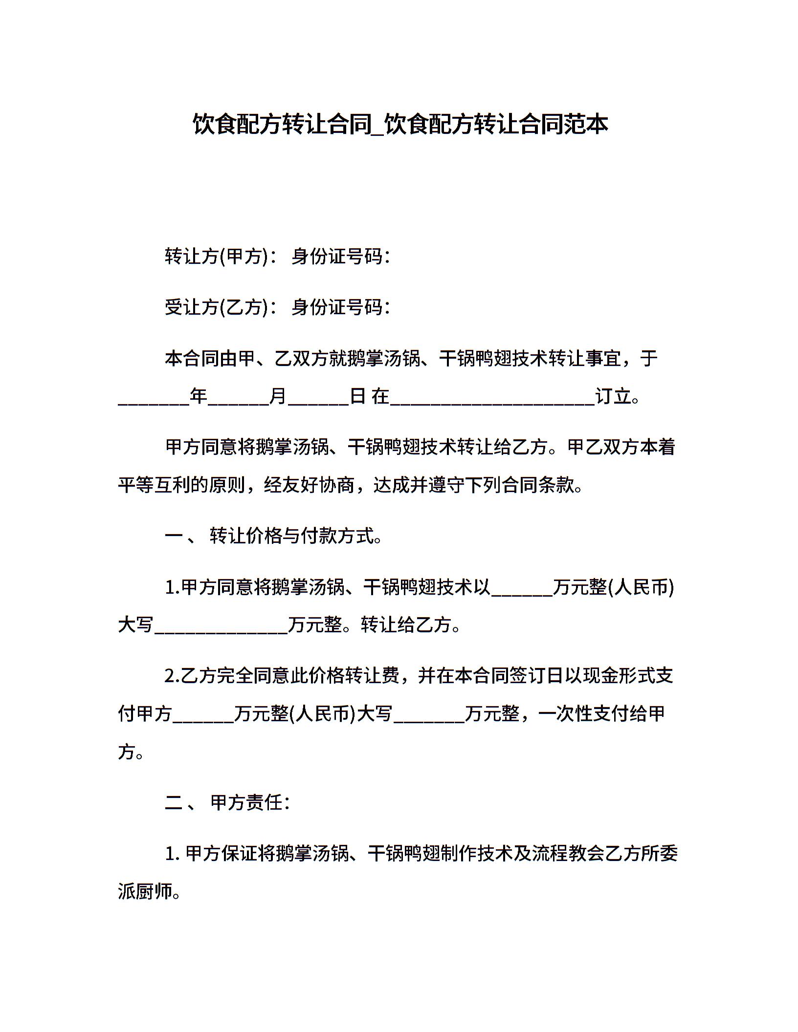 饮食配方转让合同_饮食配方转让合同范本