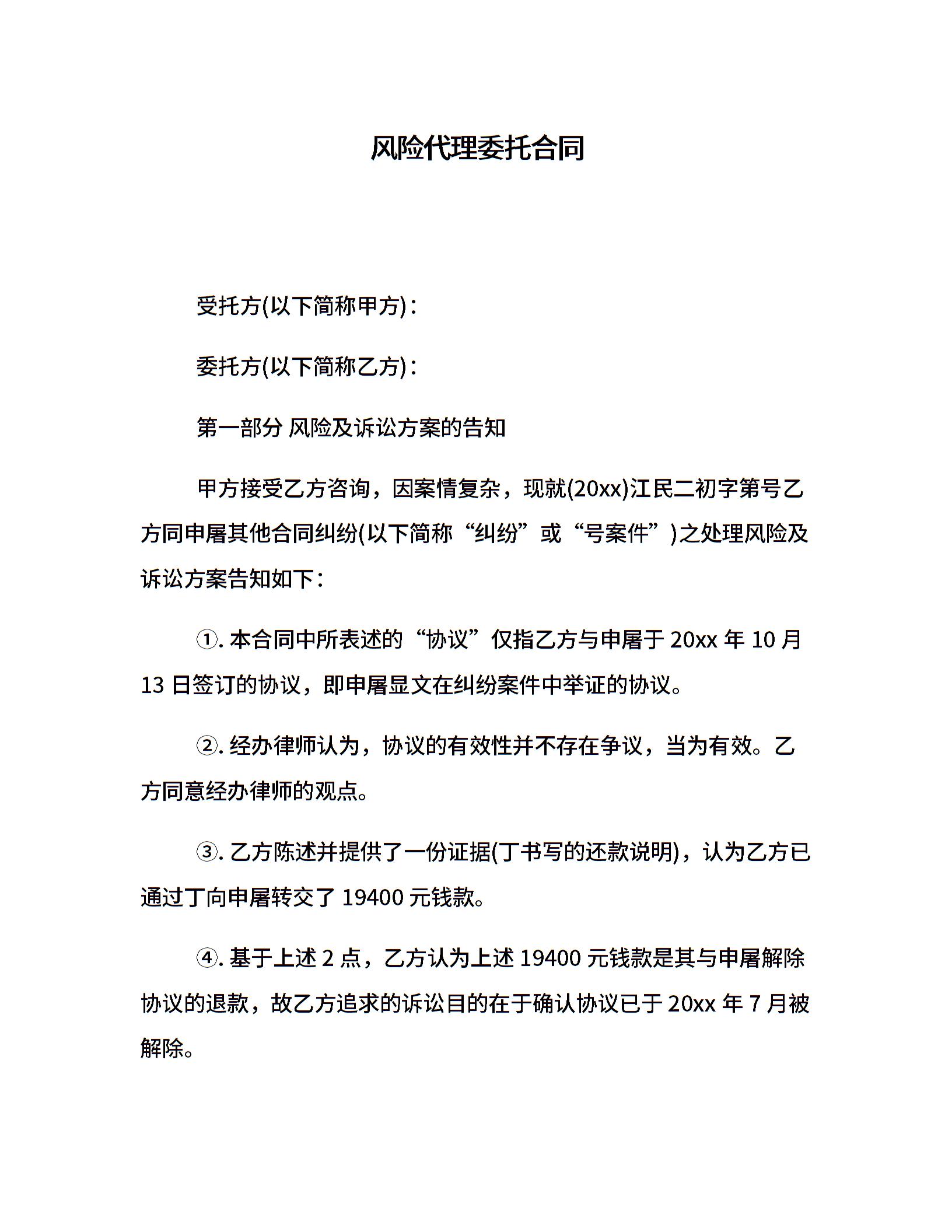 风险代理委托合同