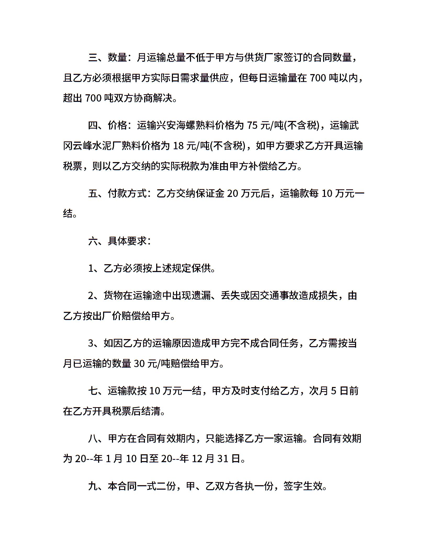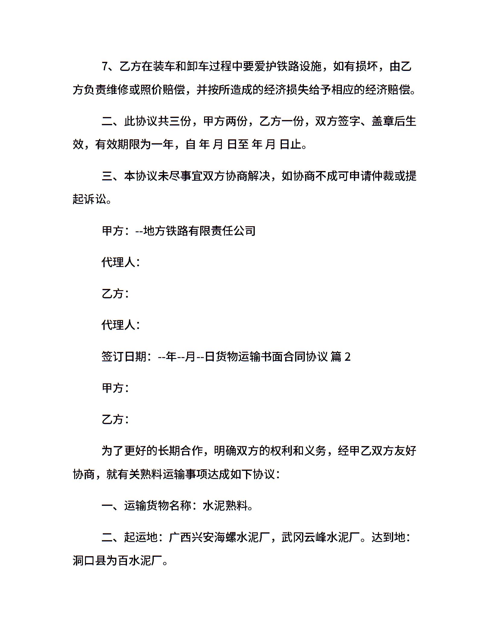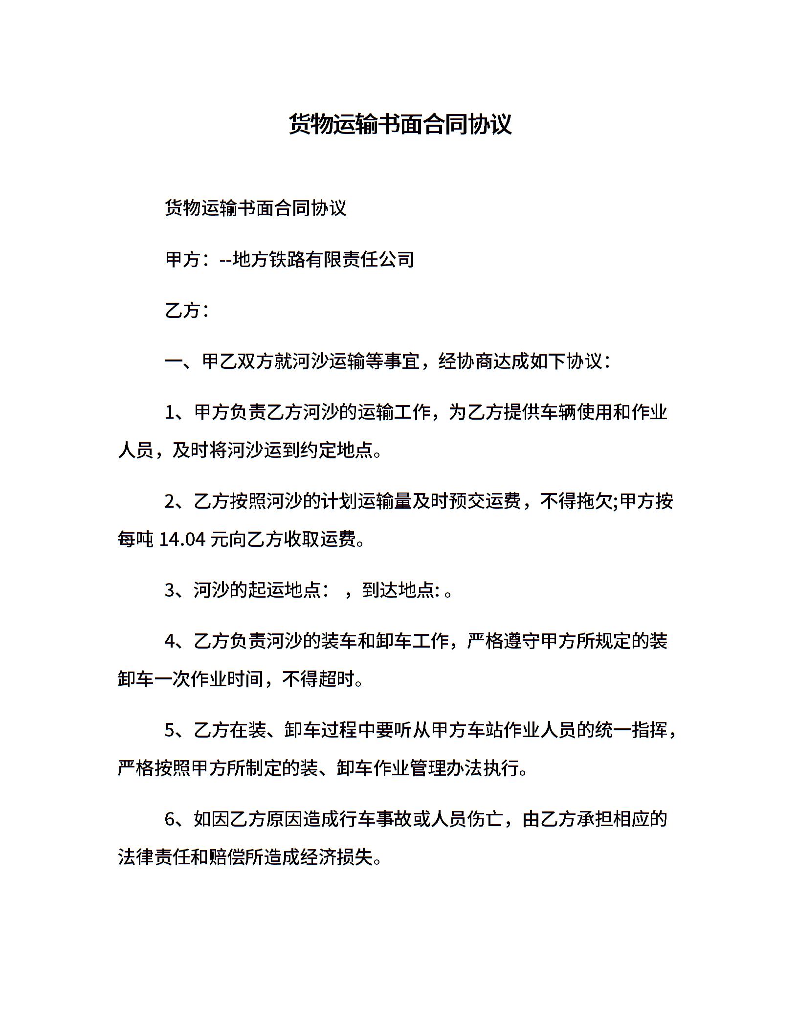 货物运输书面合同协议