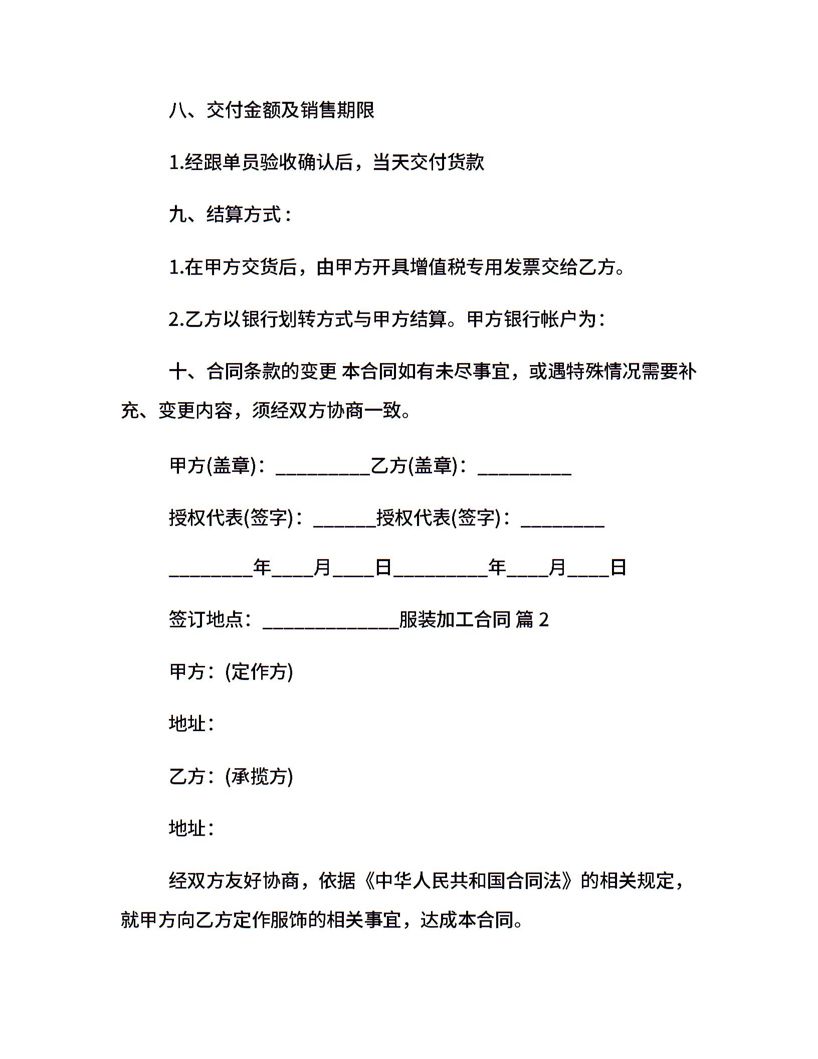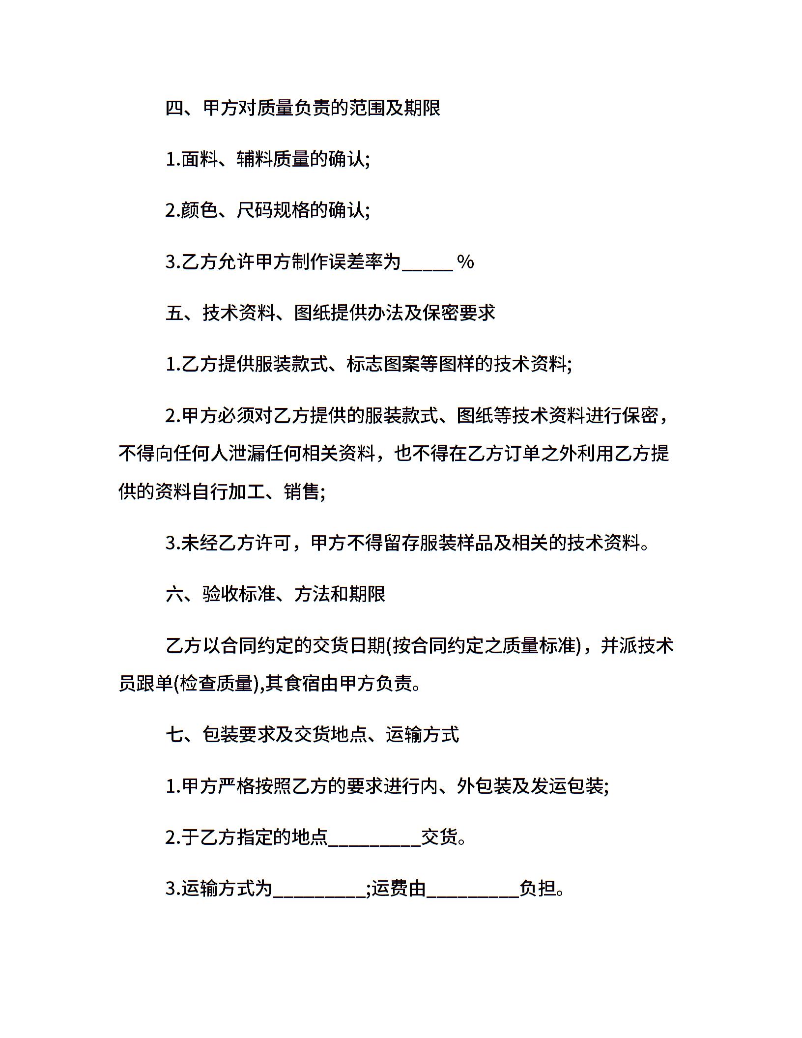 服装加工合同