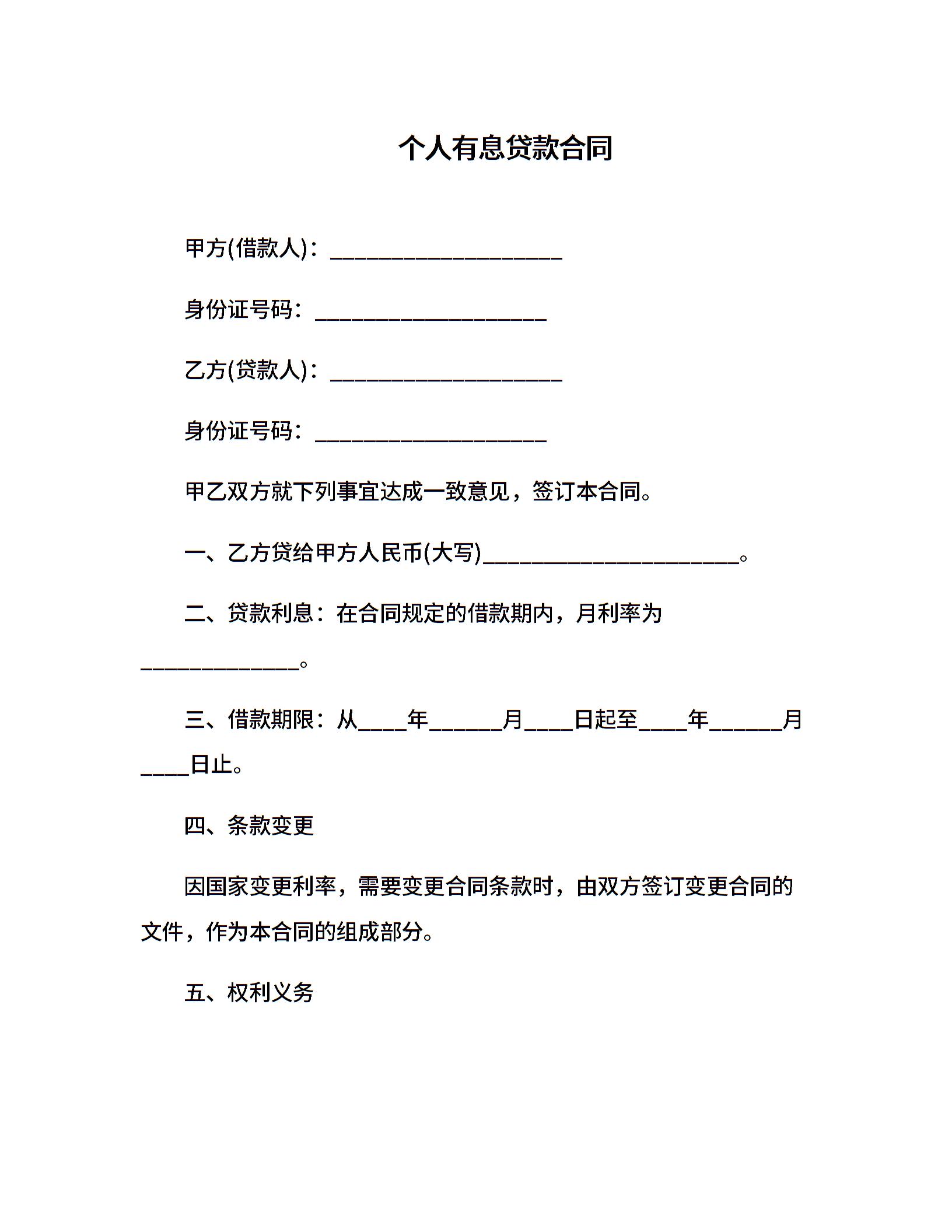 个人有息贷款合同(1)