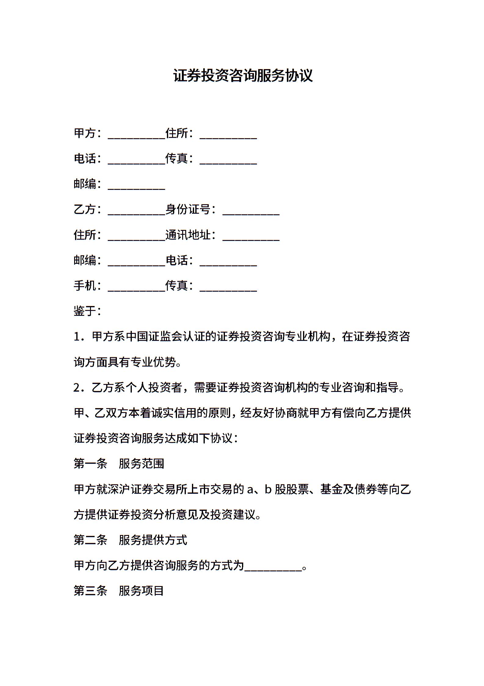证券投资咨询服务协议 (2)