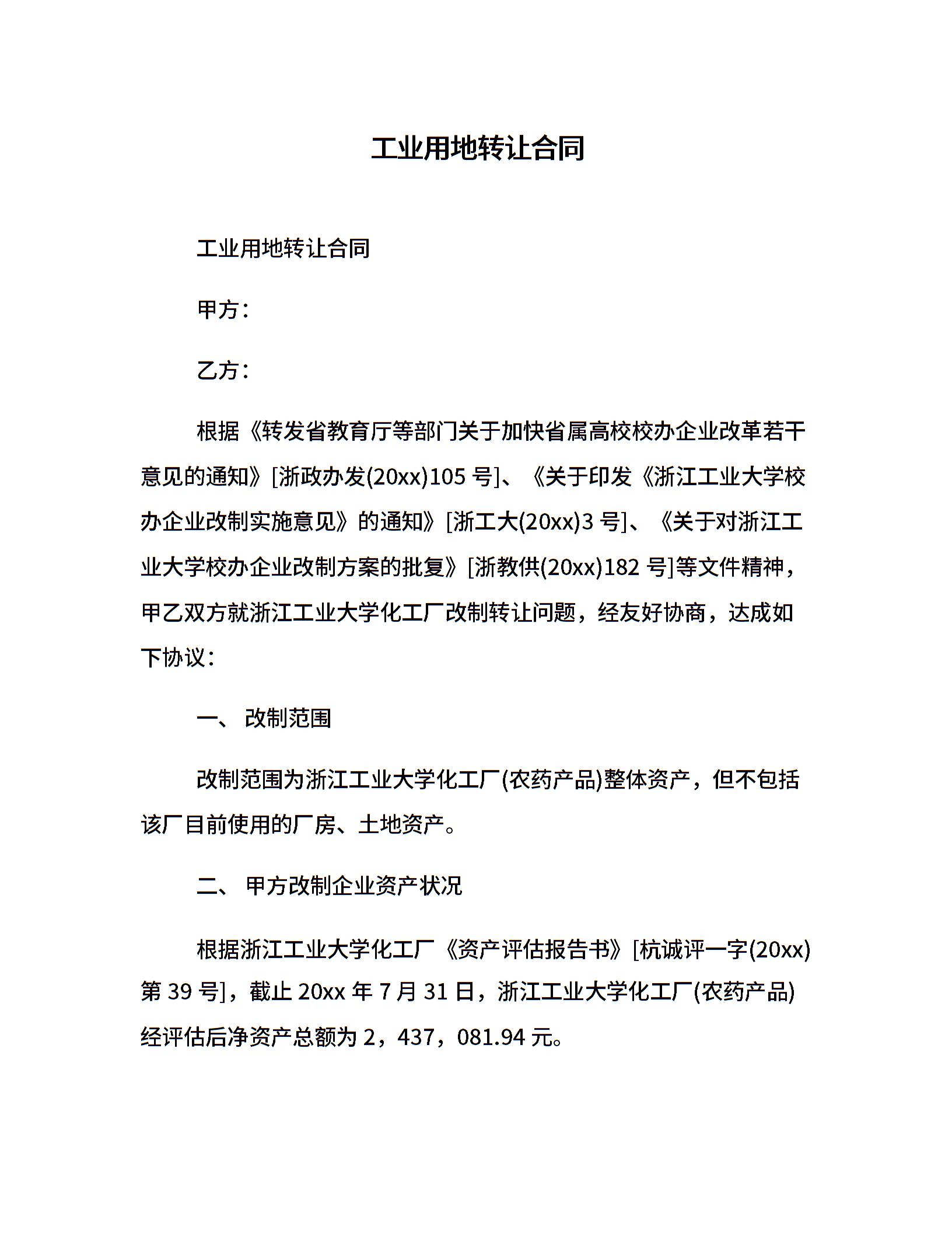 工业用地转让合同