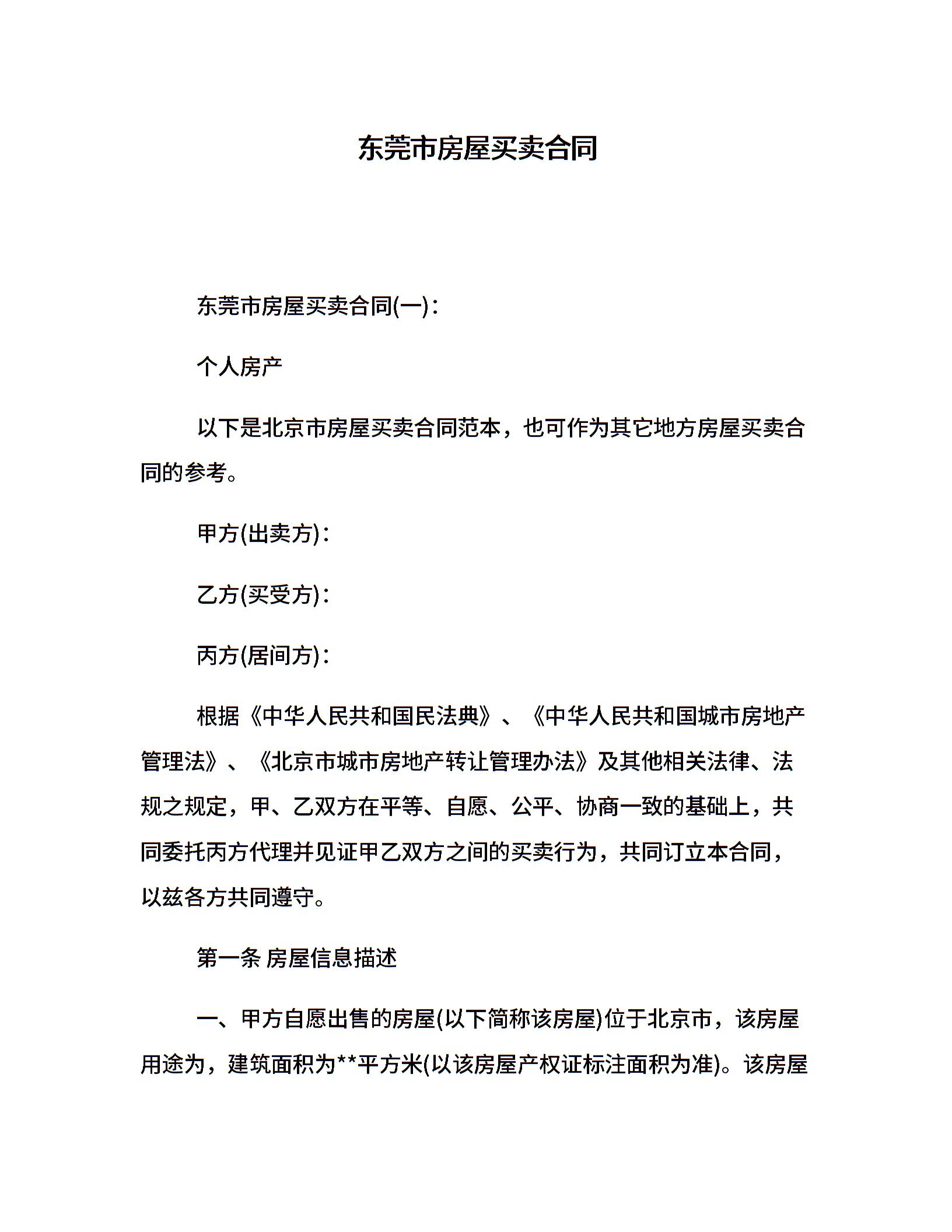 东莞市房屋买卖合同
