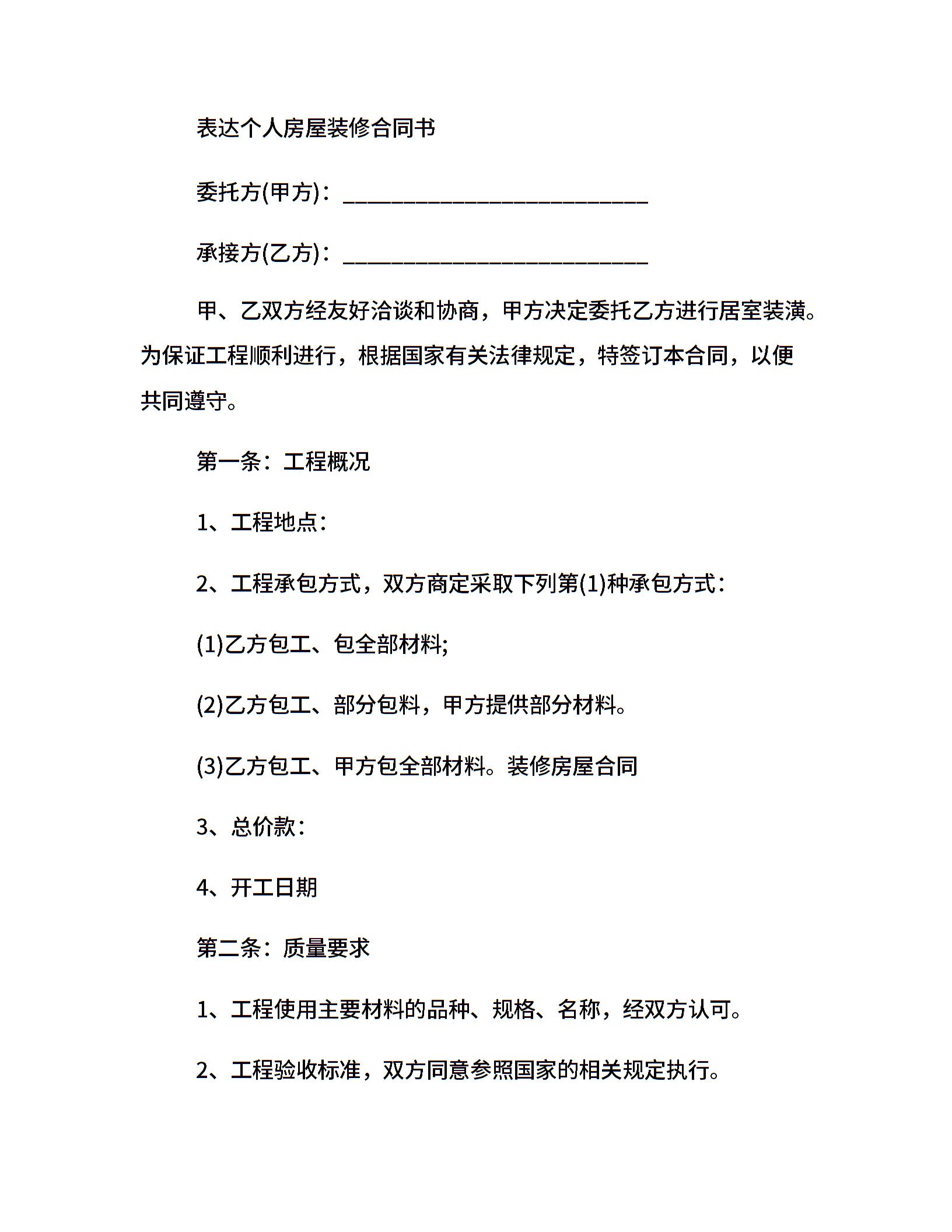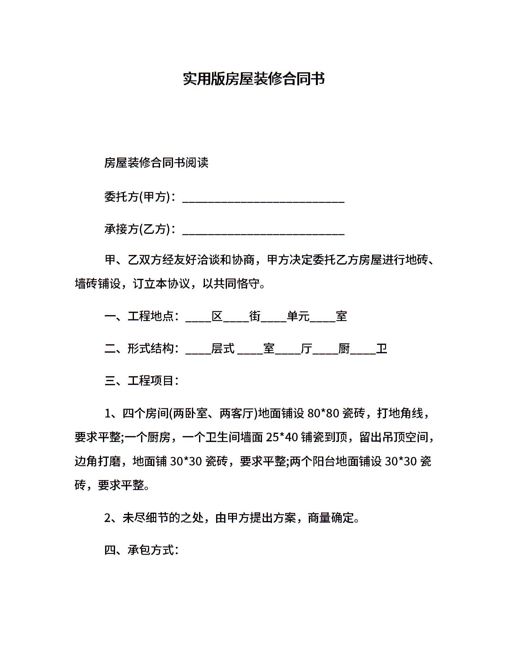 实用版房屋装修合同书