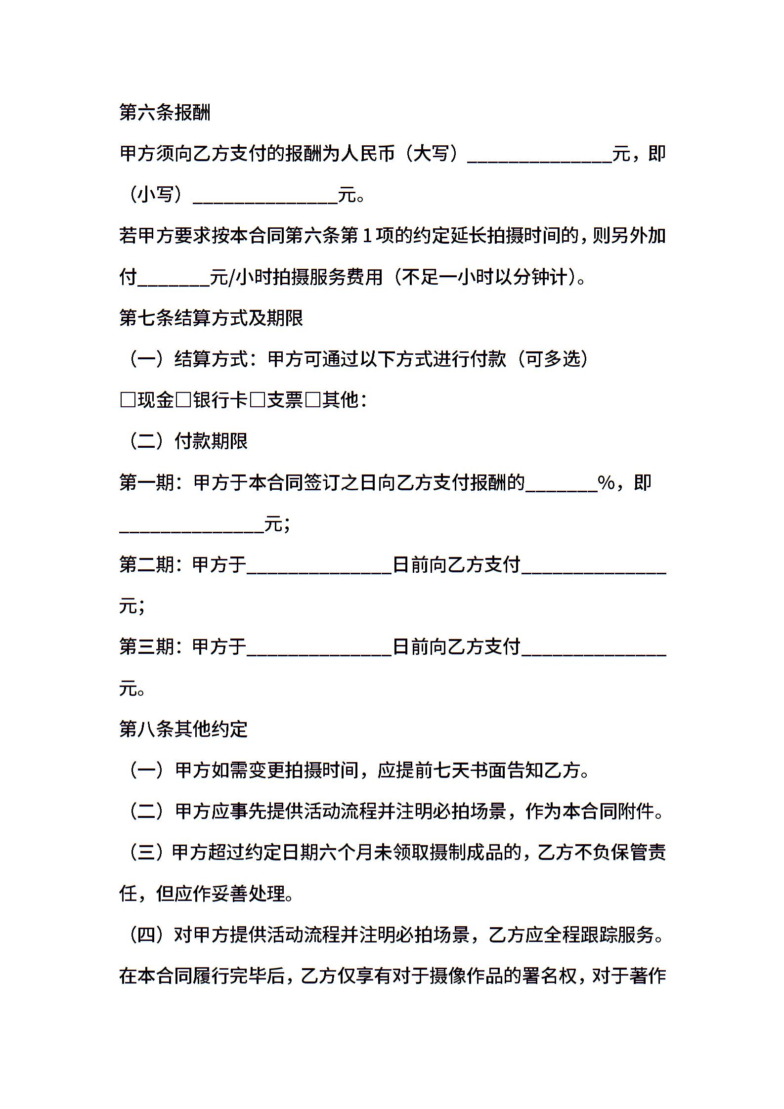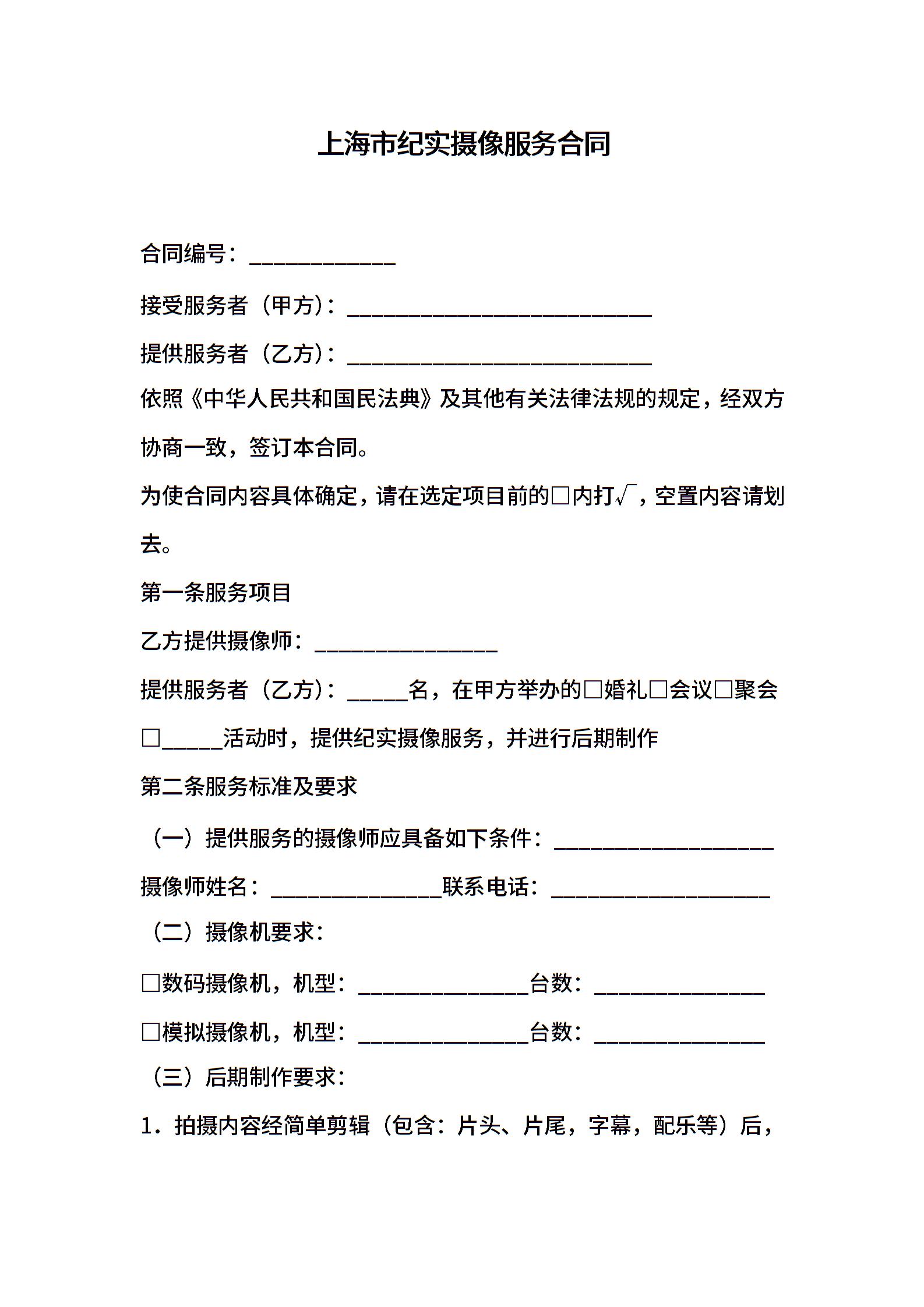 上海市纪实摄像服务合同