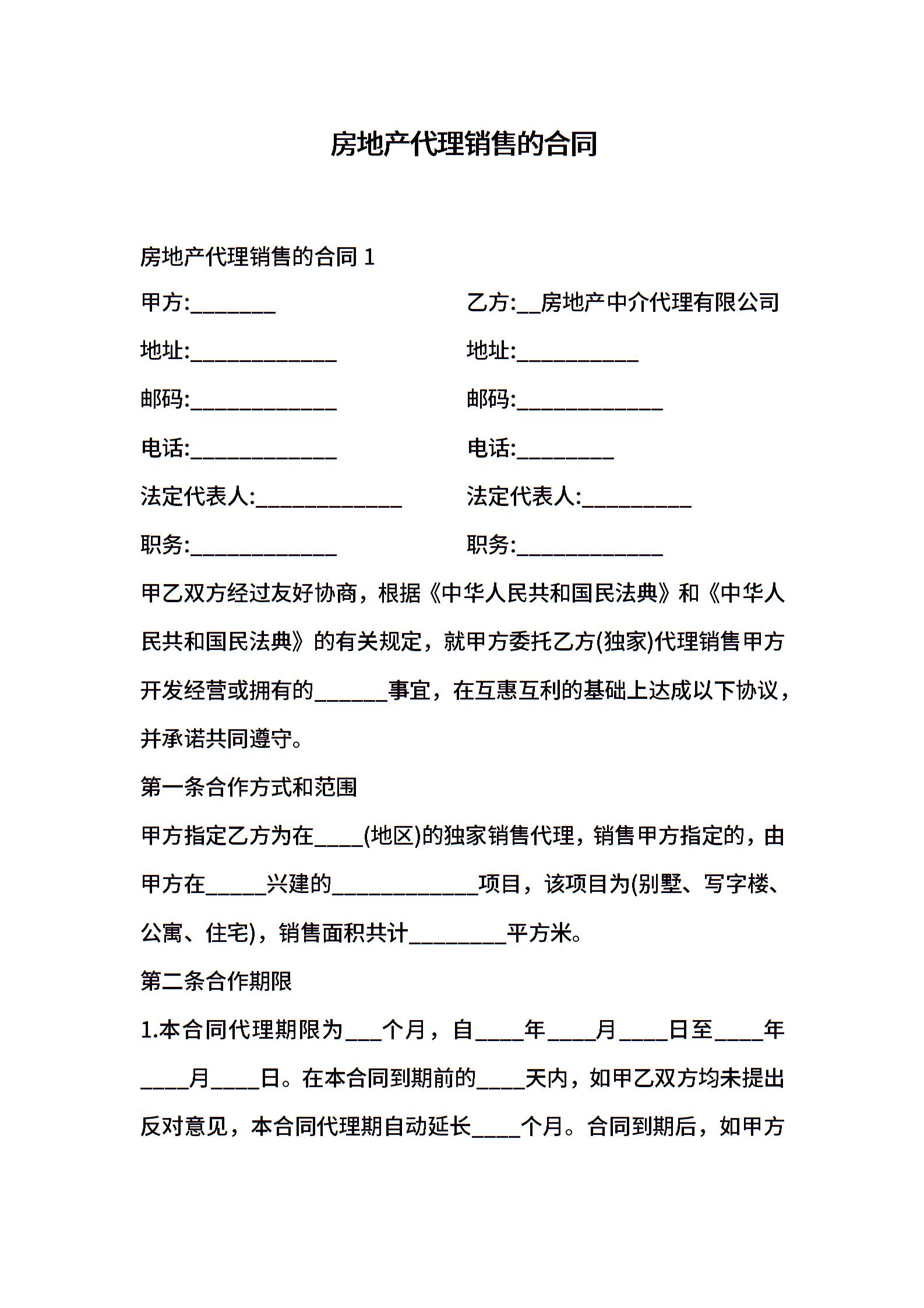房地产代理销售的合同