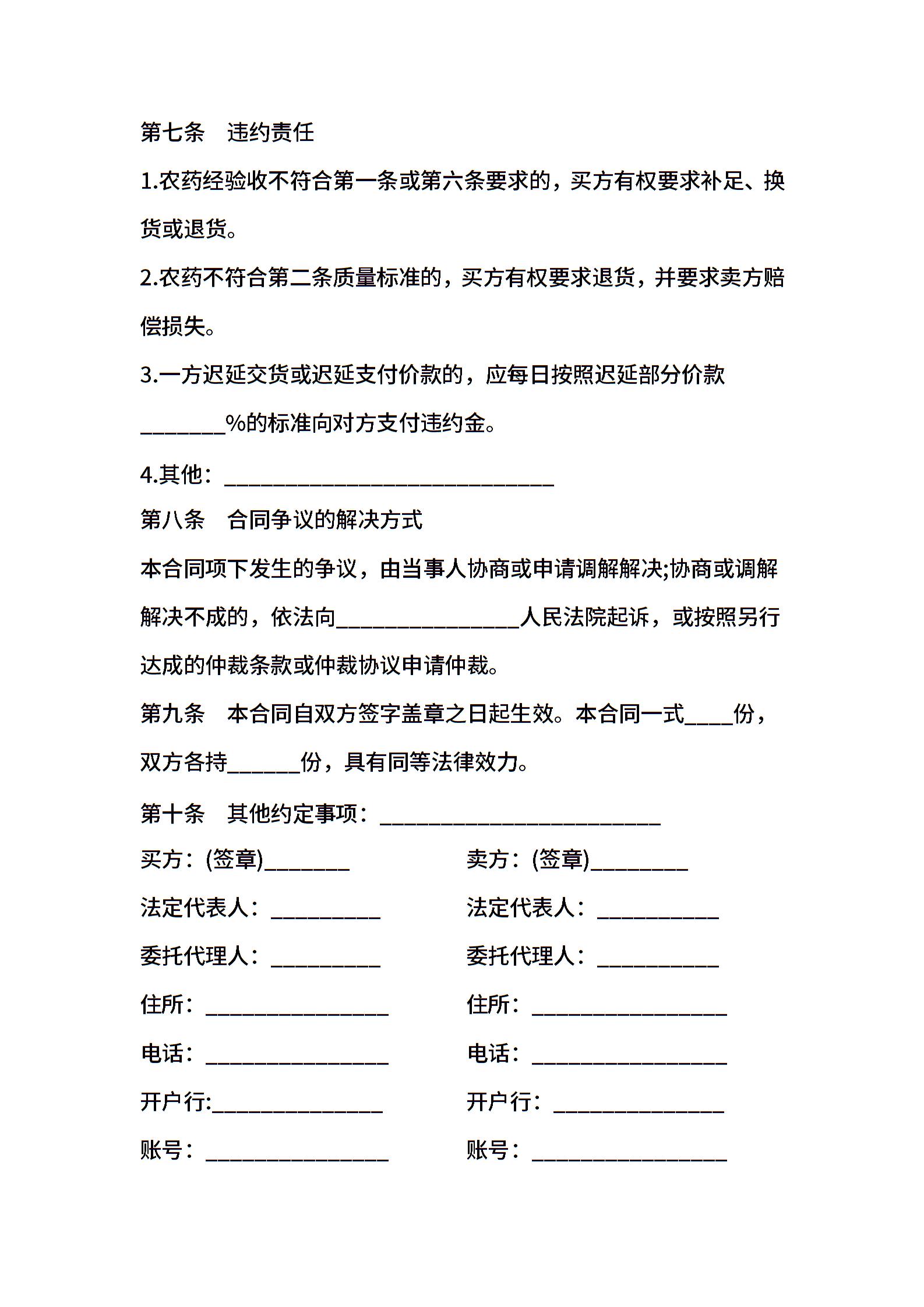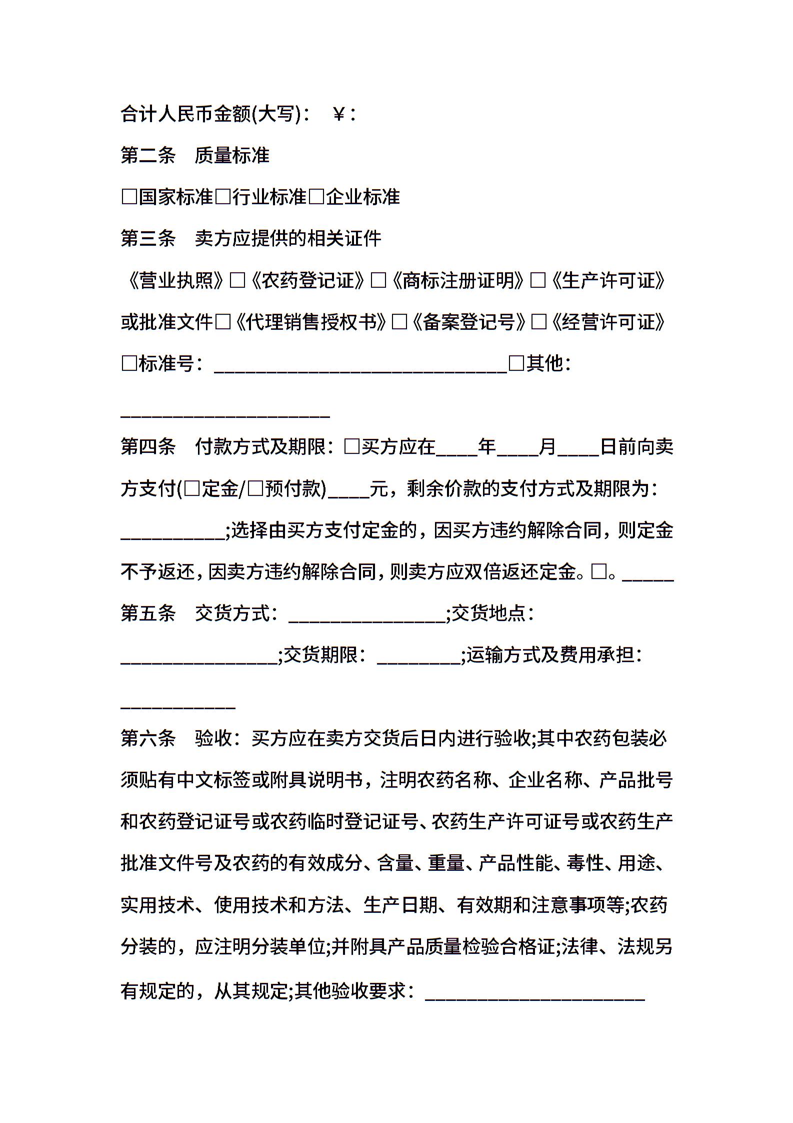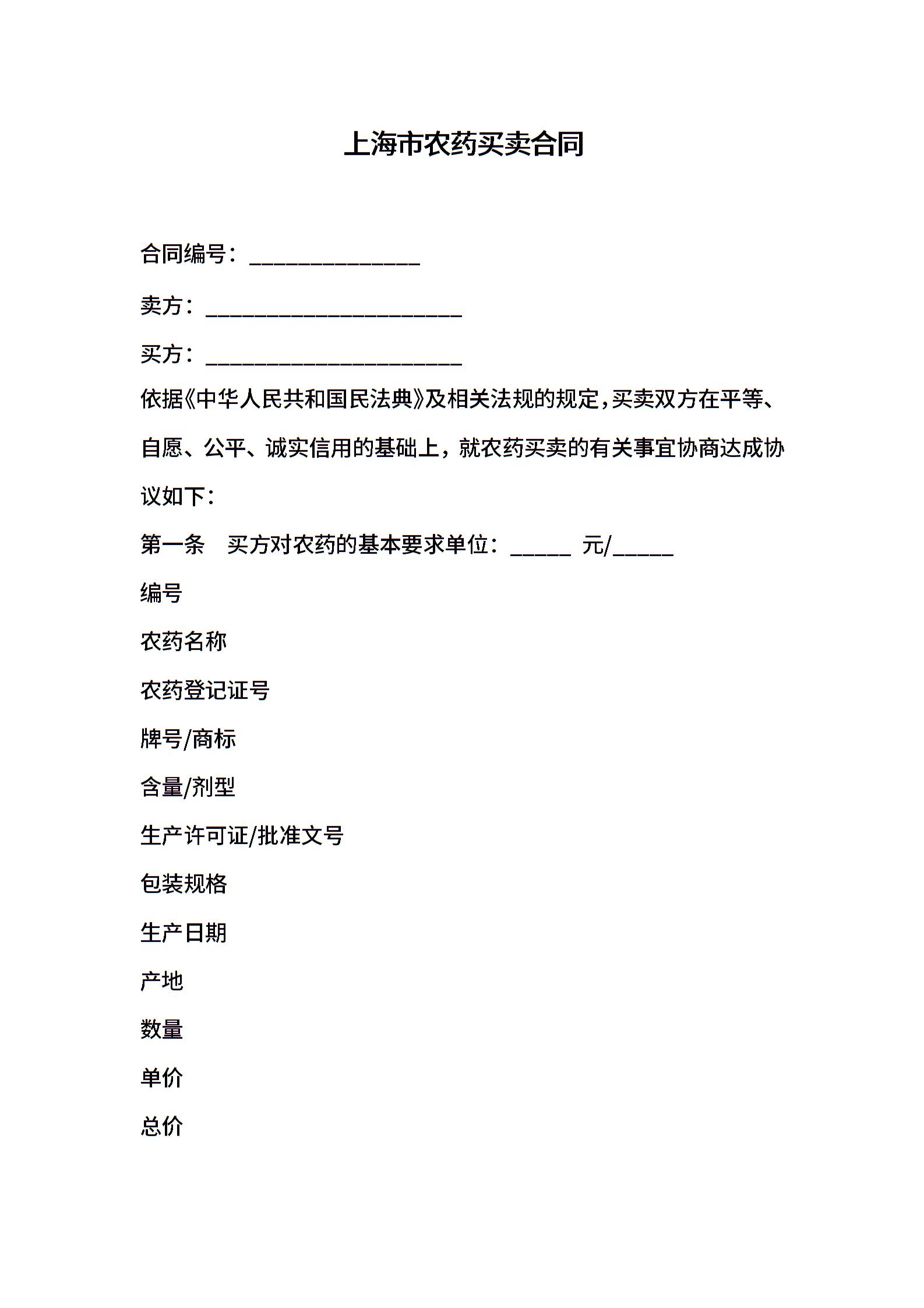 上海市农药买卖合同