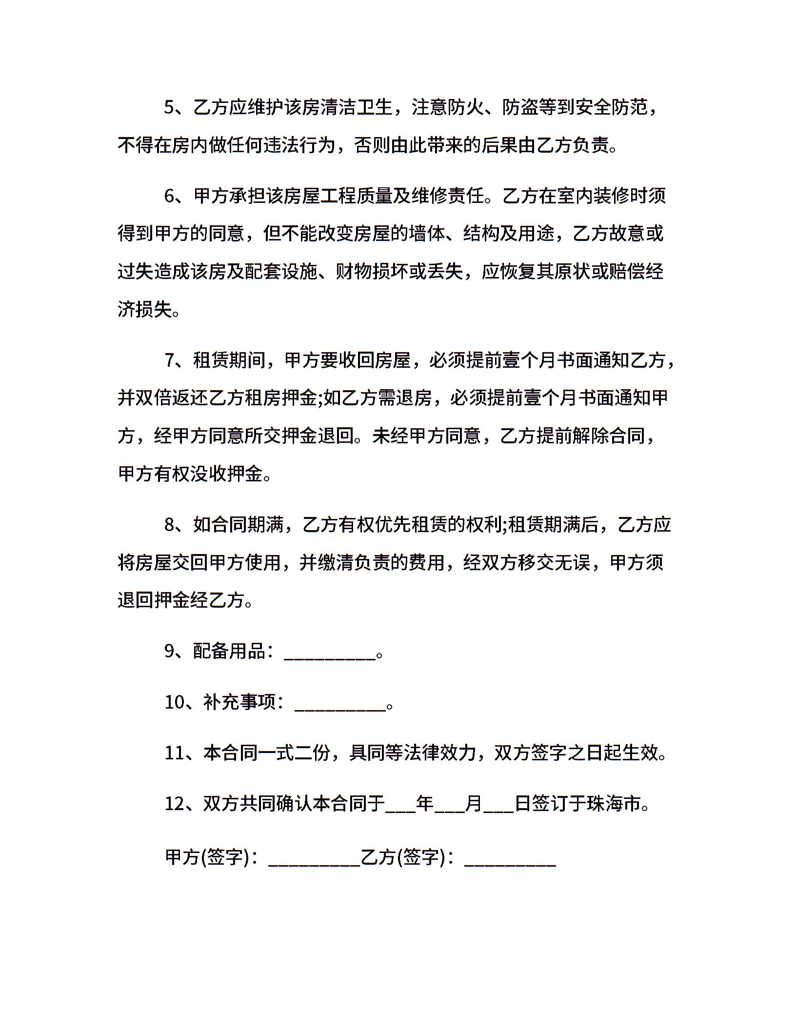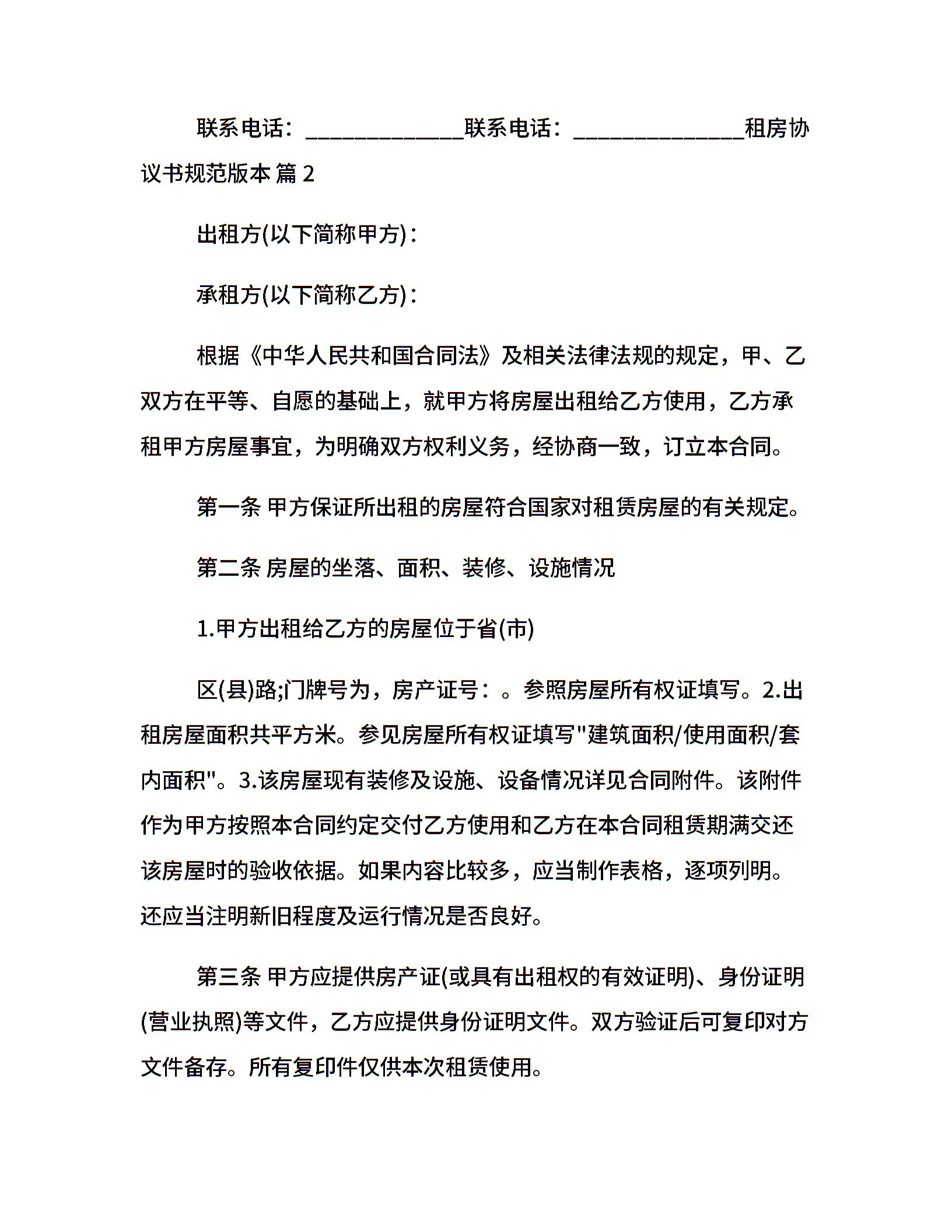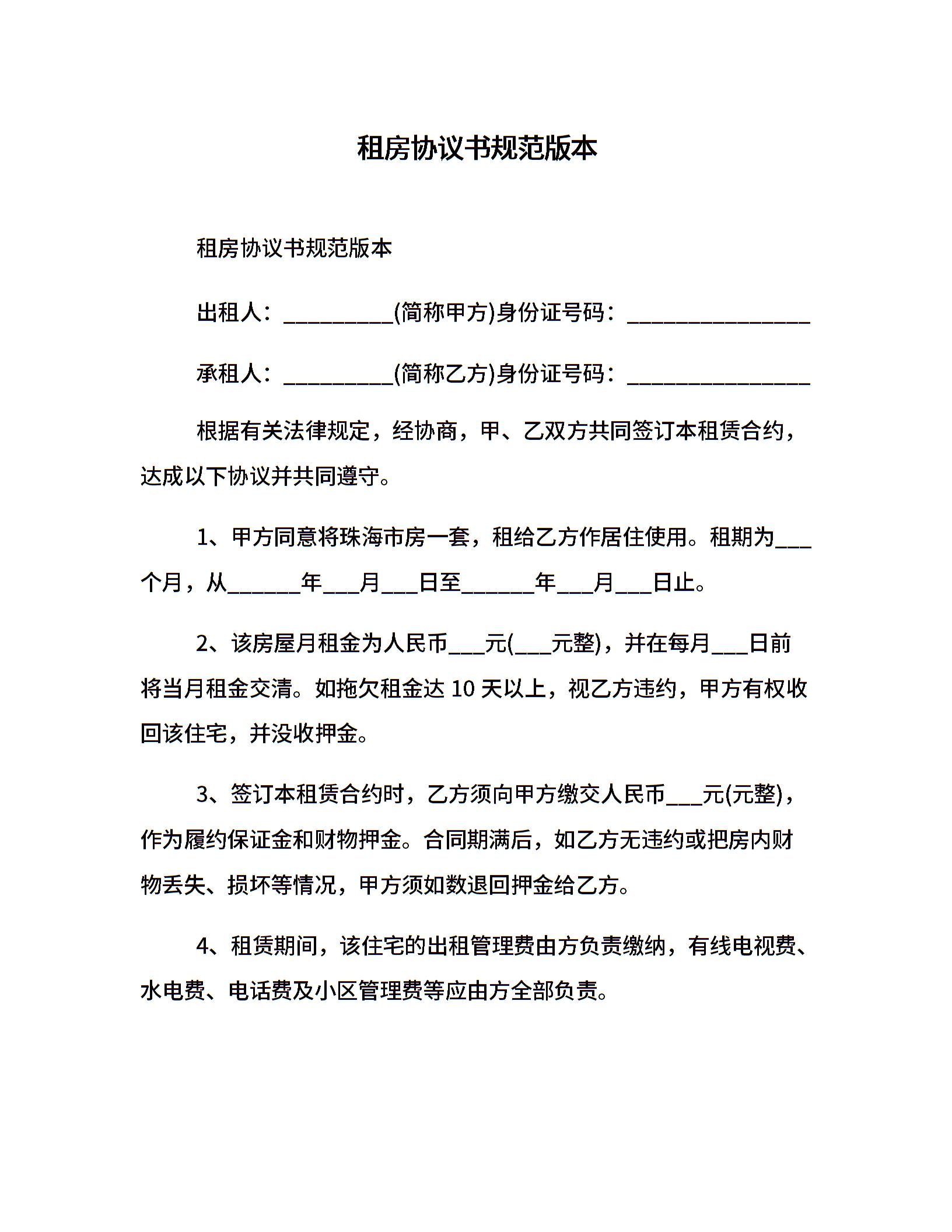 租房协议书规范版本