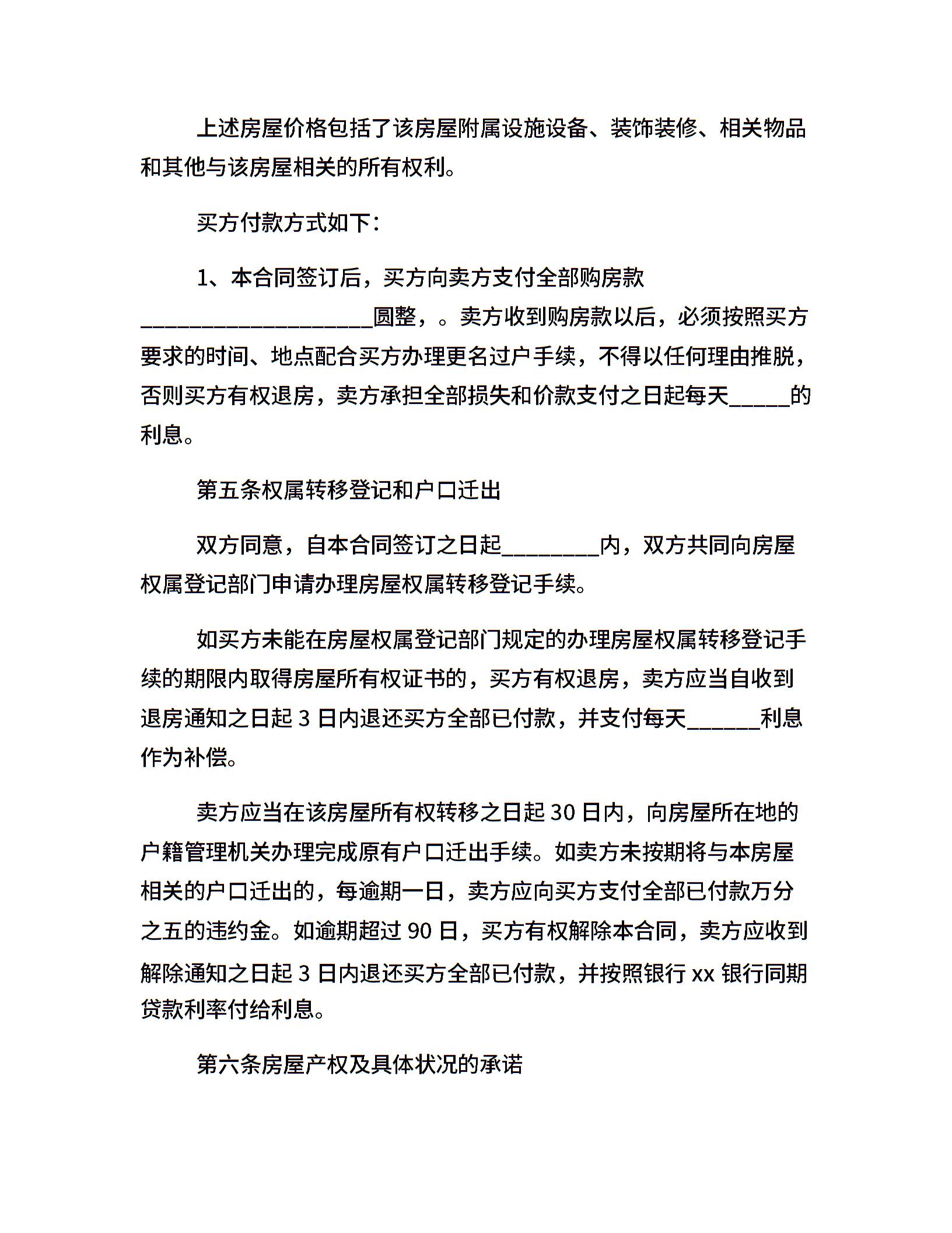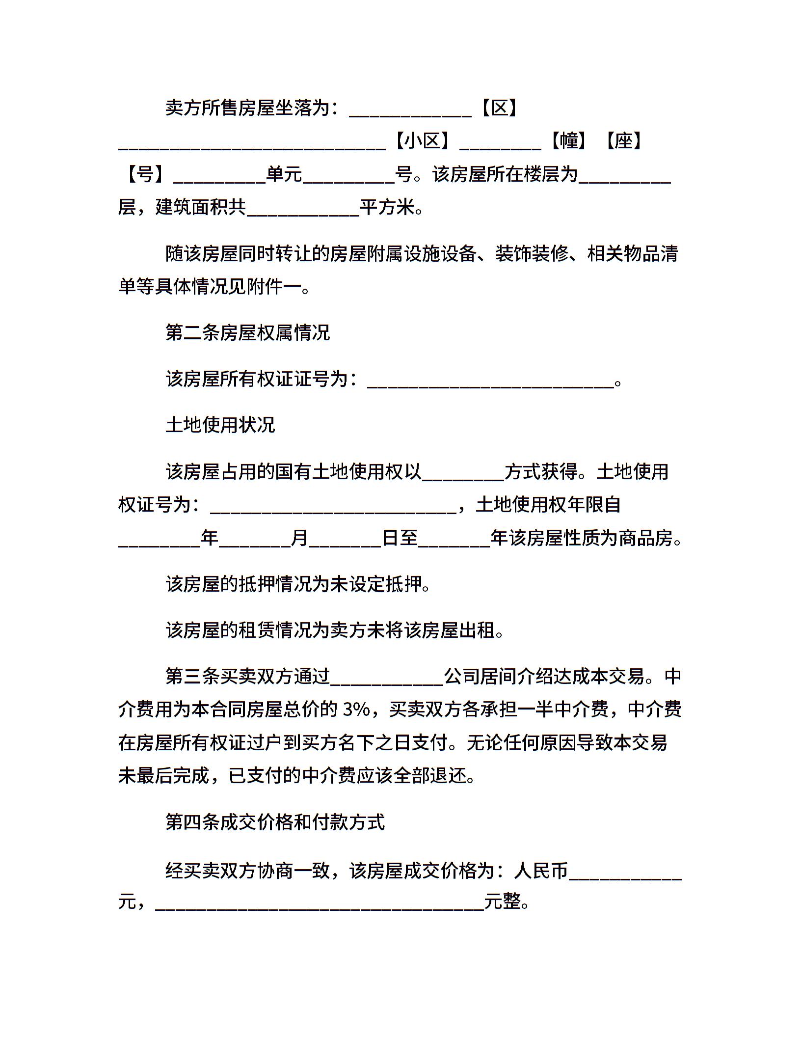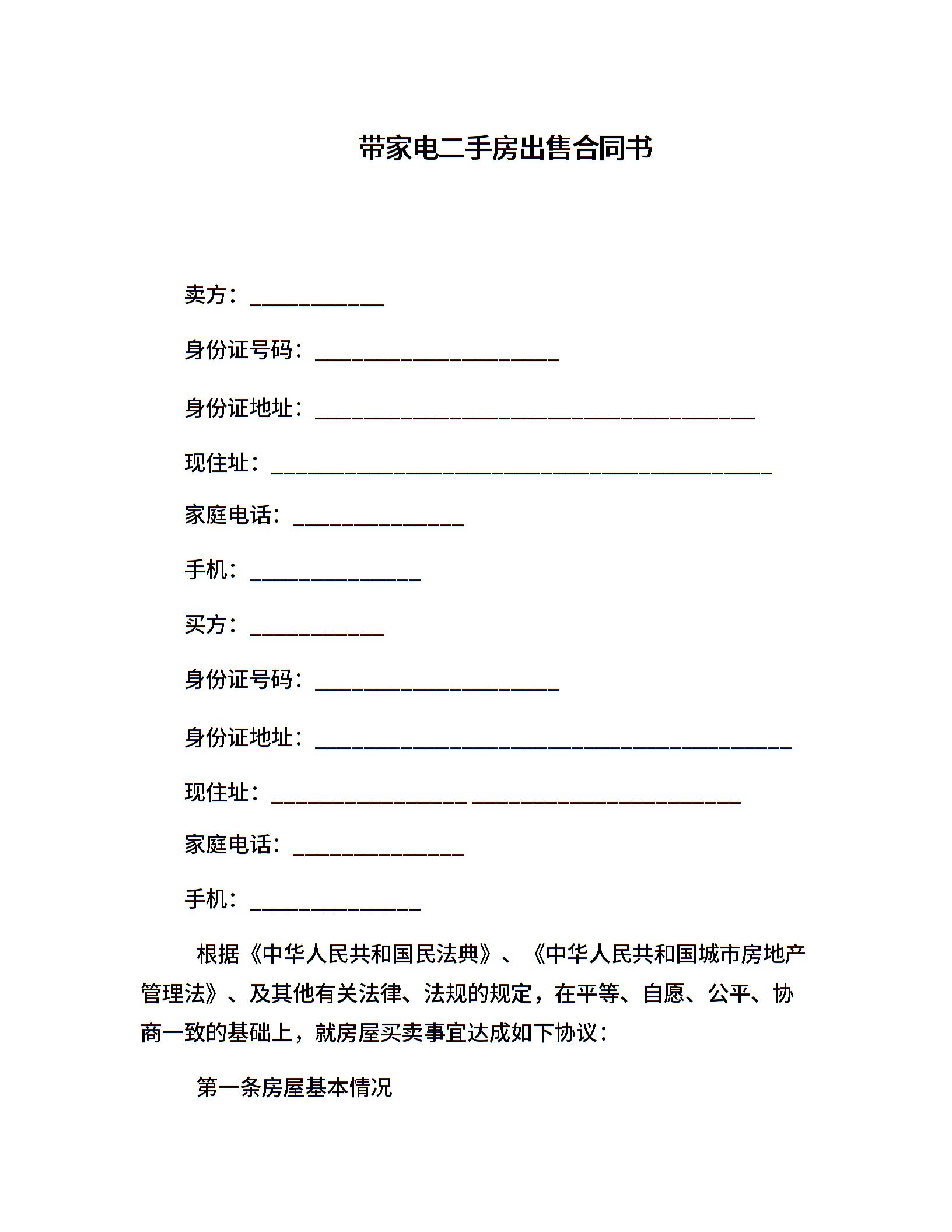 带家电二手房出售合同书