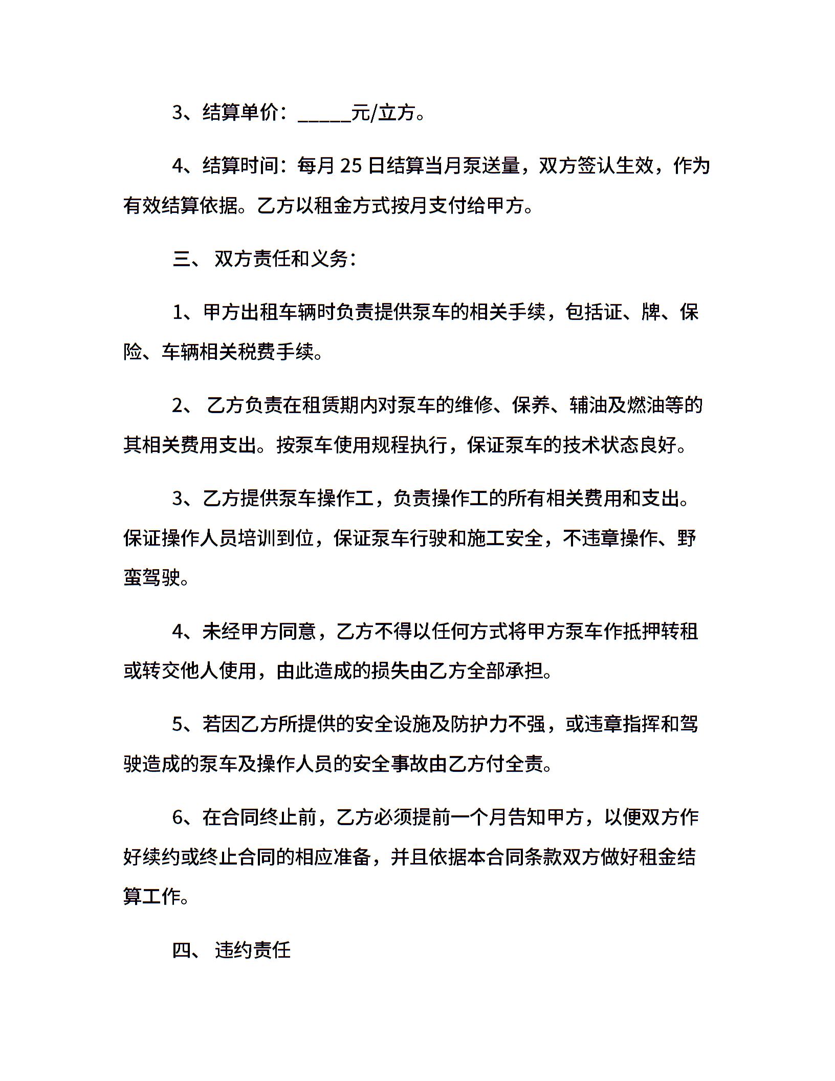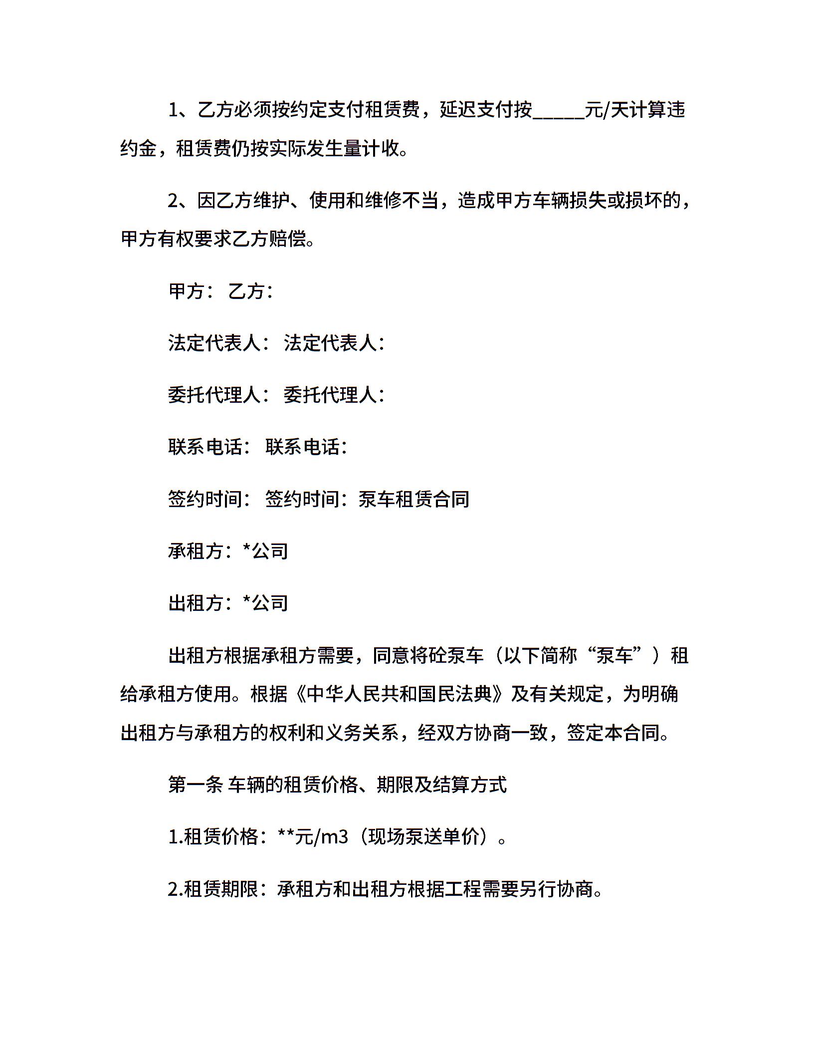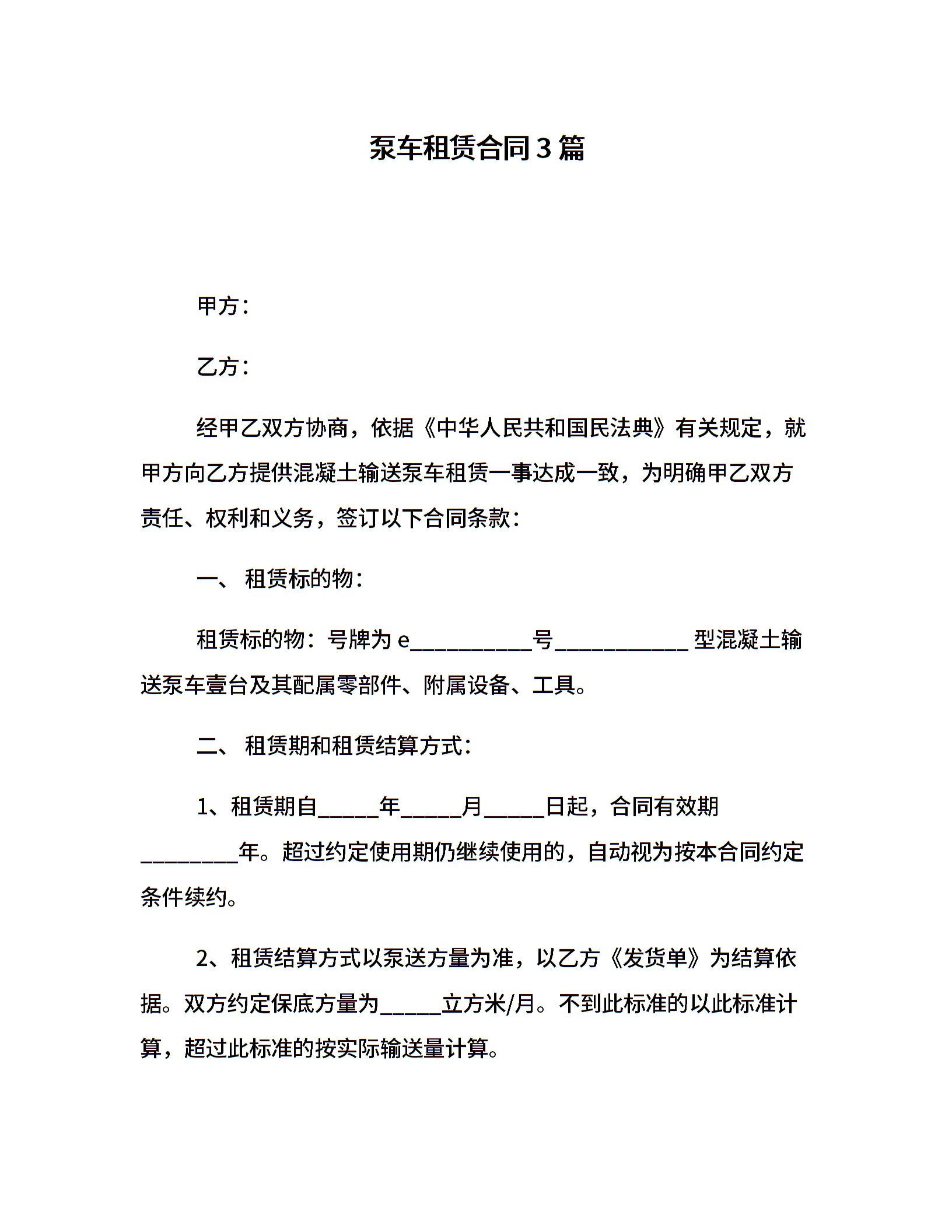 泵车租赁合同3篇