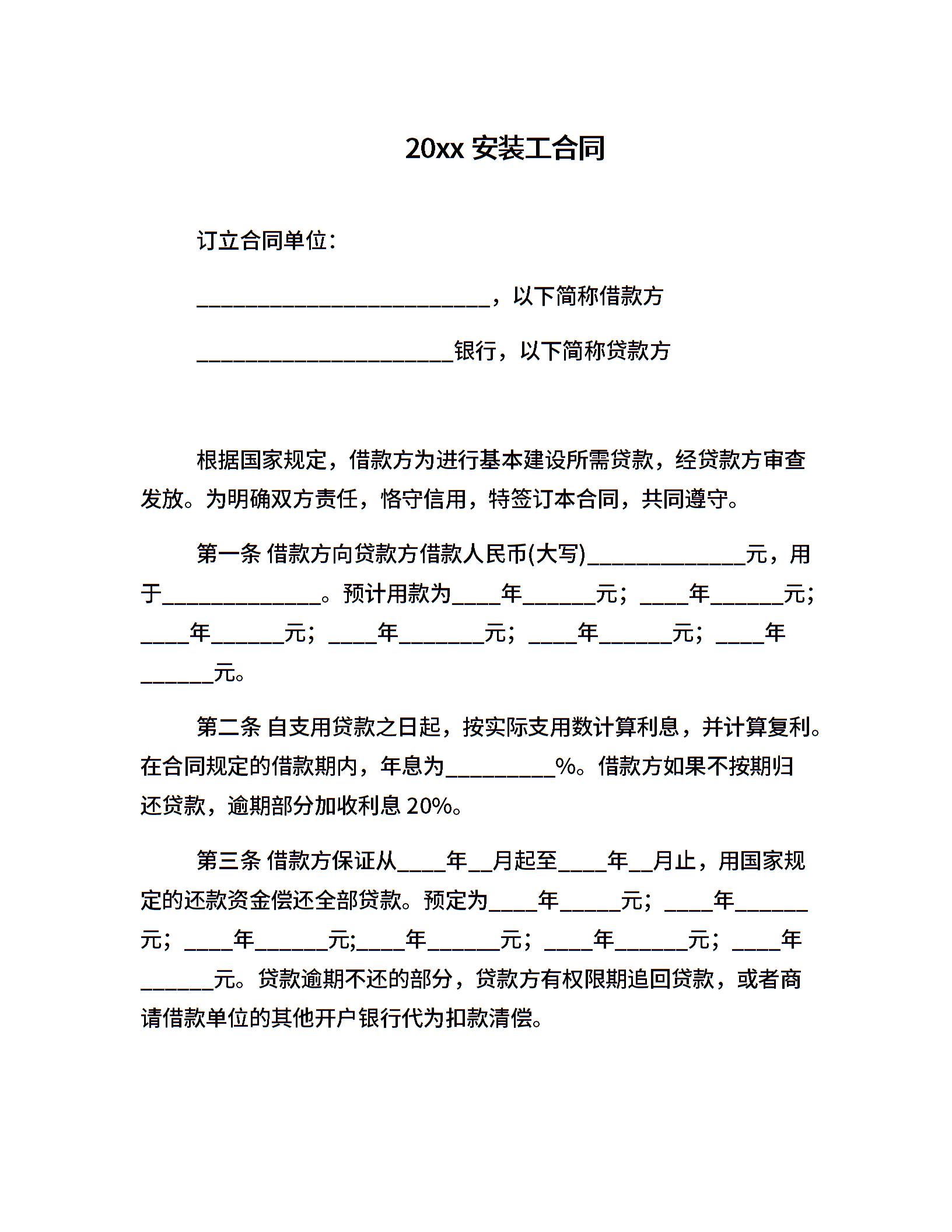 20xx安装工合同