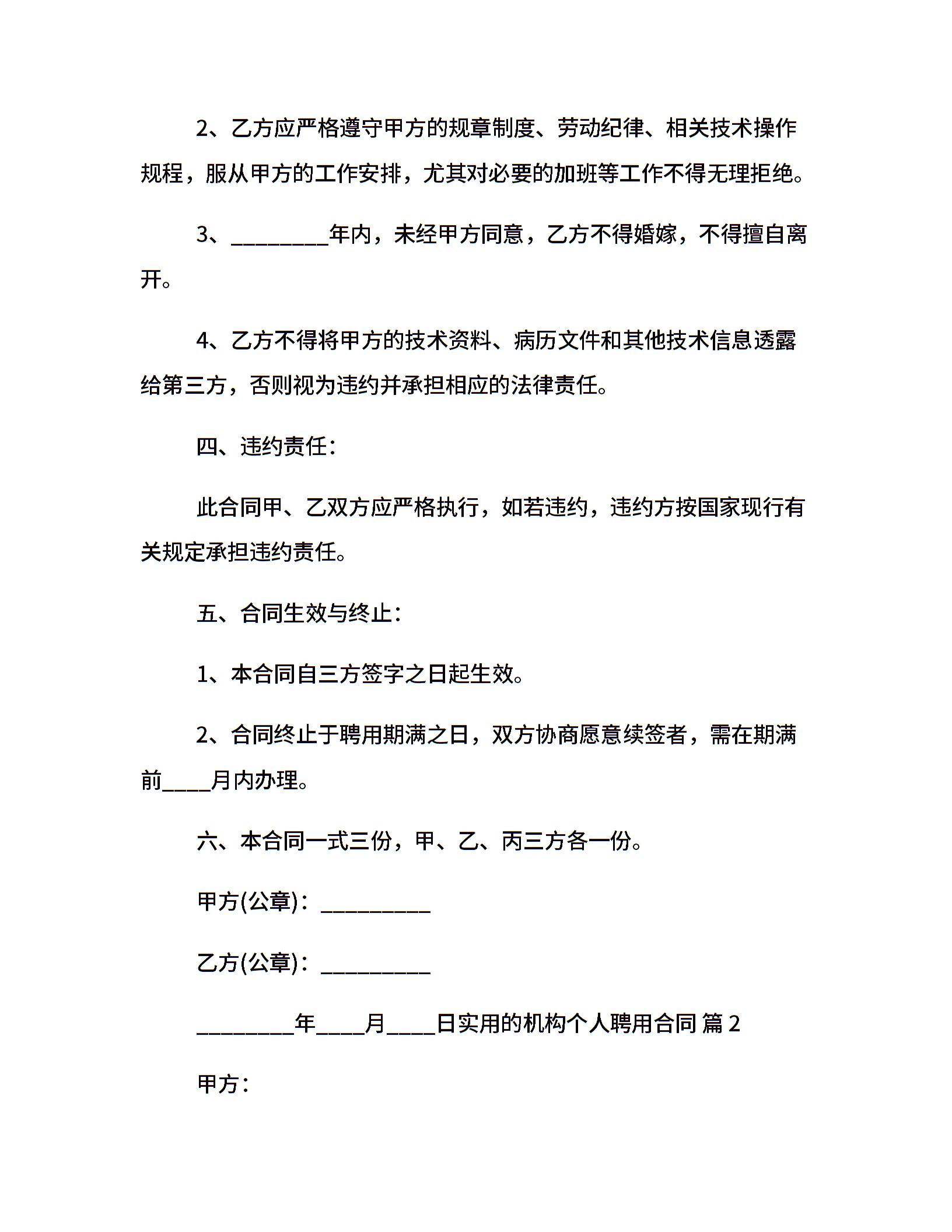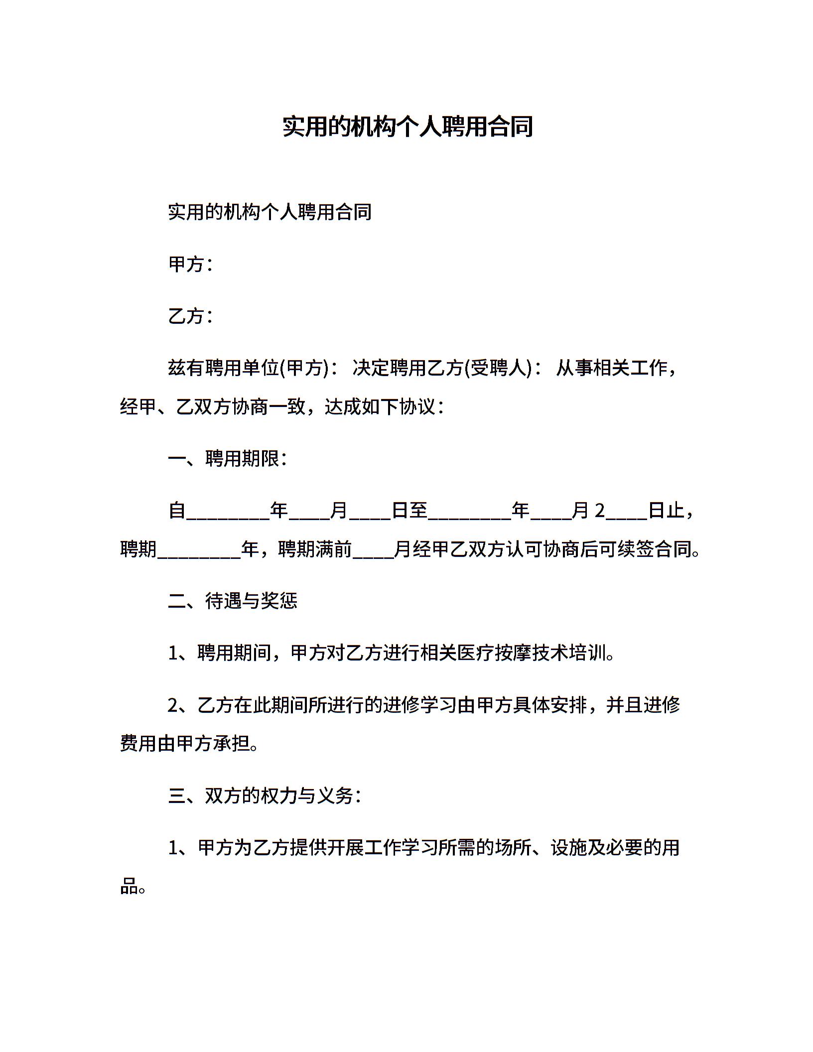 实用的机构个人聘用合同