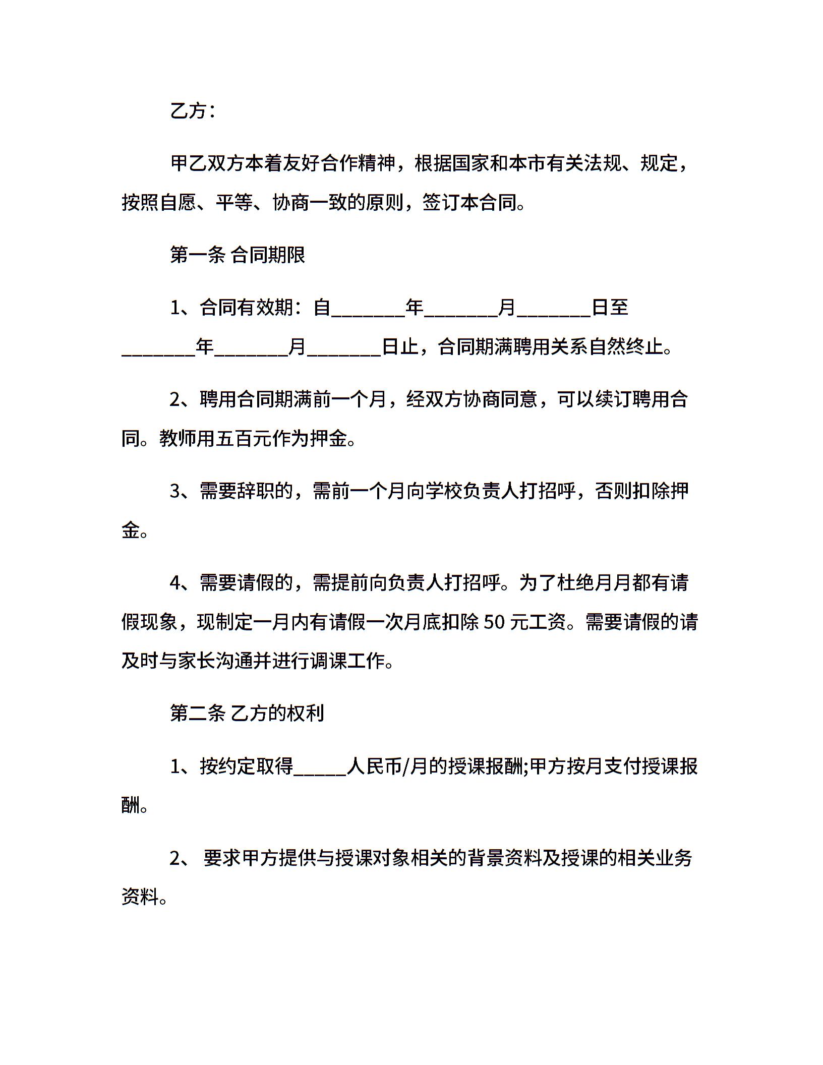 当前位置:量子办公 > 合同模板 > 聘用合同 >