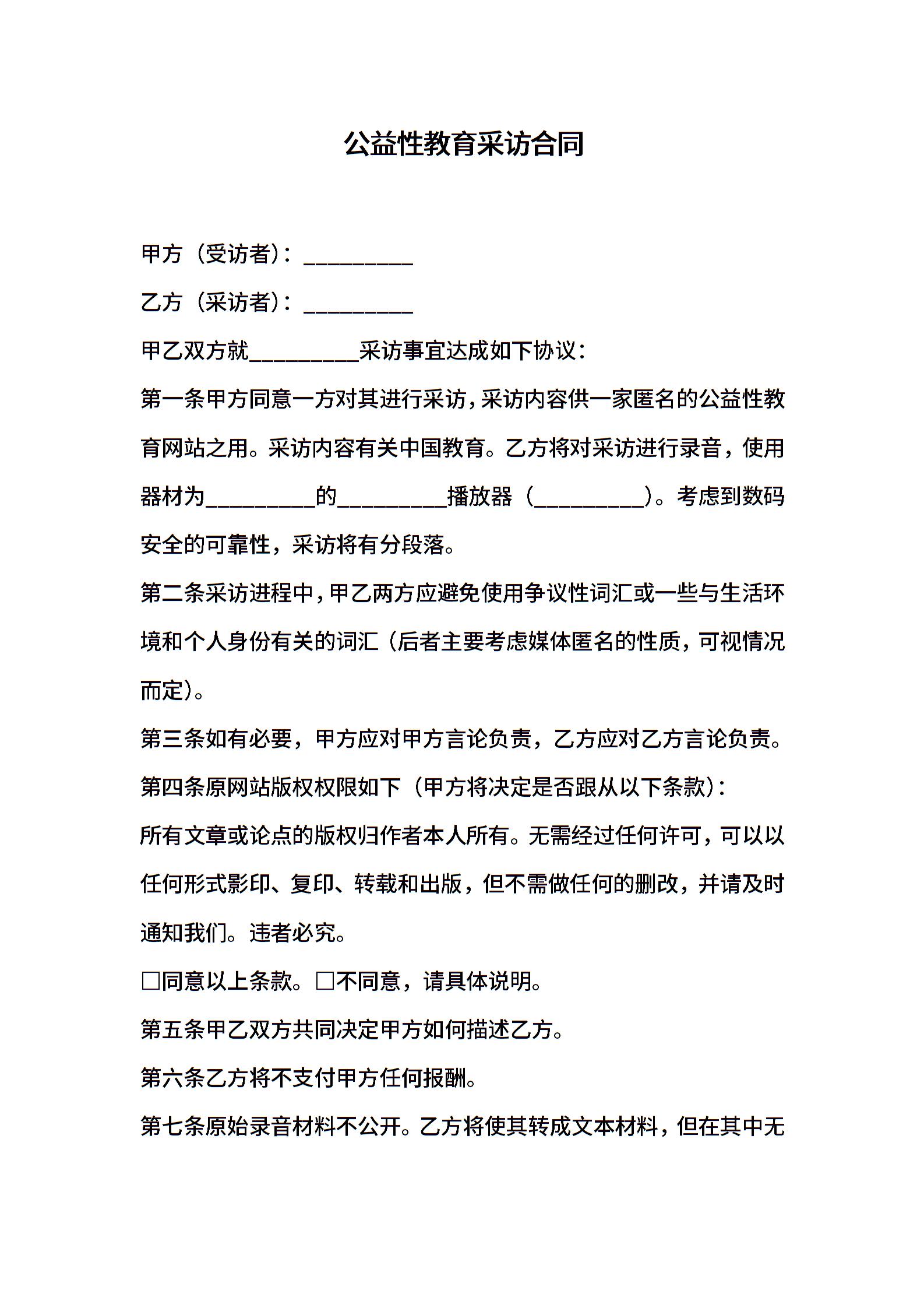 公益性教育采访合同
