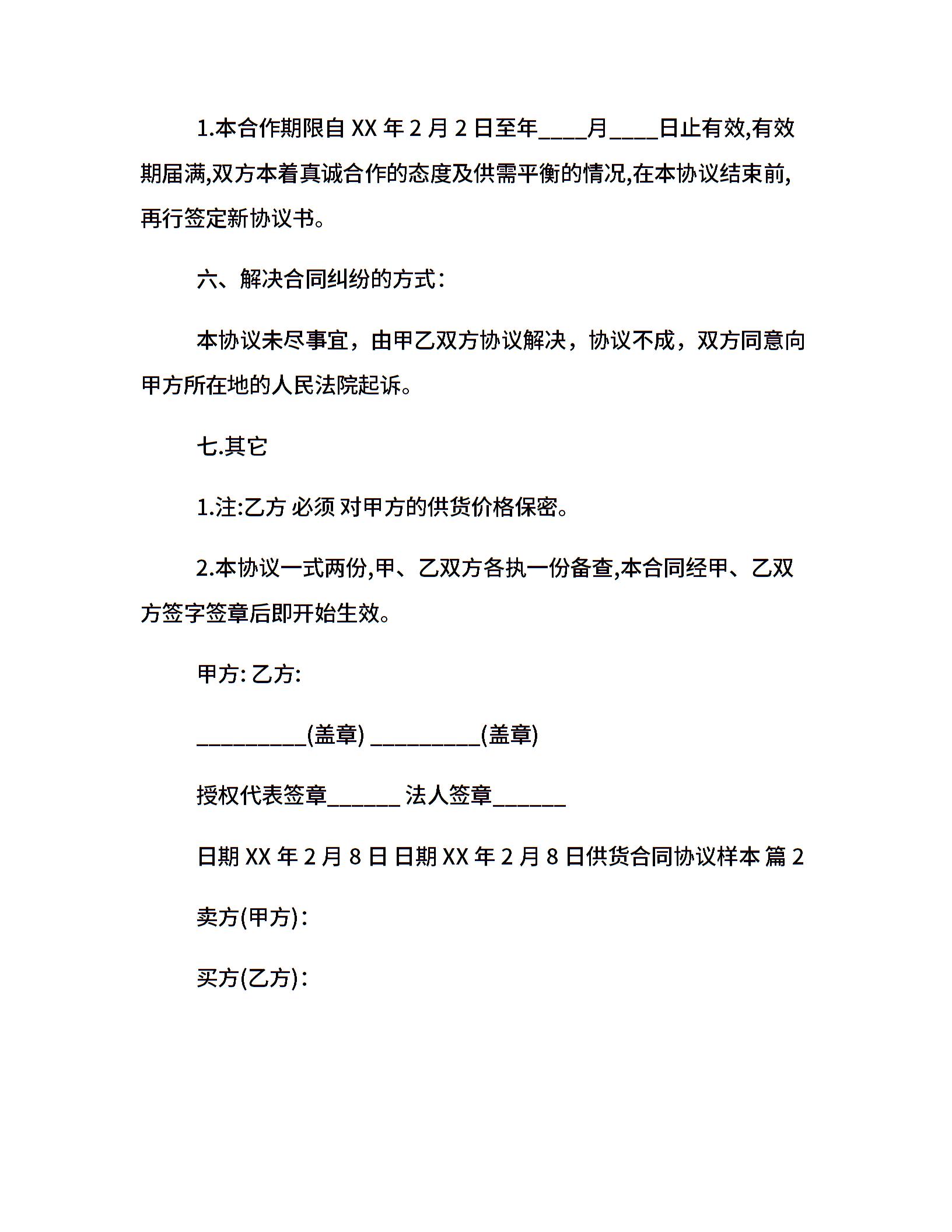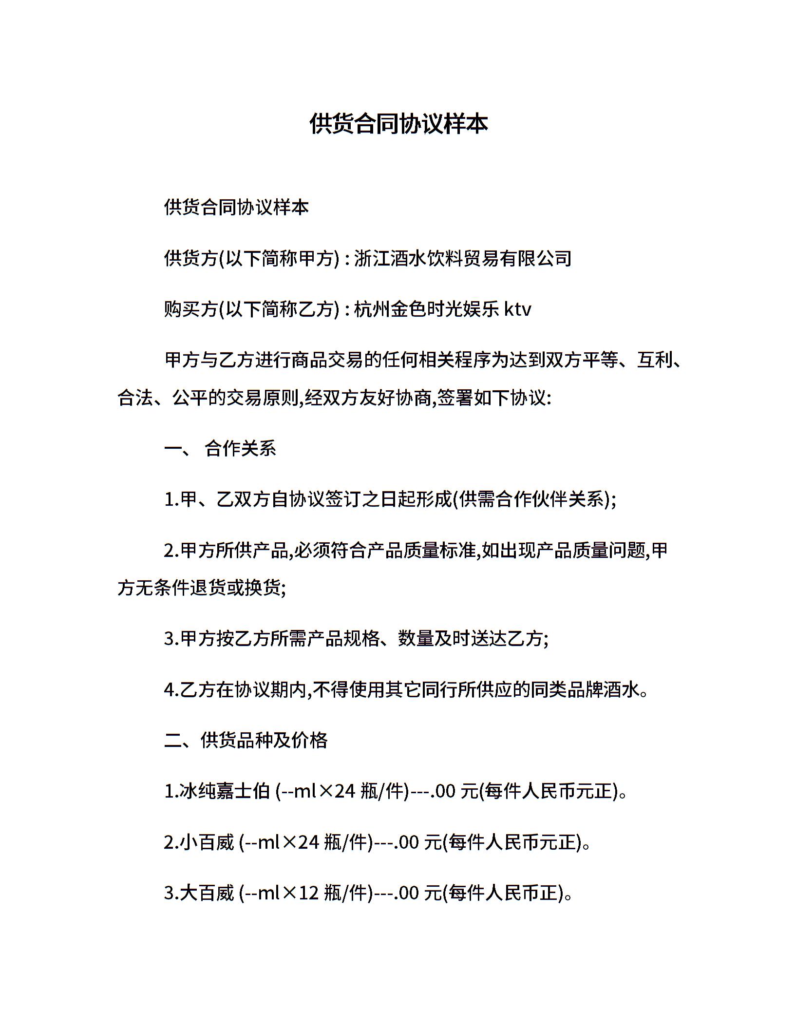 供货合同协议样本