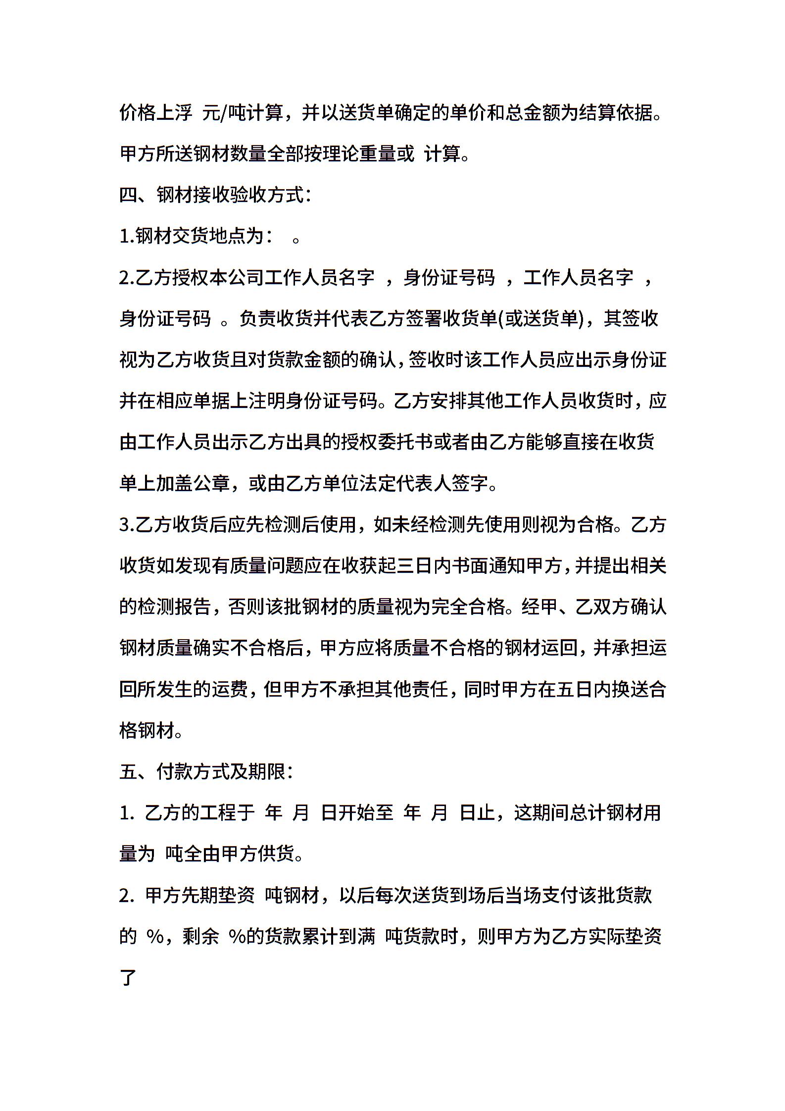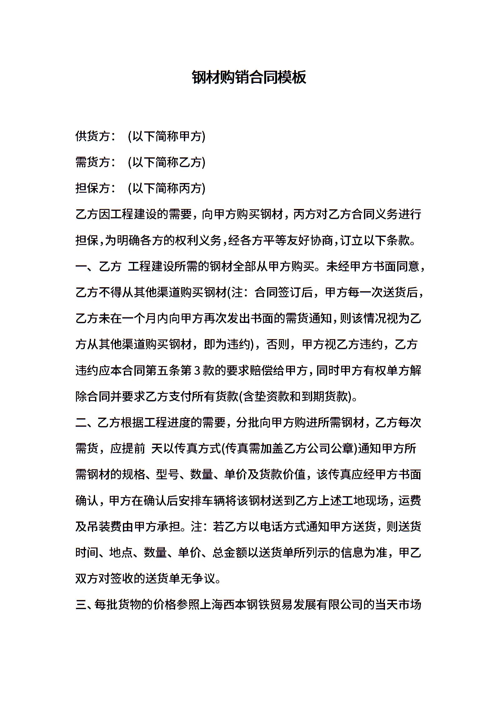 钢材购销合同模板