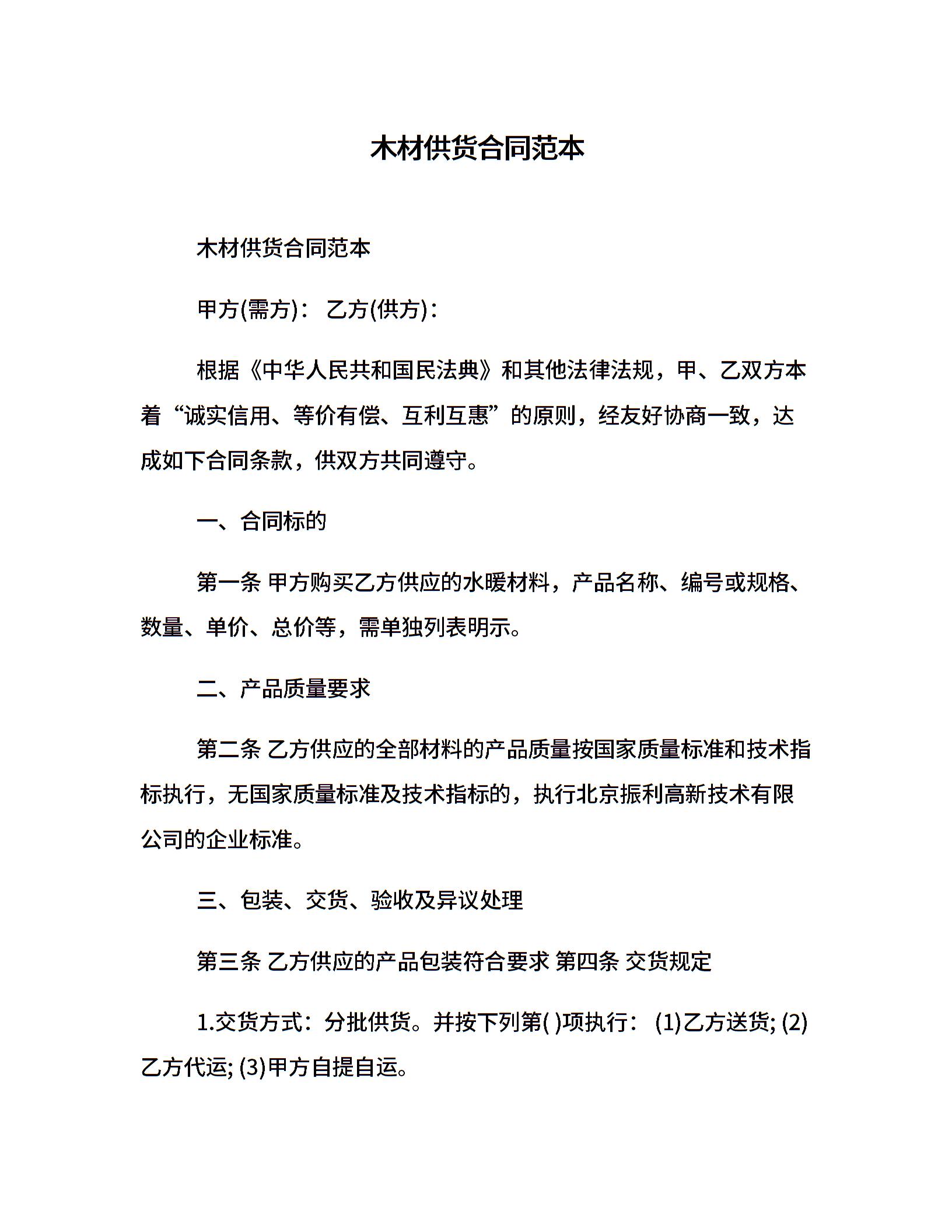 木材供货合同范本