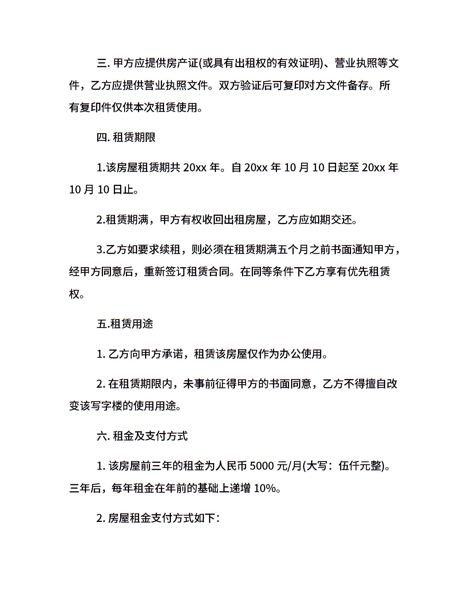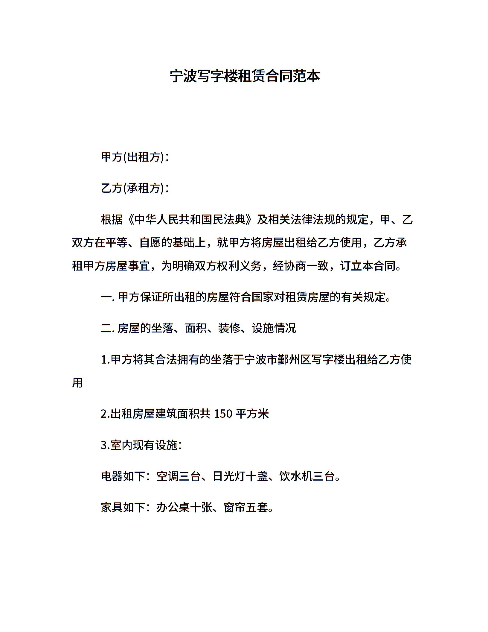 宁波写字楼租赁合同范本