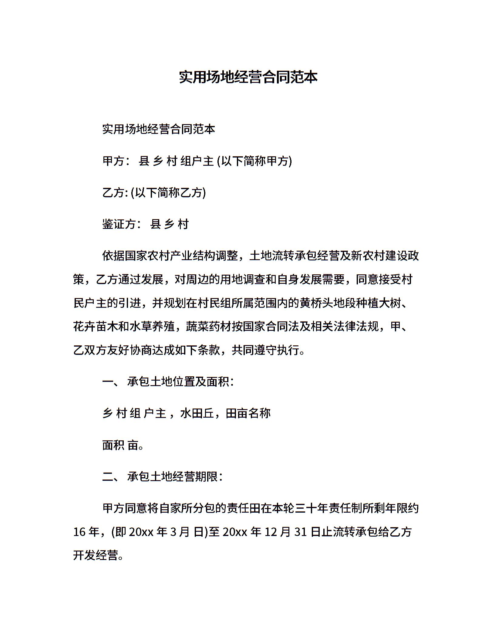 实用场地经营合同范本