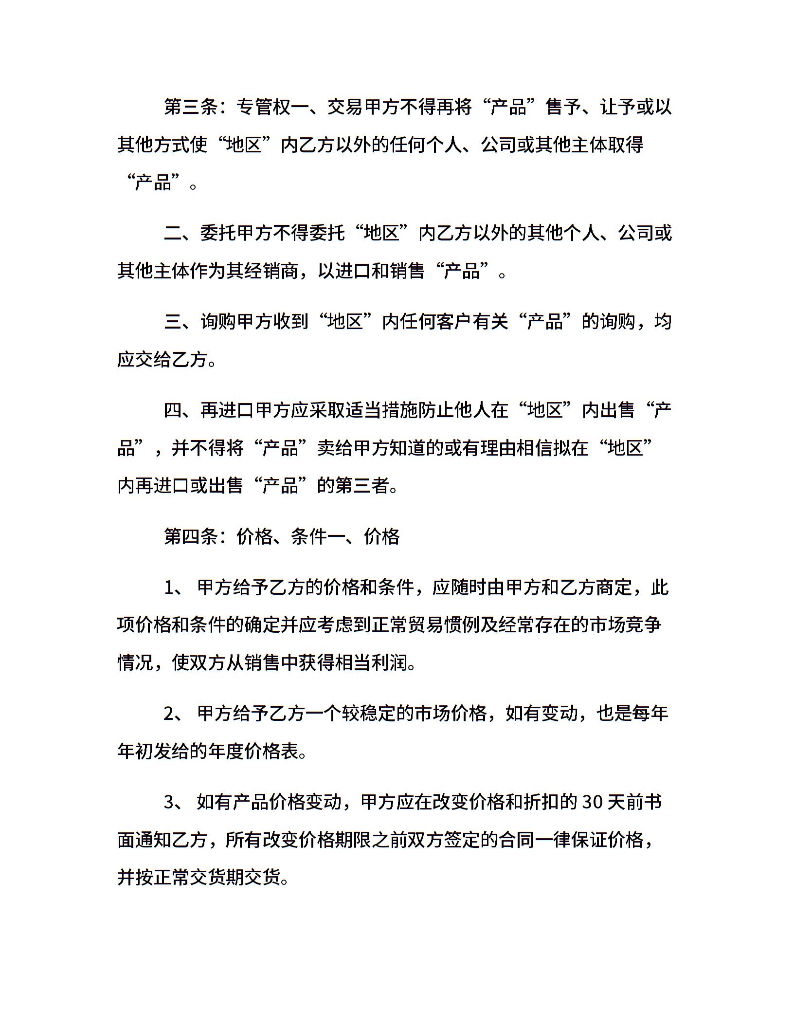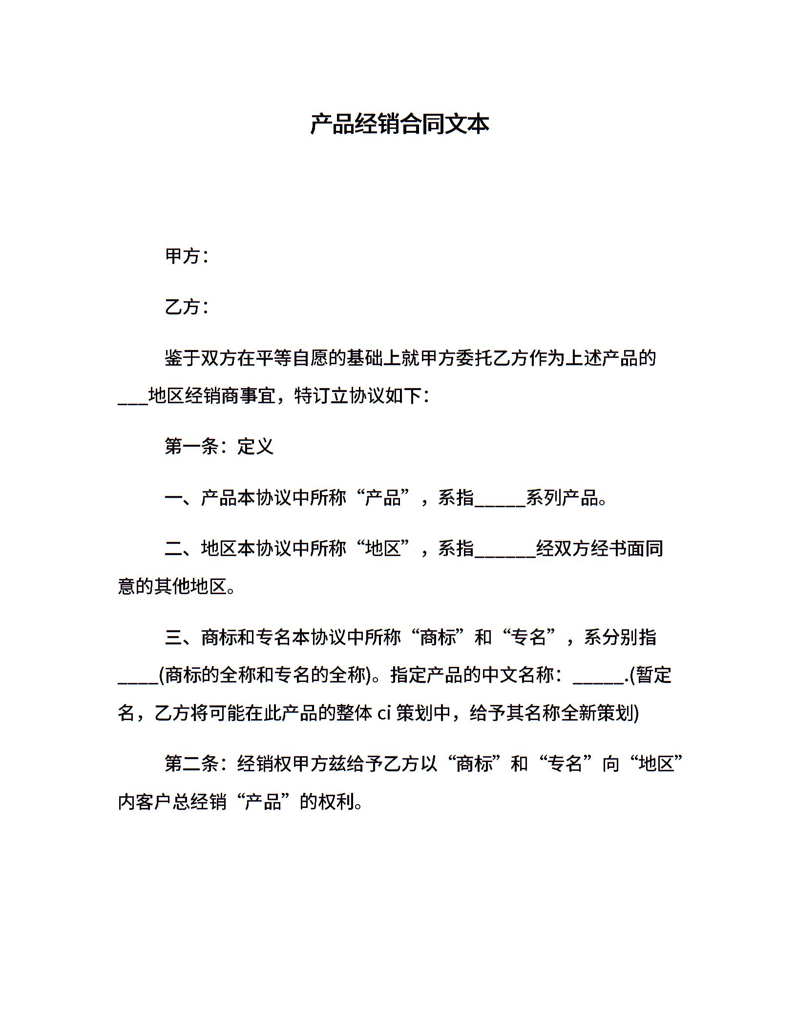 产品经销合同文本
