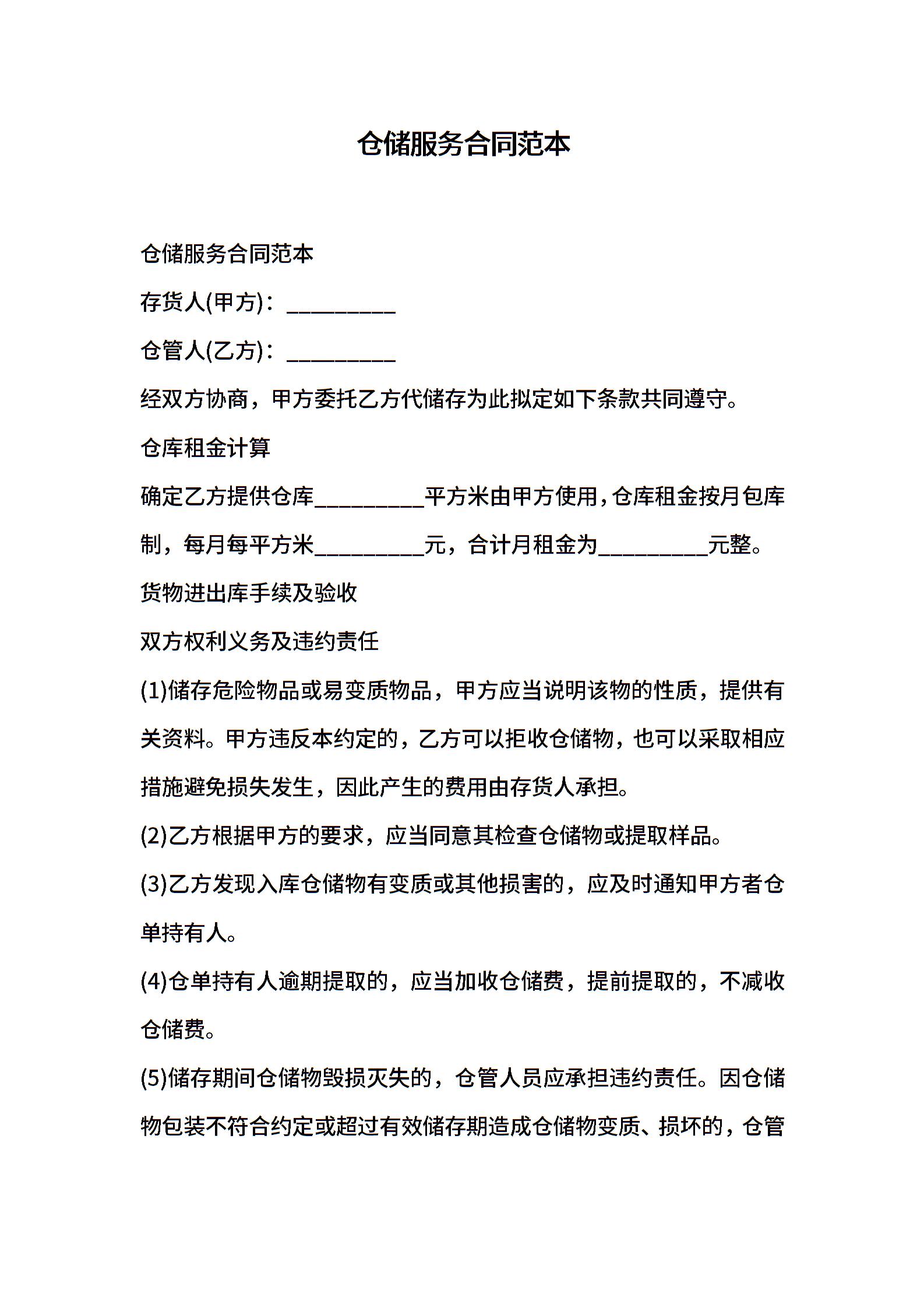 仓储服务合同范本