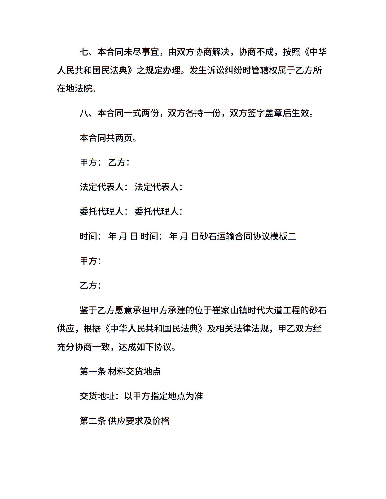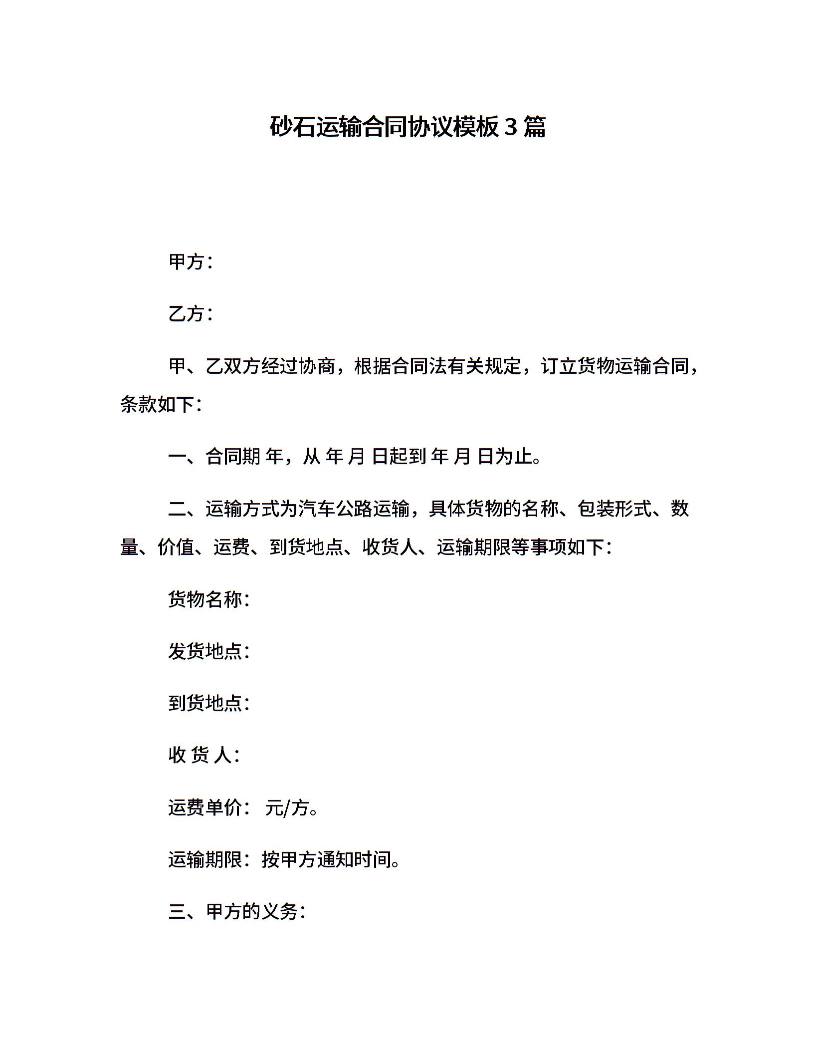 砂石运输合同协议模板3篇
