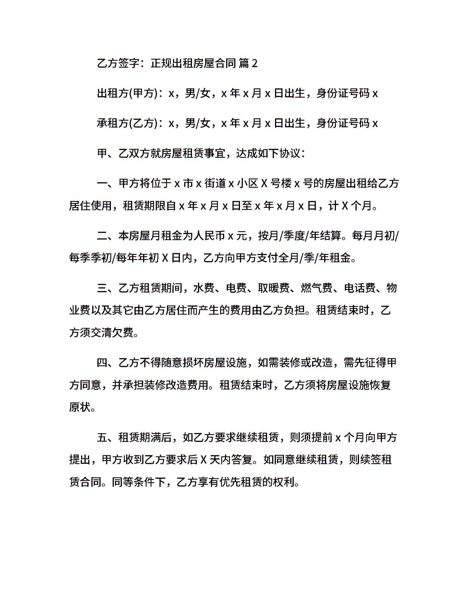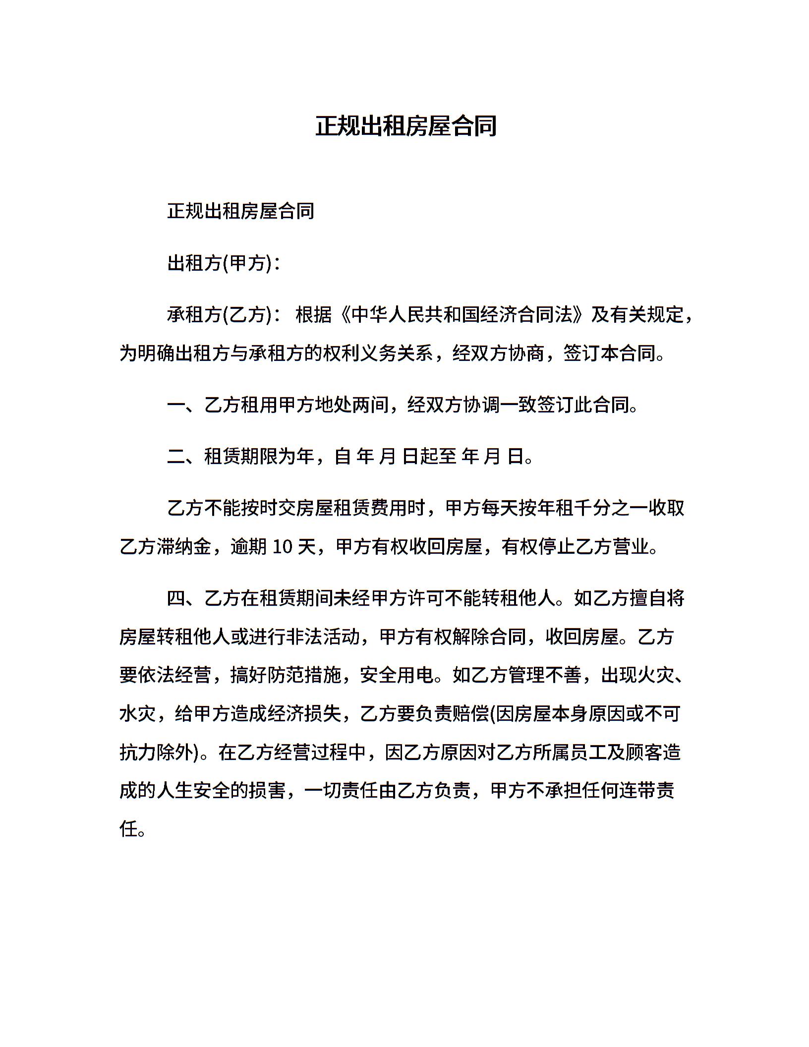 正规出租房屋合同