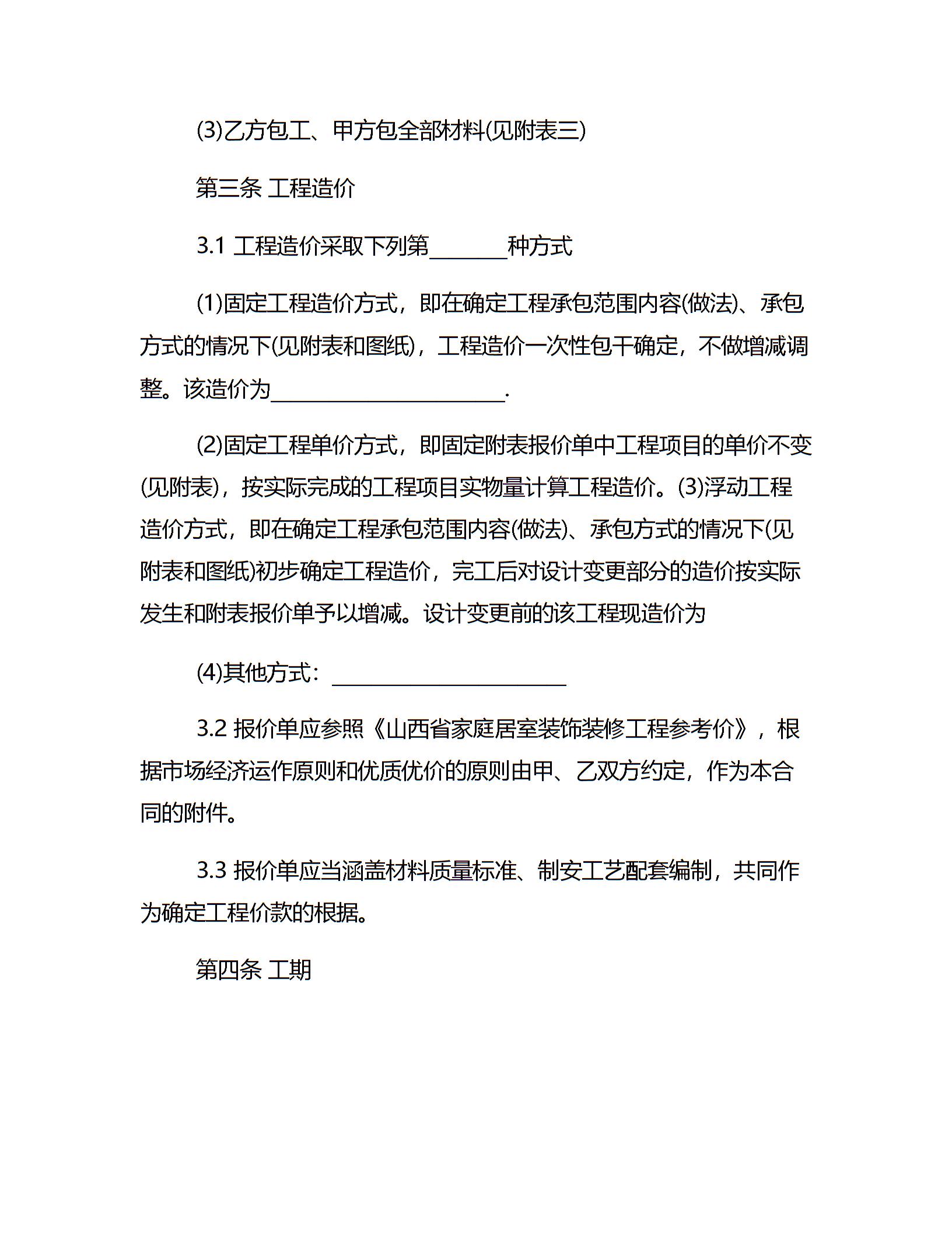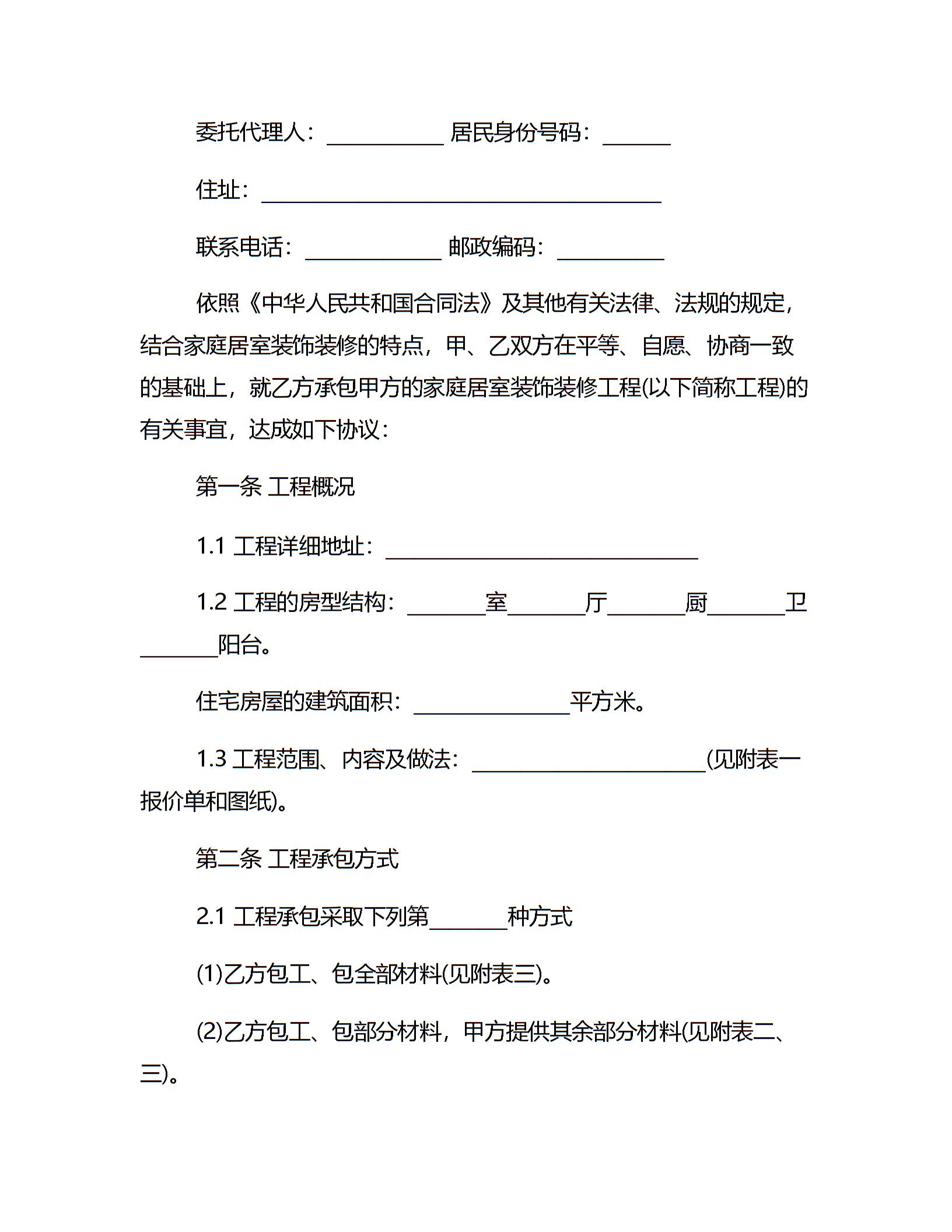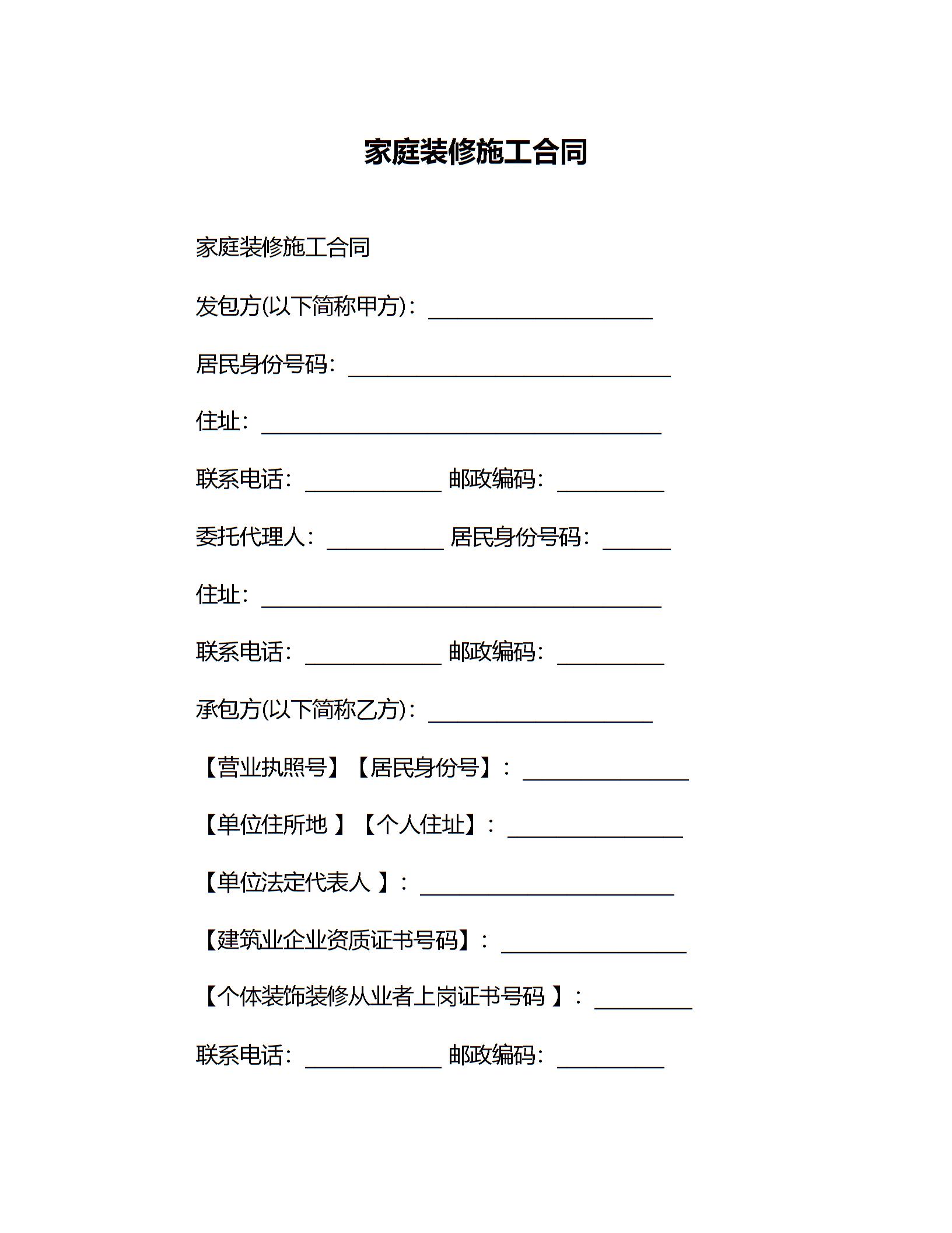 家庭装修施工合同