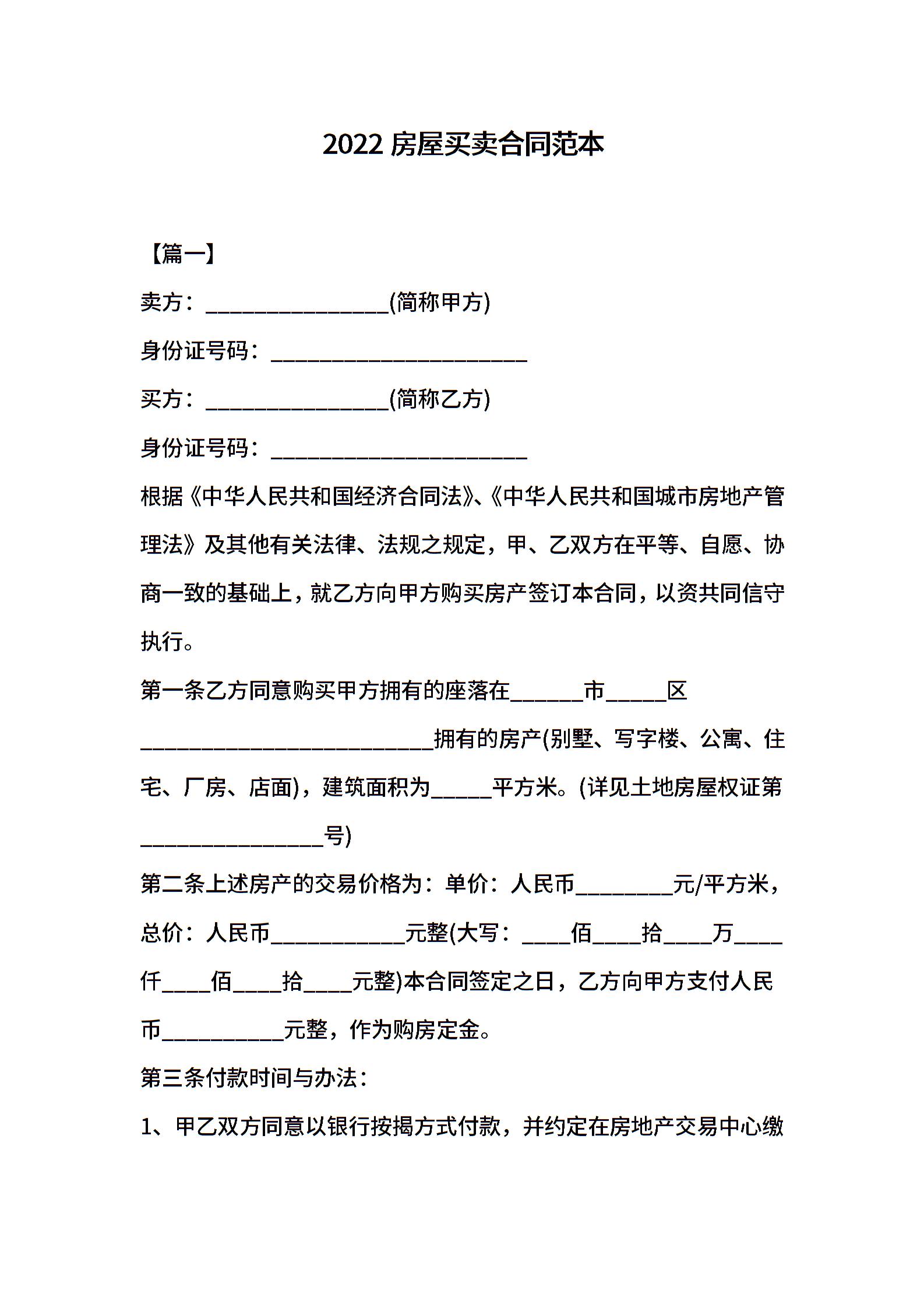 2022房屋买卖合同范本