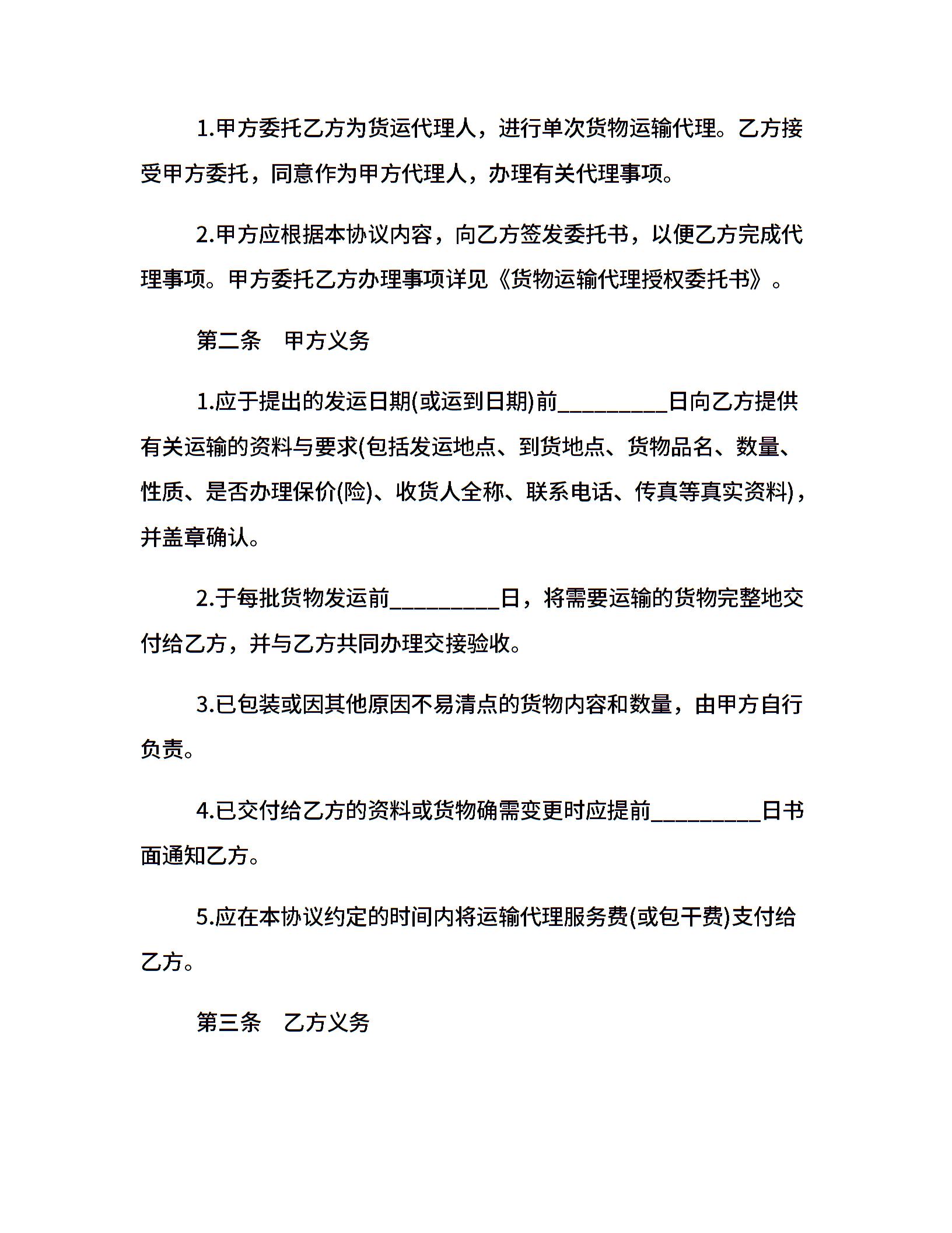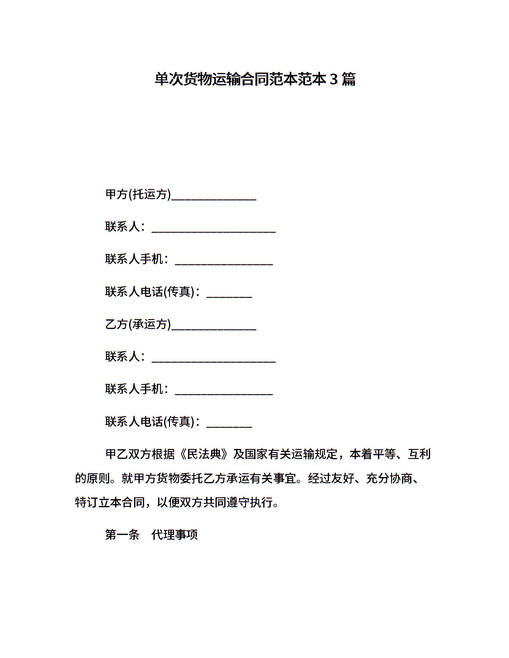单次货物运输合同范本范本3篇
