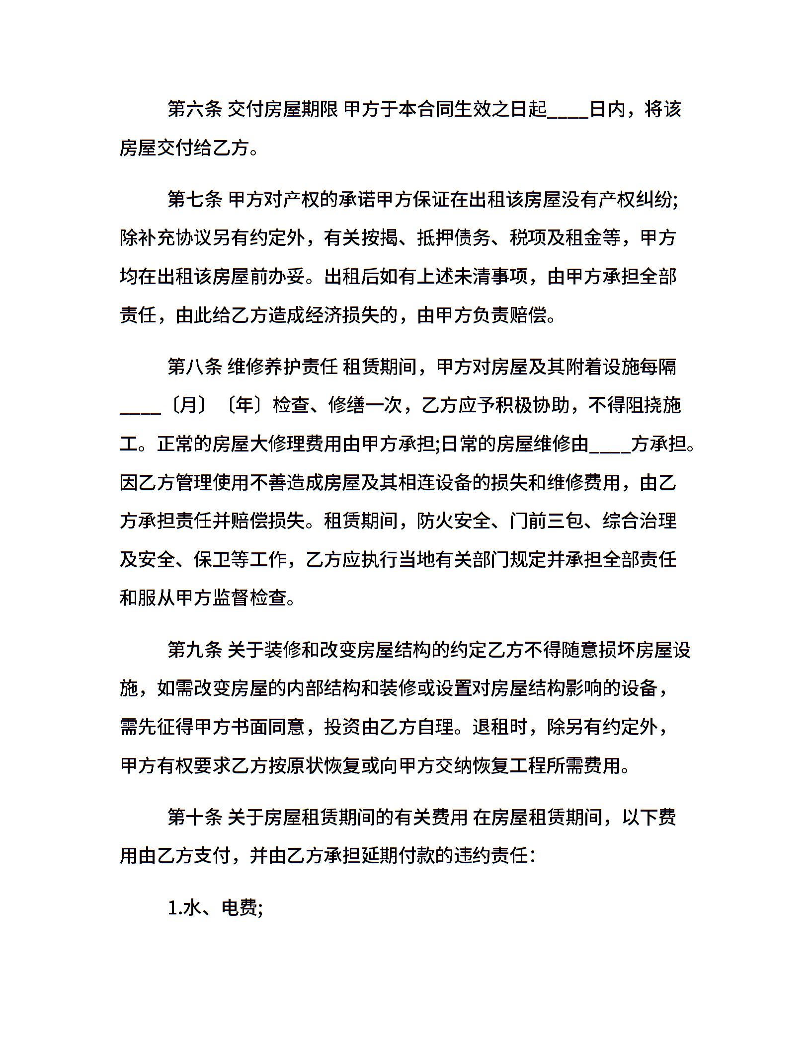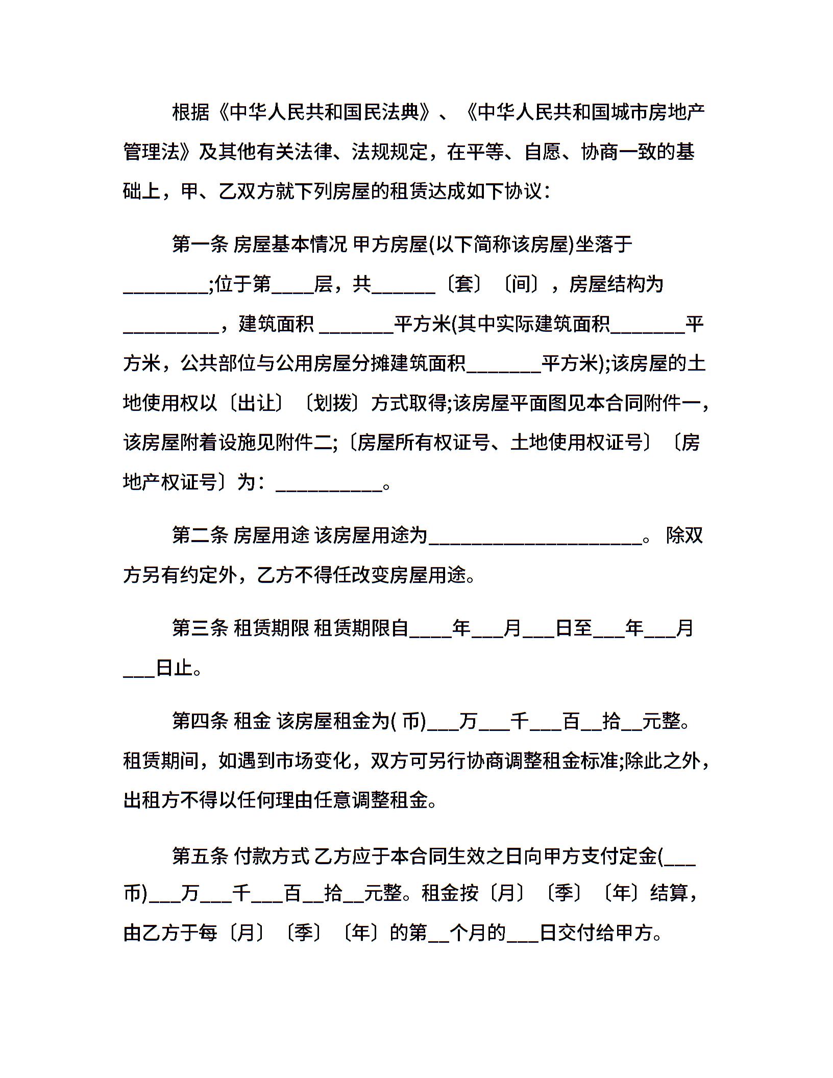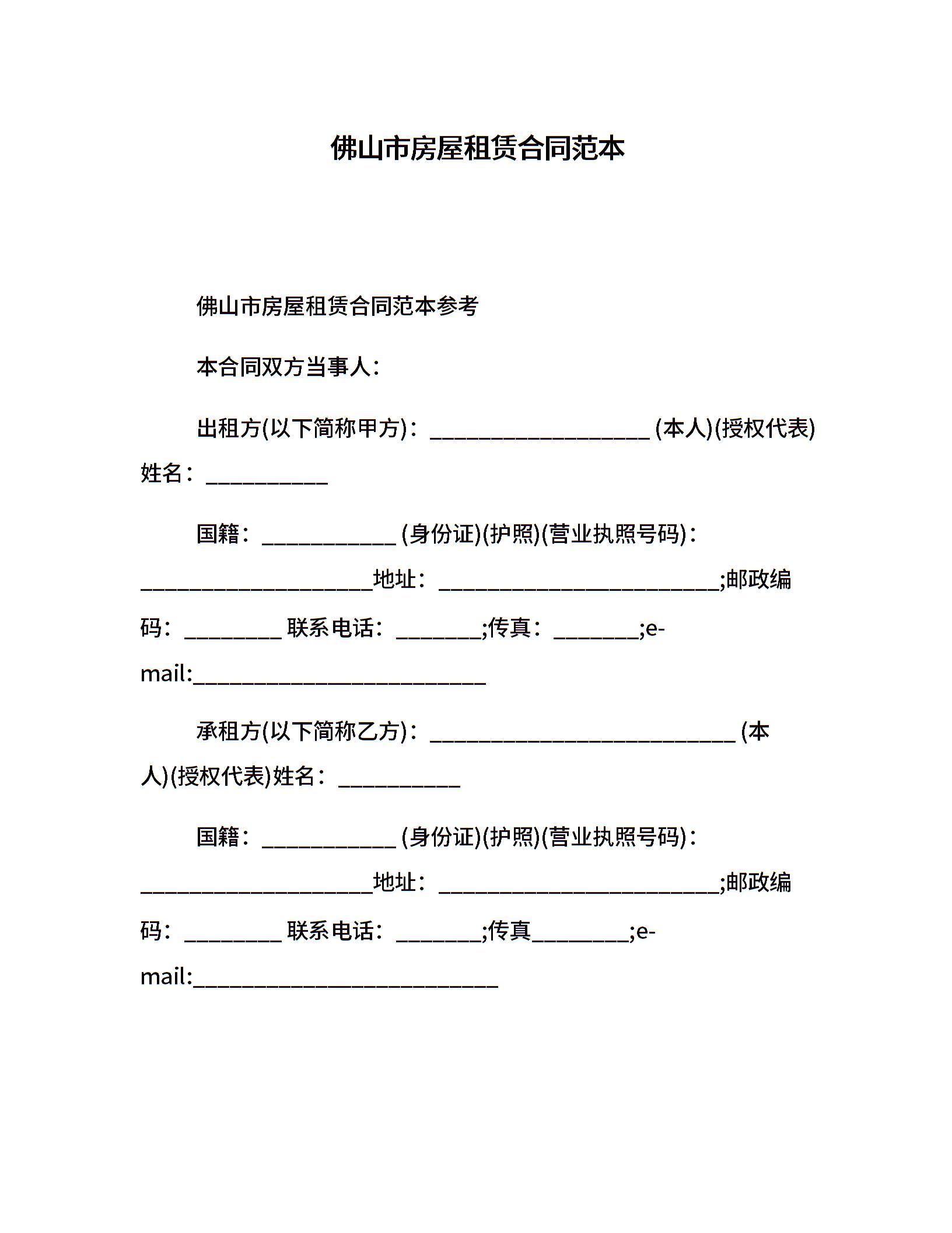 佛山市房屋租赁合同范本