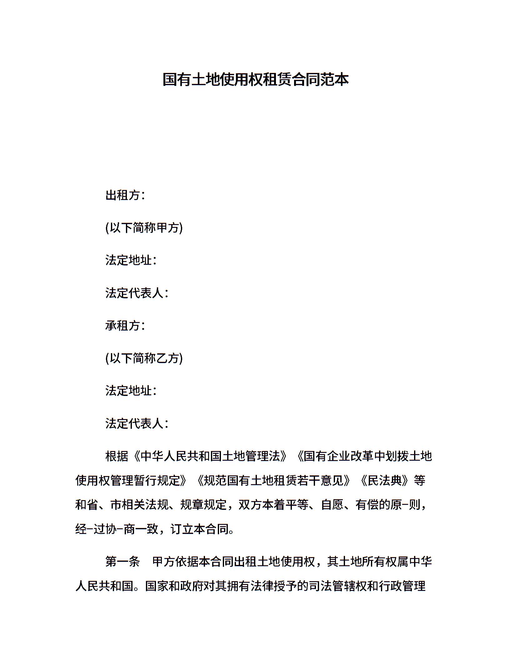 国有土地使用权租赁合同范本