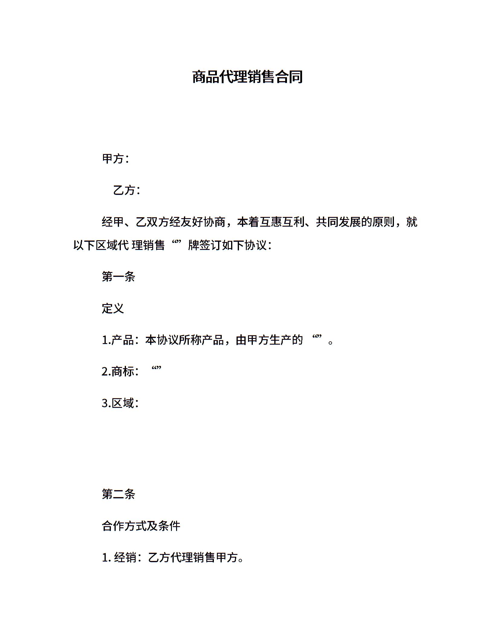 商品代理销售合同