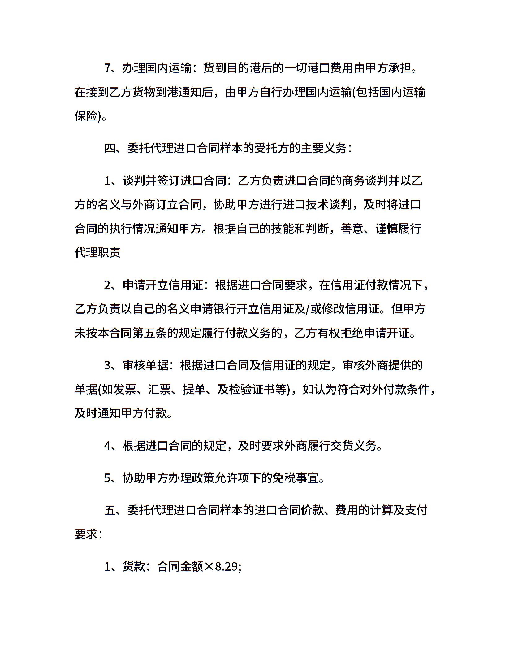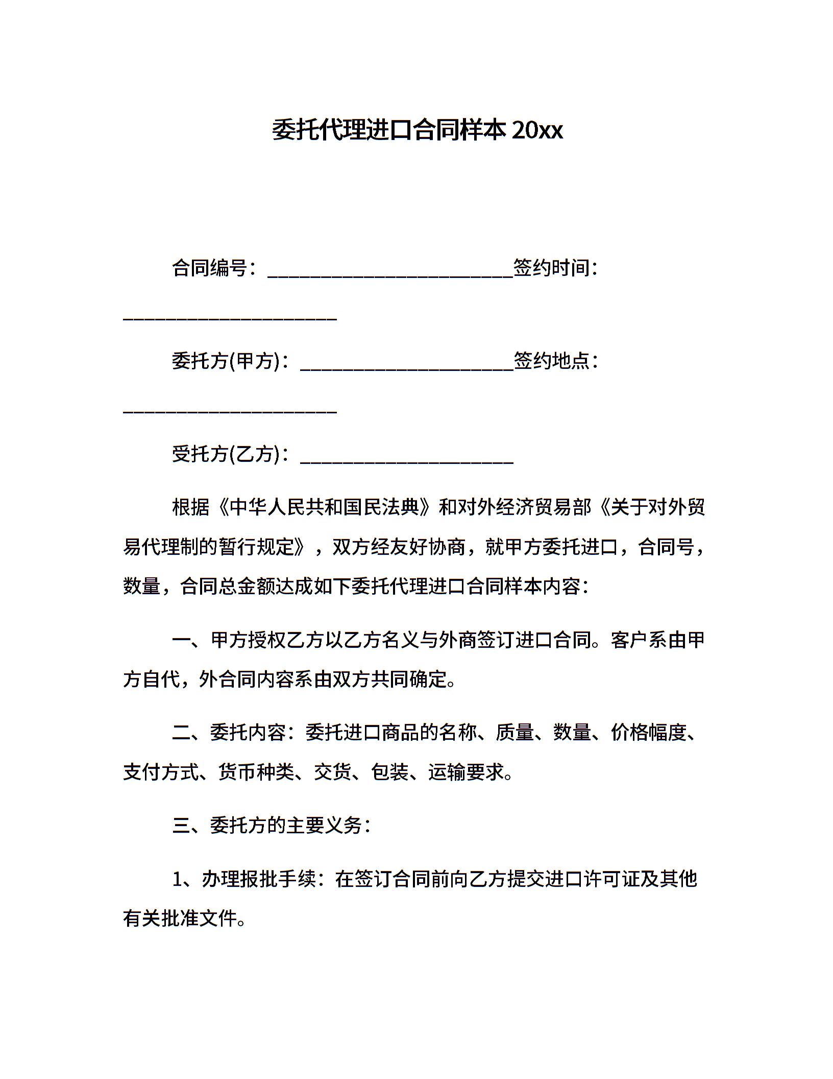 委托代理进口合同样本20xx