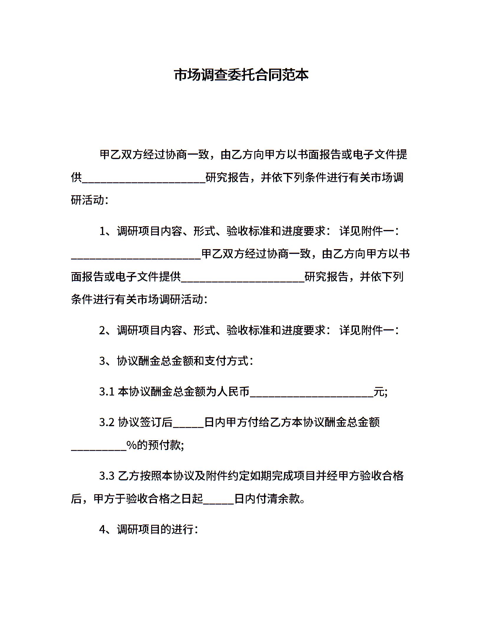 市场调查委托合同范本