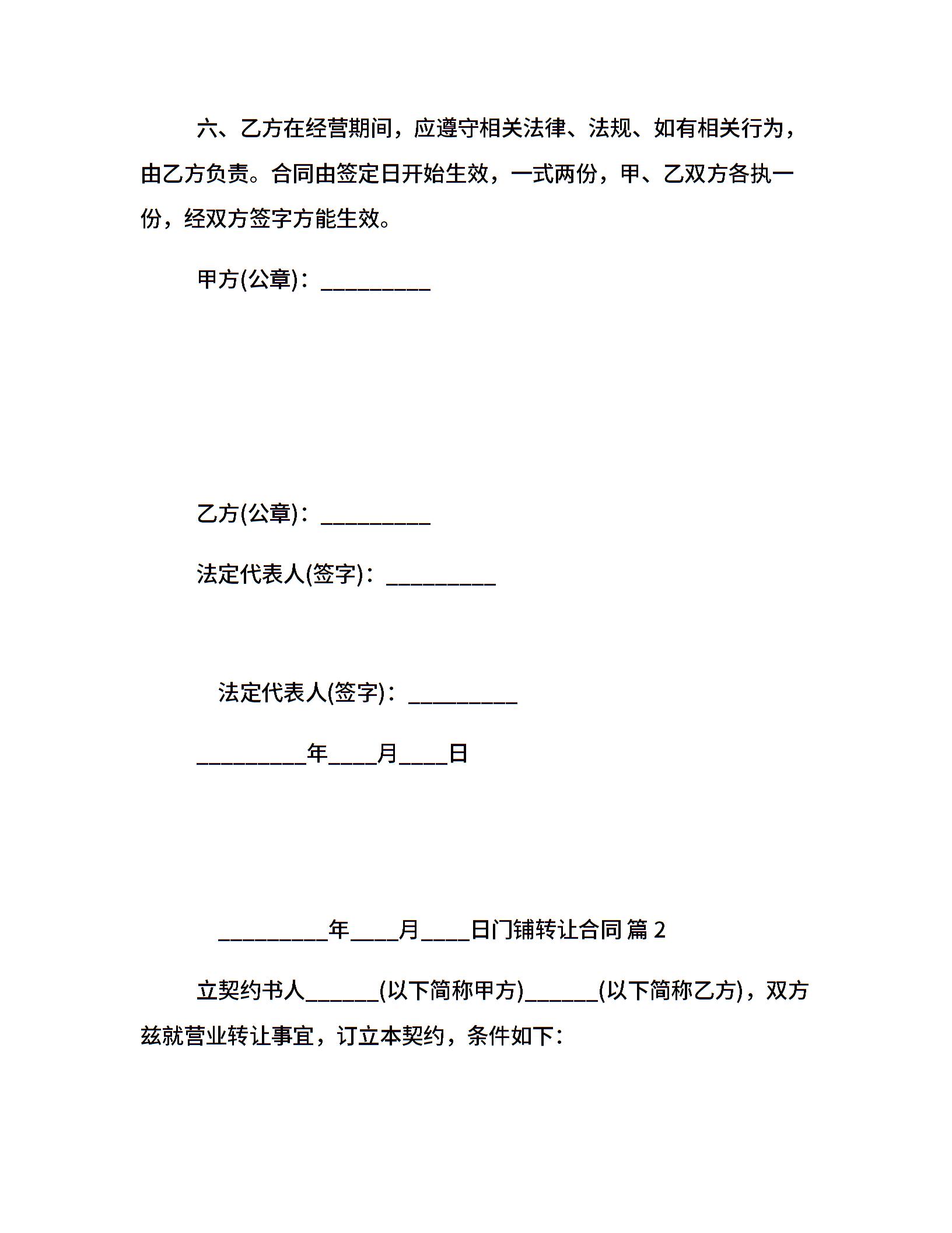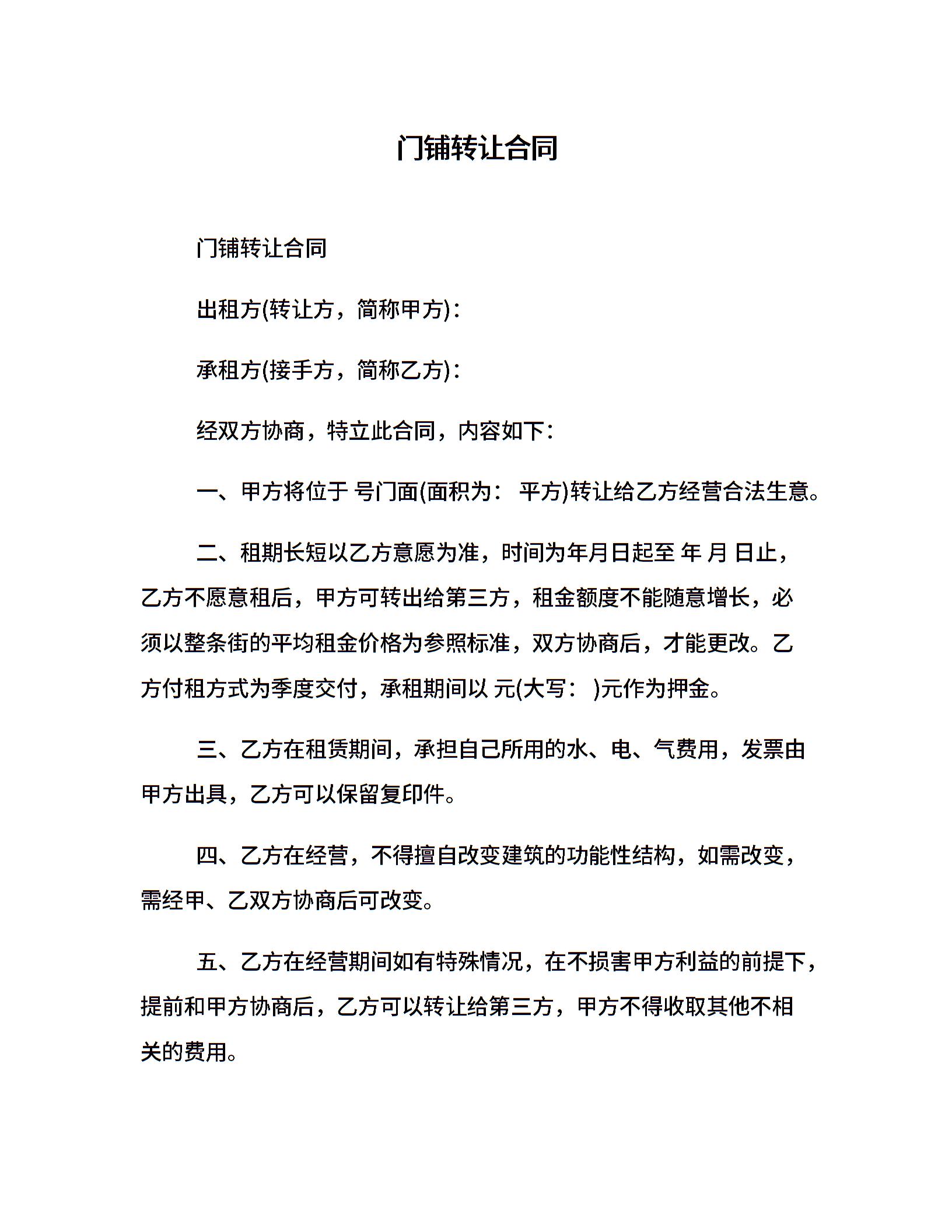 门铺转让合同
