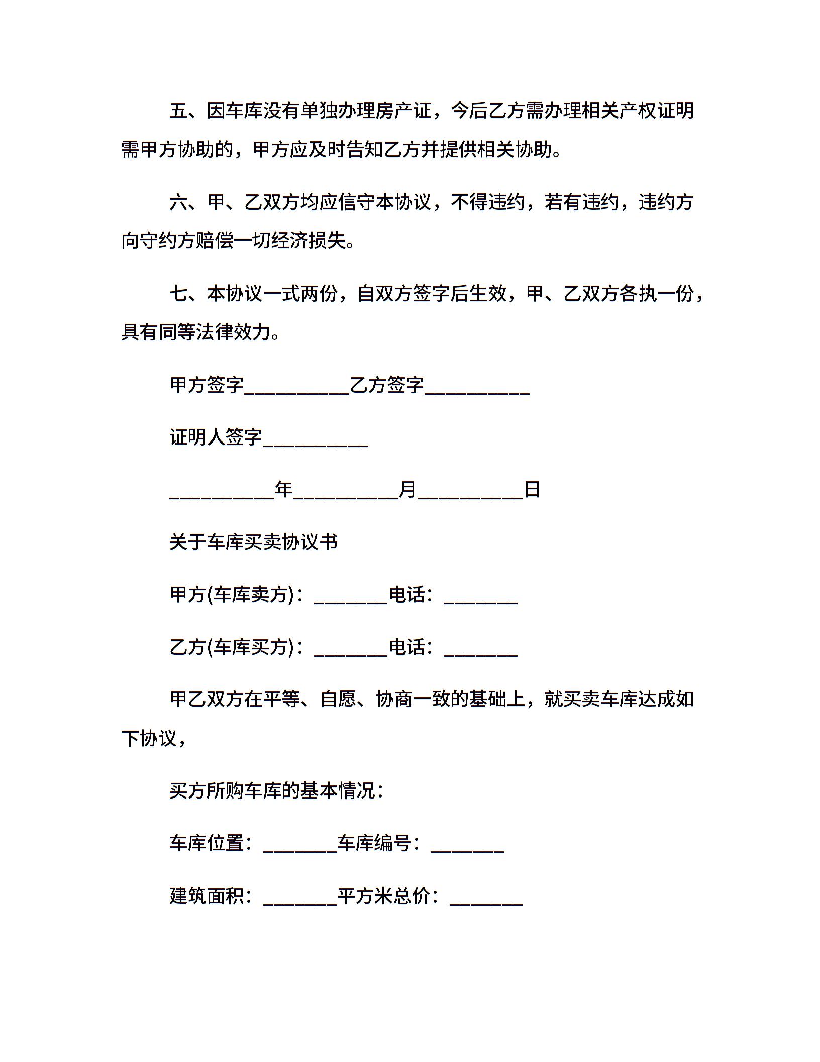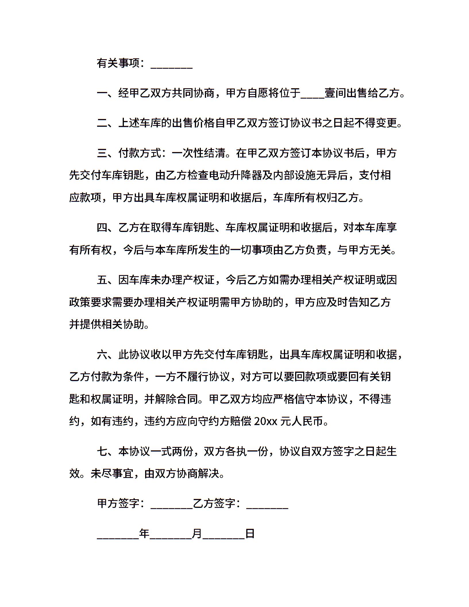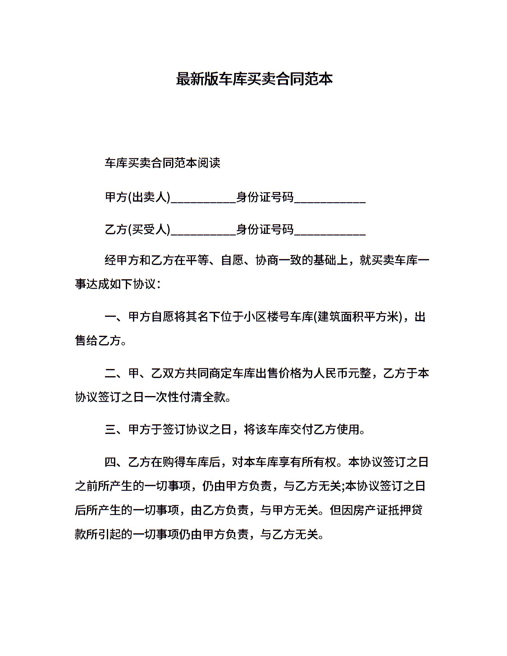 最新版车库买卖合同范本